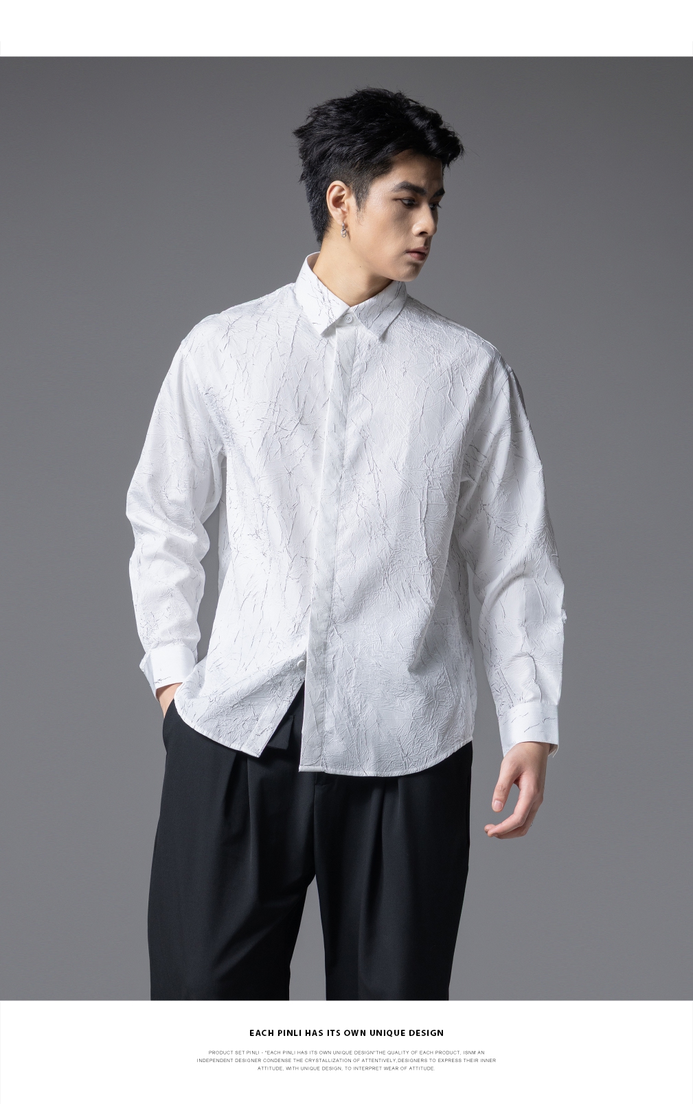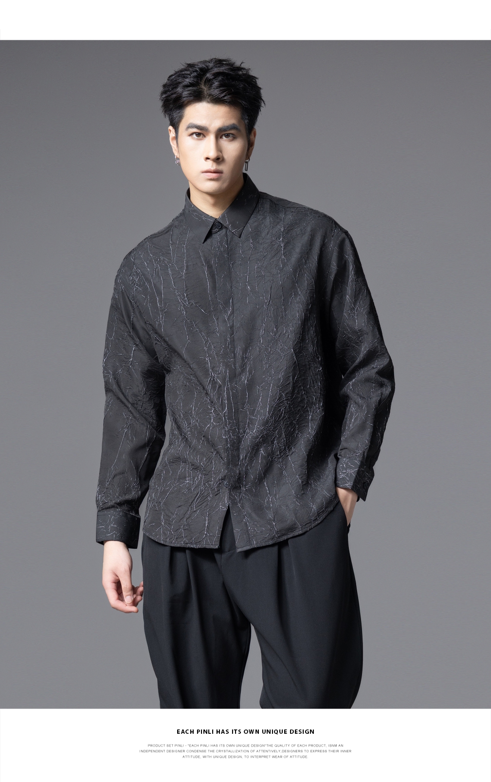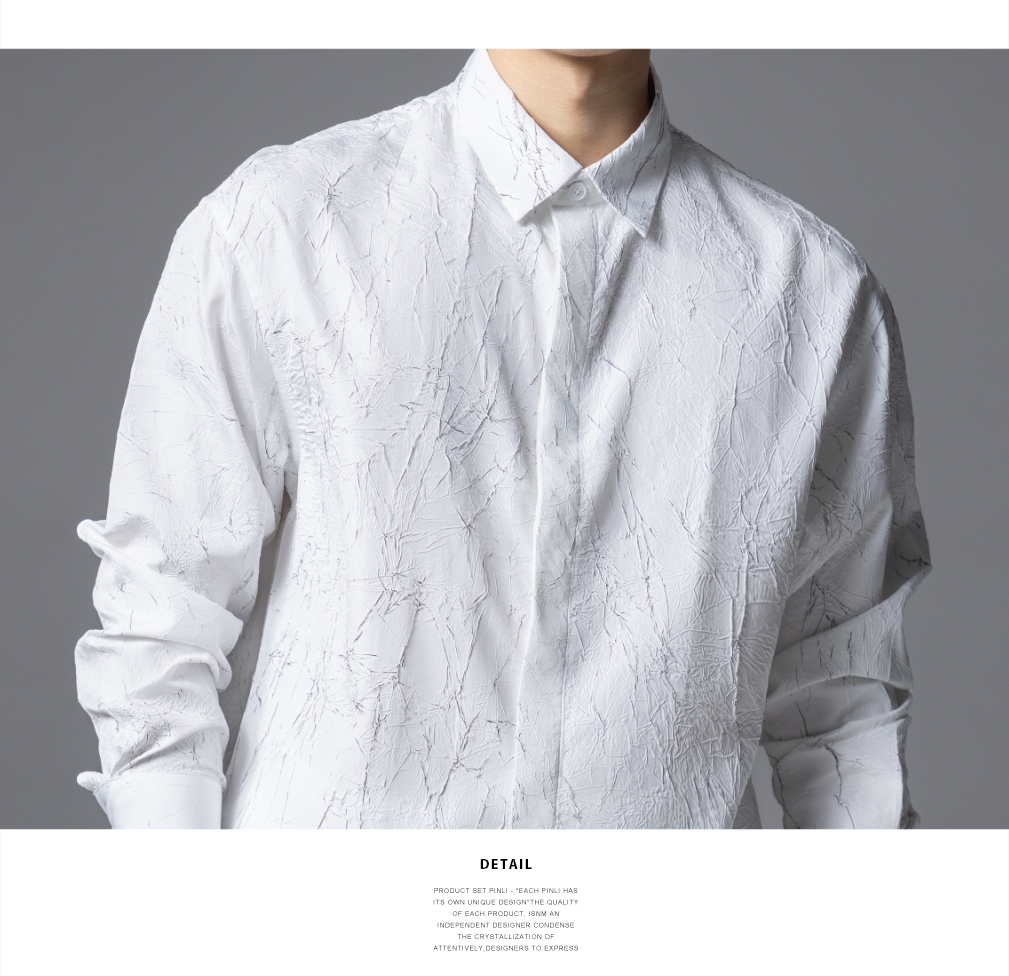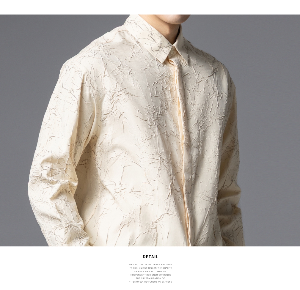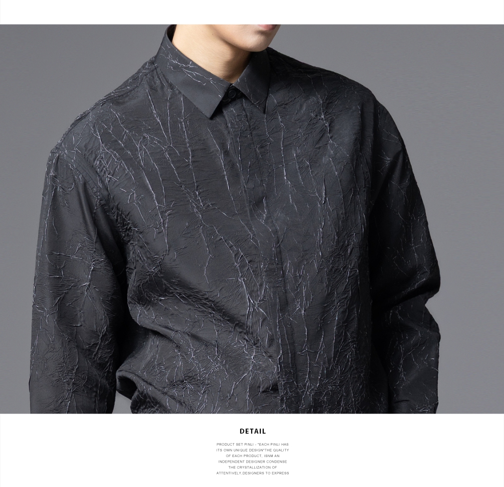 PINLI品立2025秋季新款男士肌理感长袖衬衫潮牌宽松休闲打底衬衣GD253113040