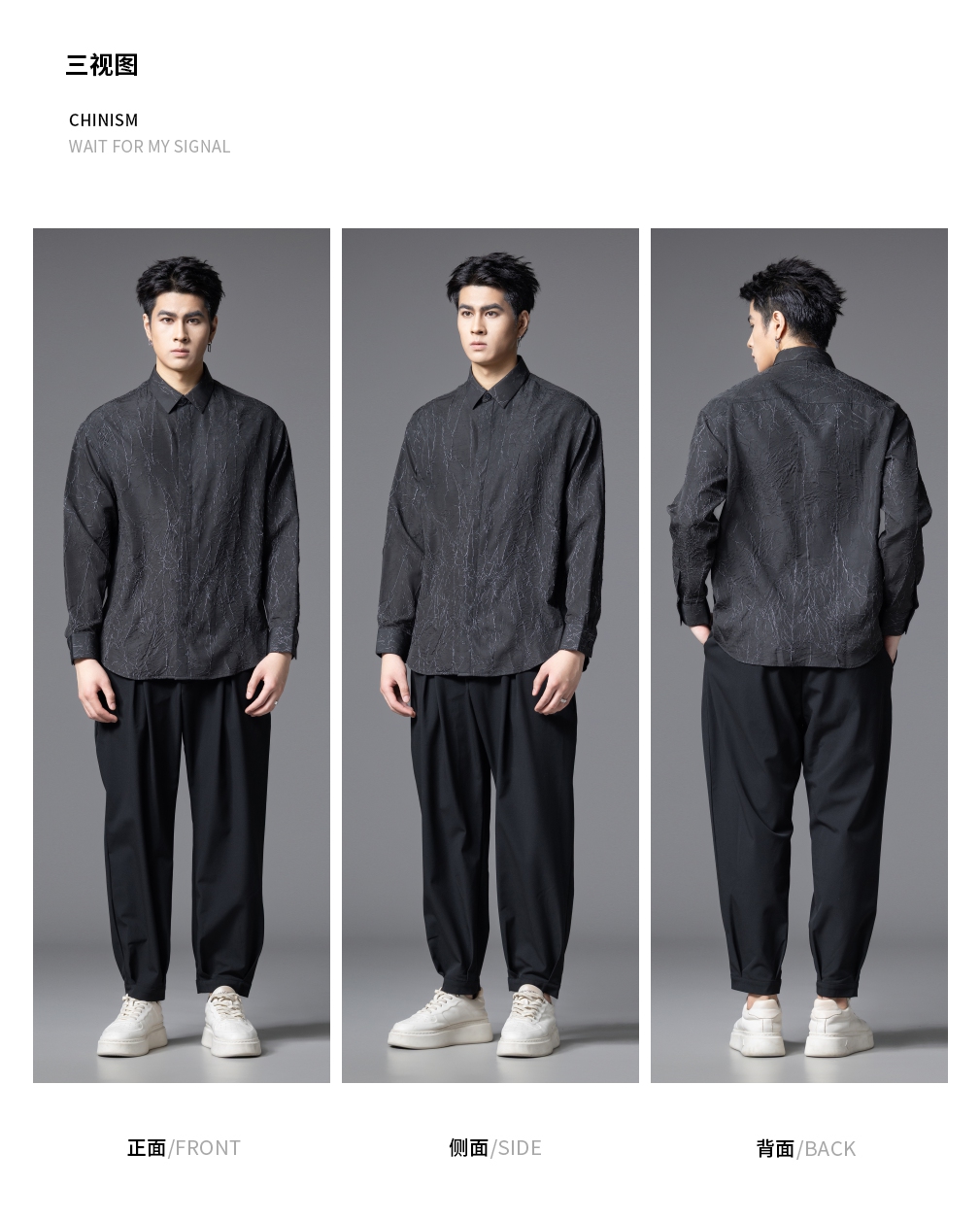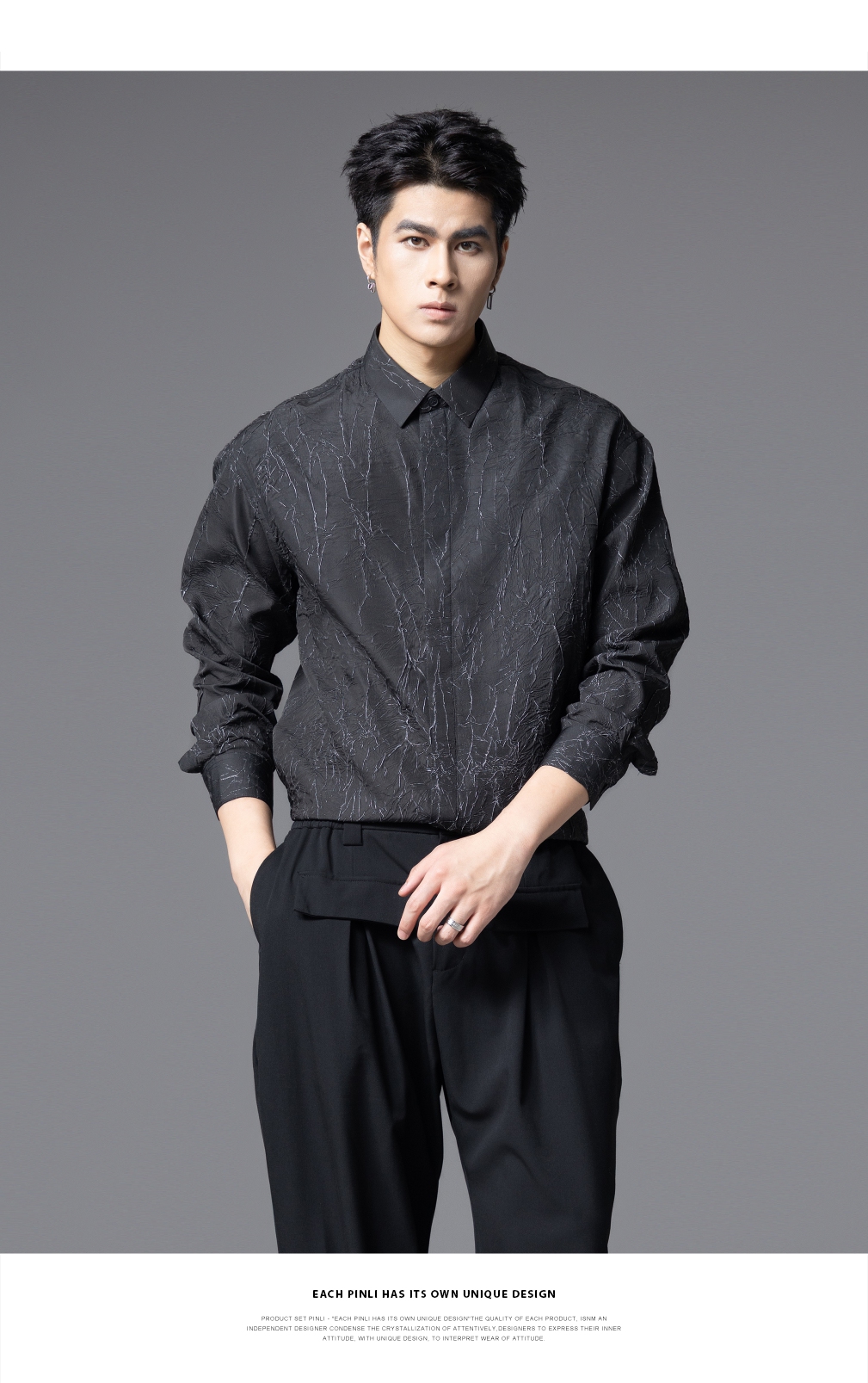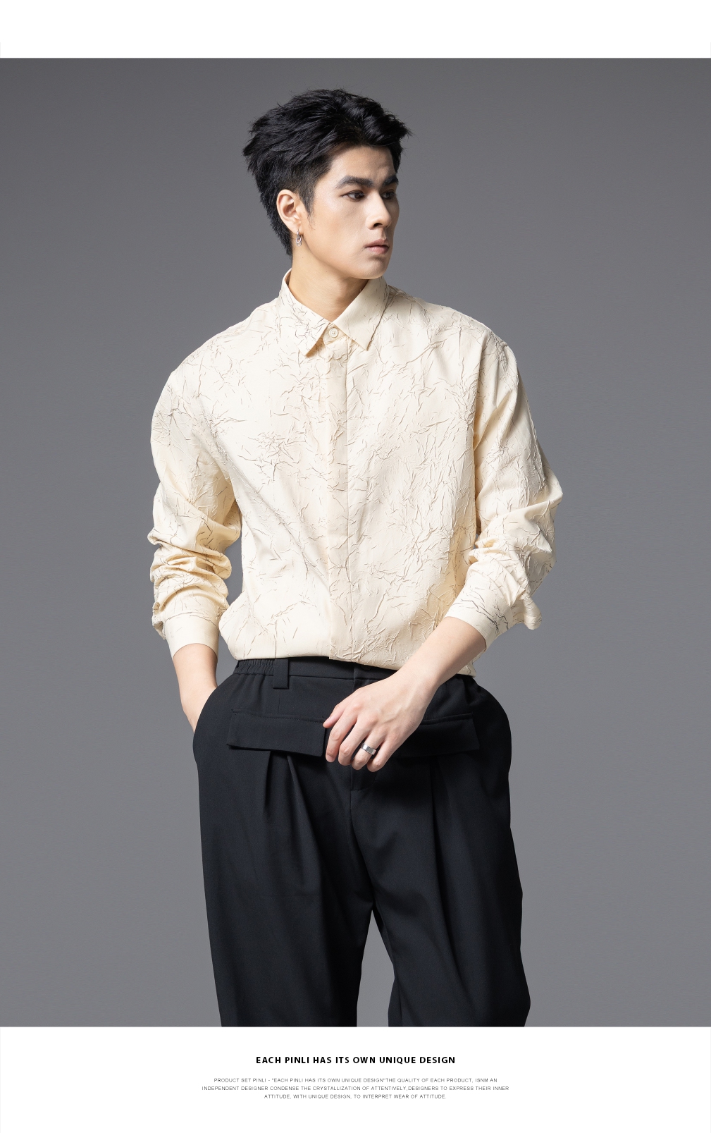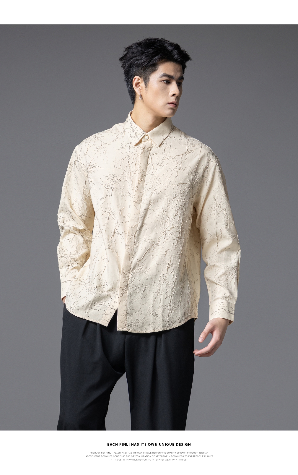 PINLI品立2025秋季新款男士肌理感长袖衬衫潮牌宽松休闲打底衬衣GD253113040