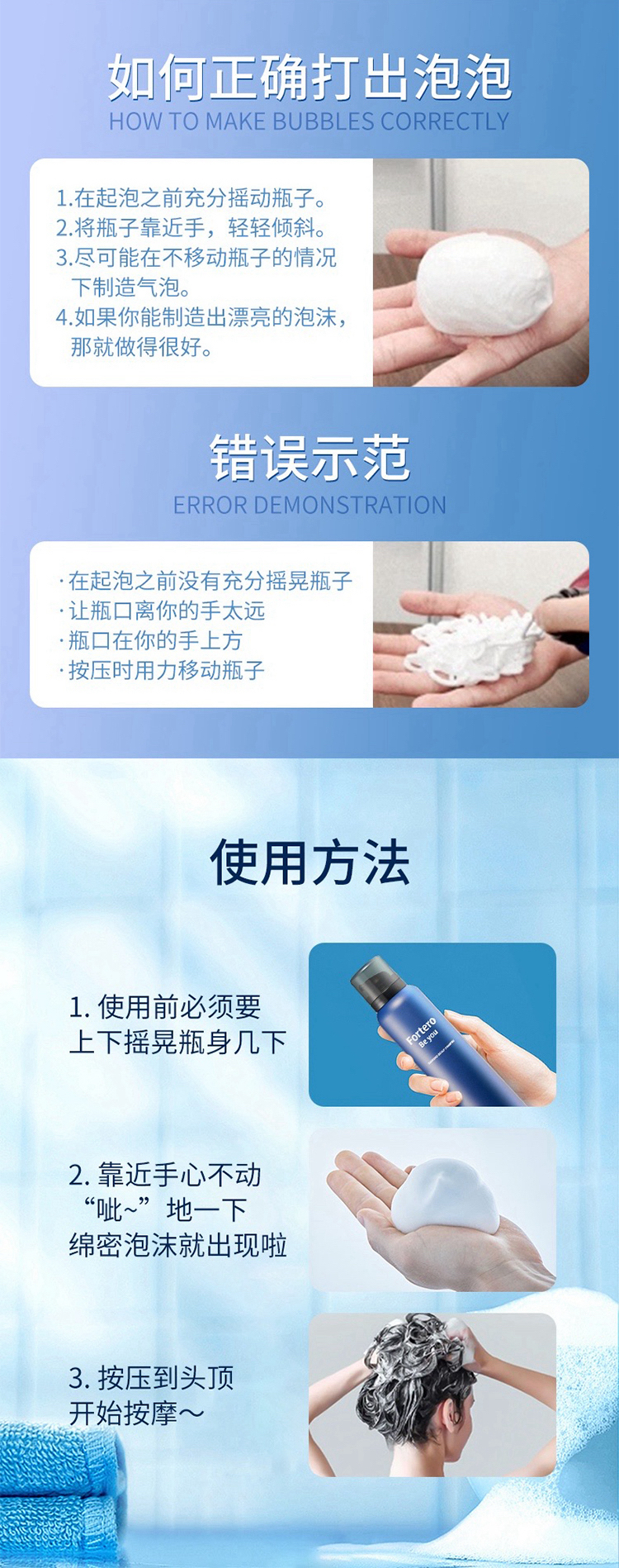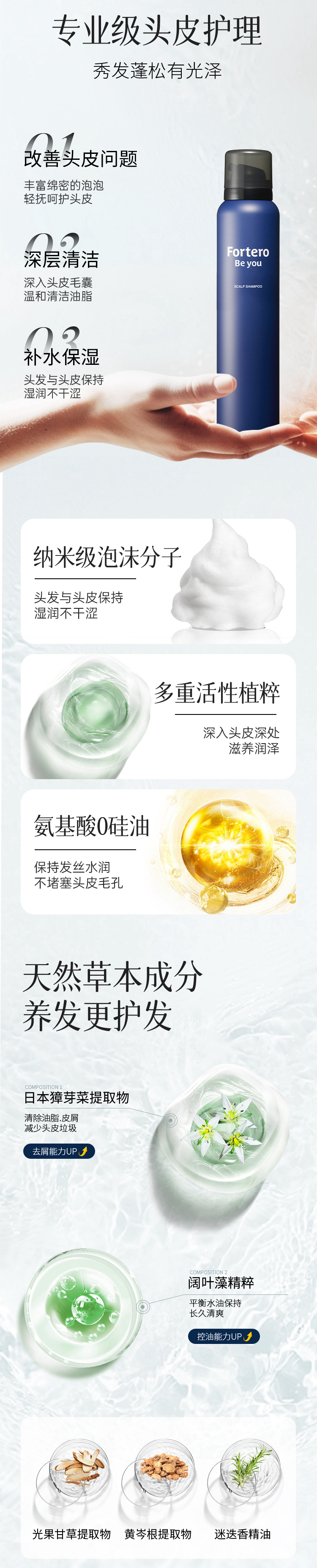 日本进口 Fortero 茯藤 泡沫头皮护理洗发水 150g 护发素 120g