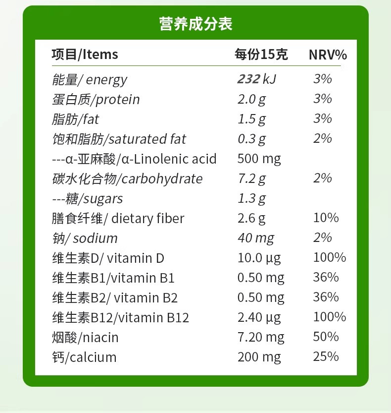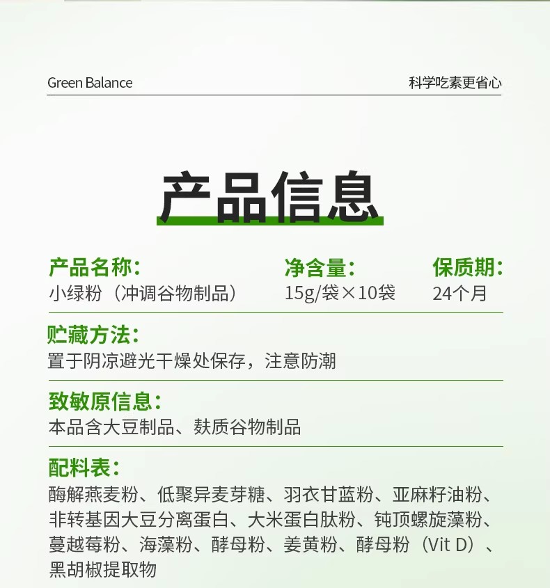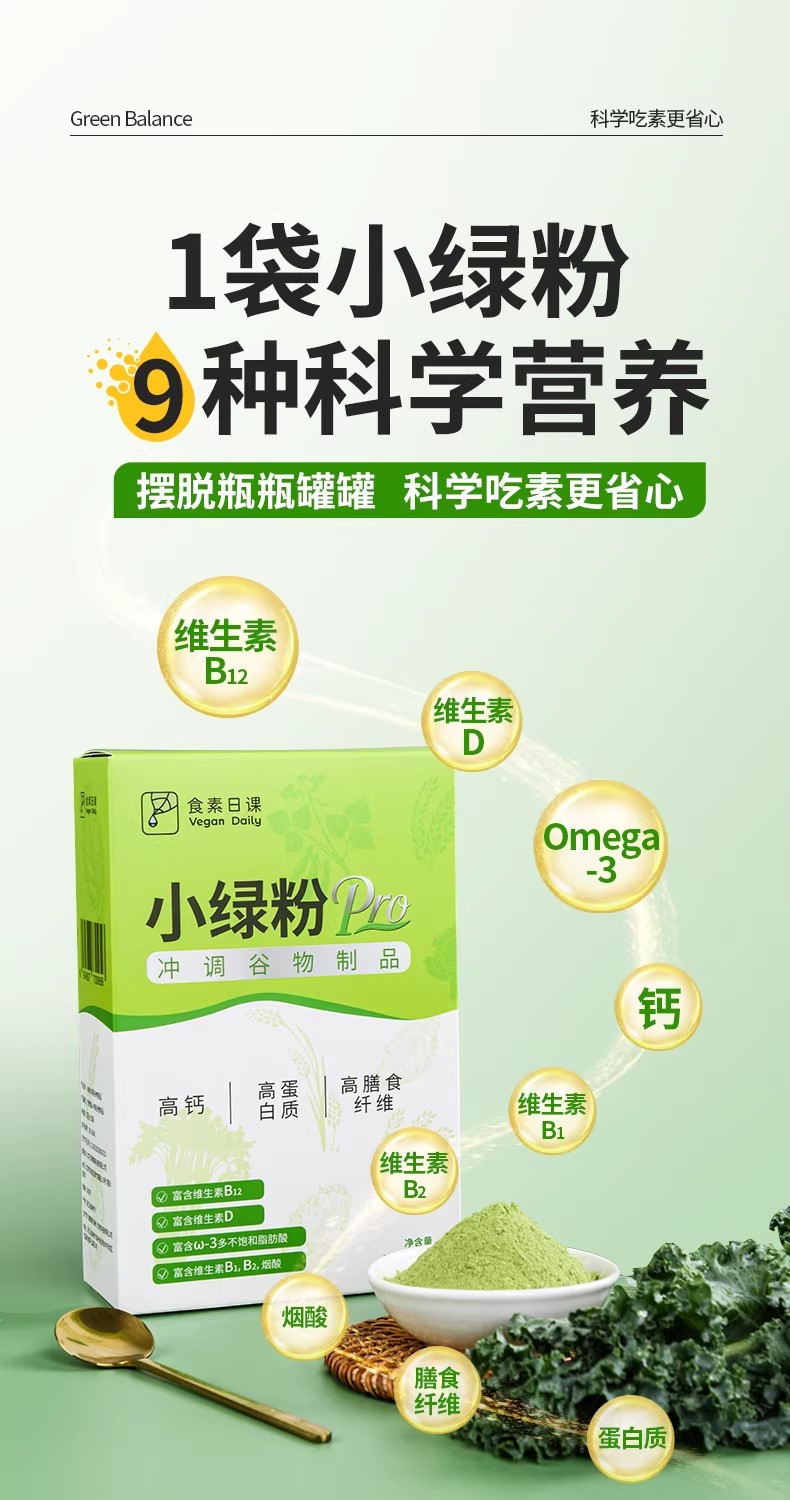 小绿粉素食营养粉 冲调谷物品 净素配方 科学吃素 高钙高蛋白高膳食纤维
