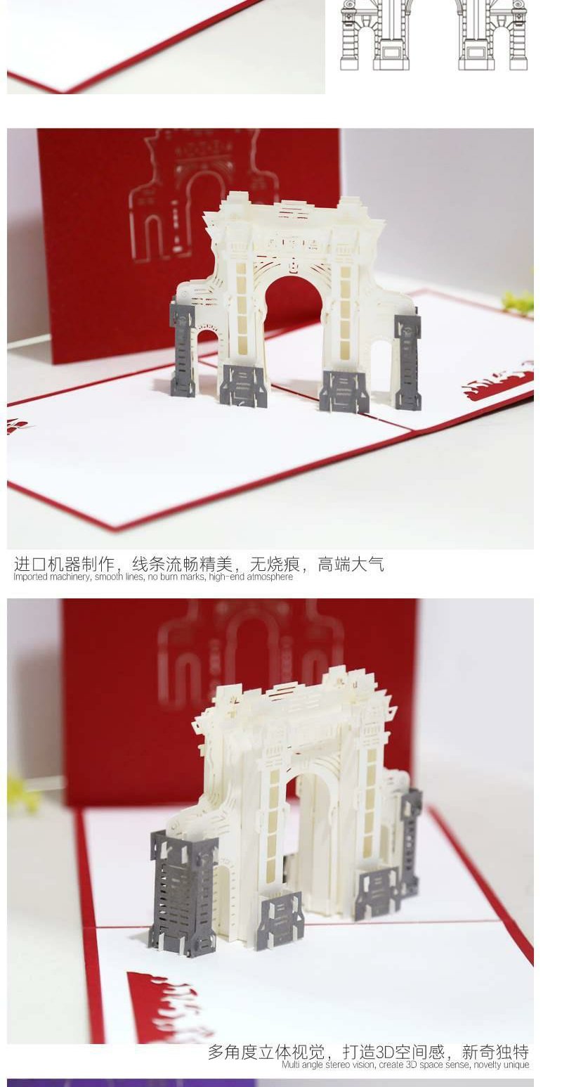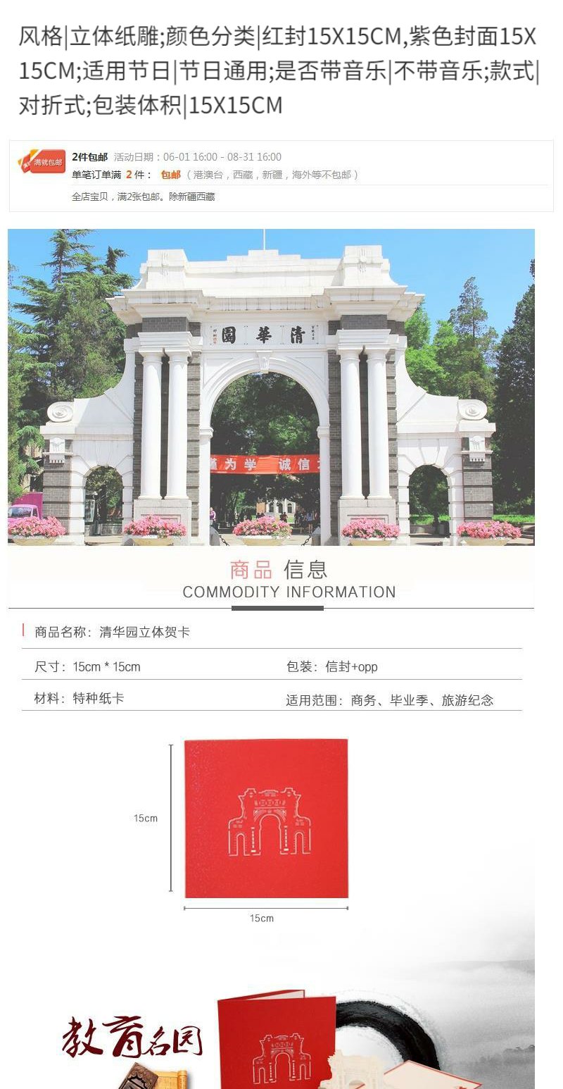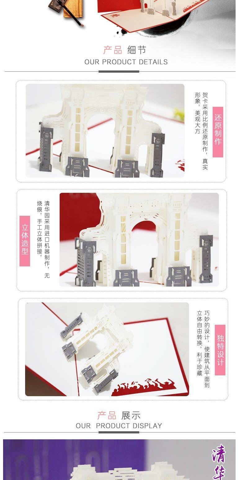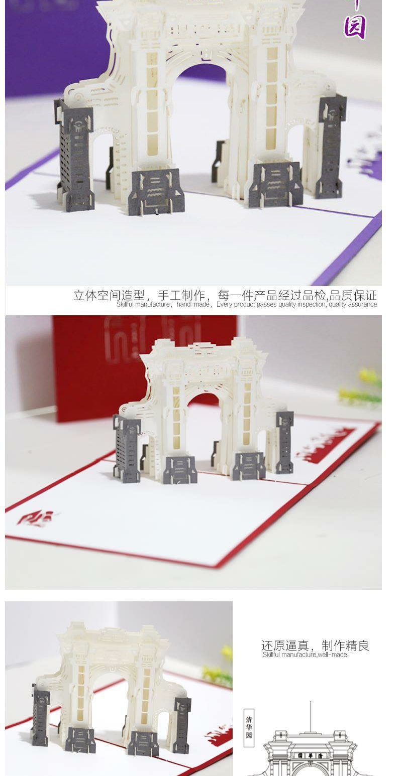 清华大学清华园3D立体贺卡开学送同学创意镂空毕业贺卡新年小卡片