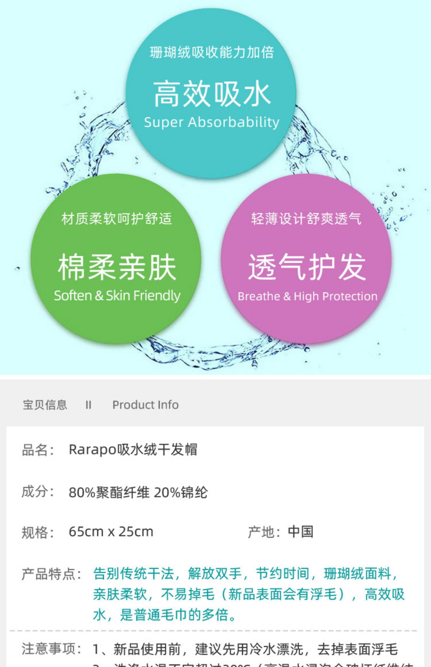 日本ITO/rarapo干发帽加厚透气吸水速干不掉毛/条