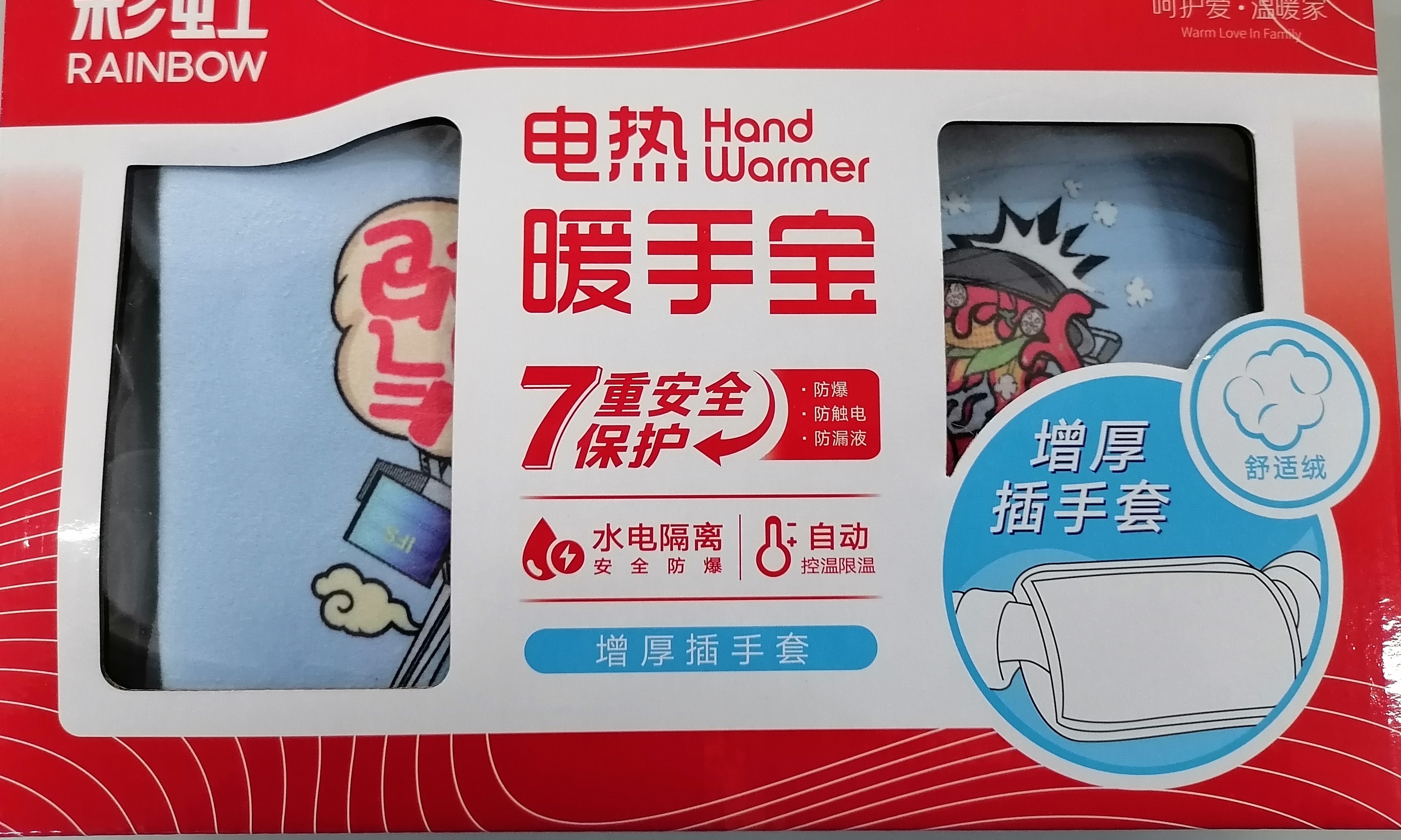 彩虹电热暖手宝(舒适增厚暖手套) 【粉色、蓝色】
