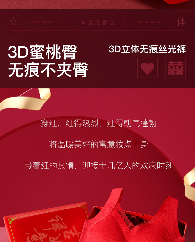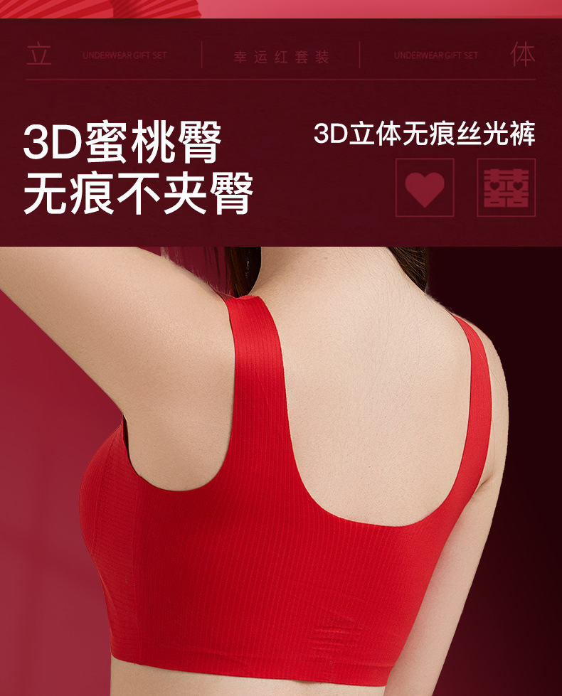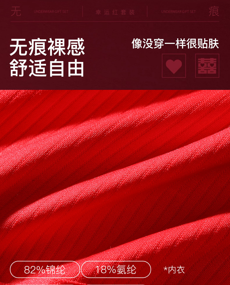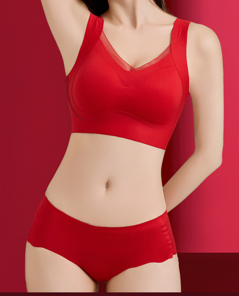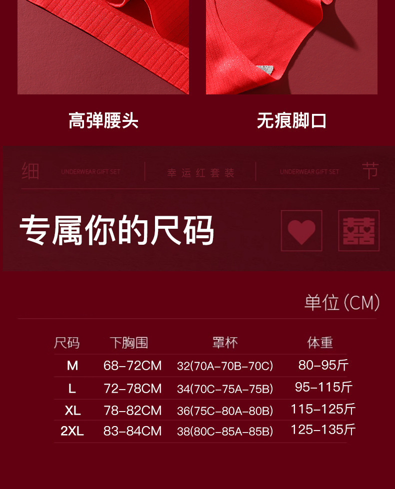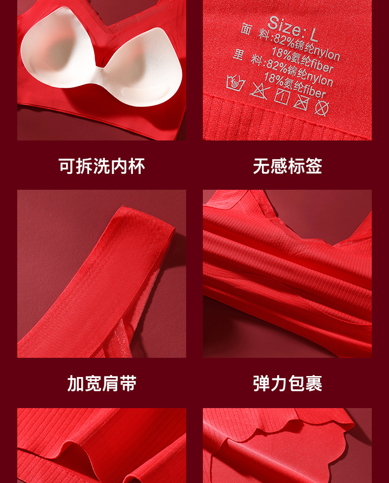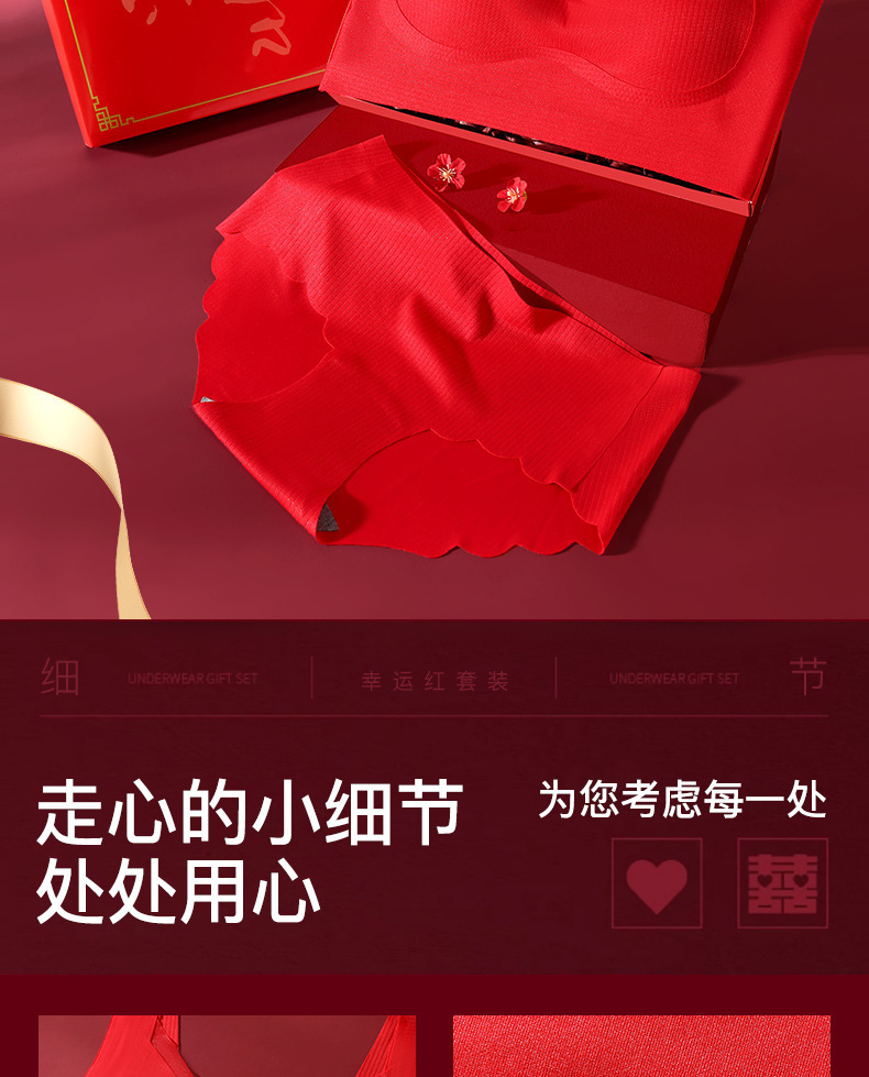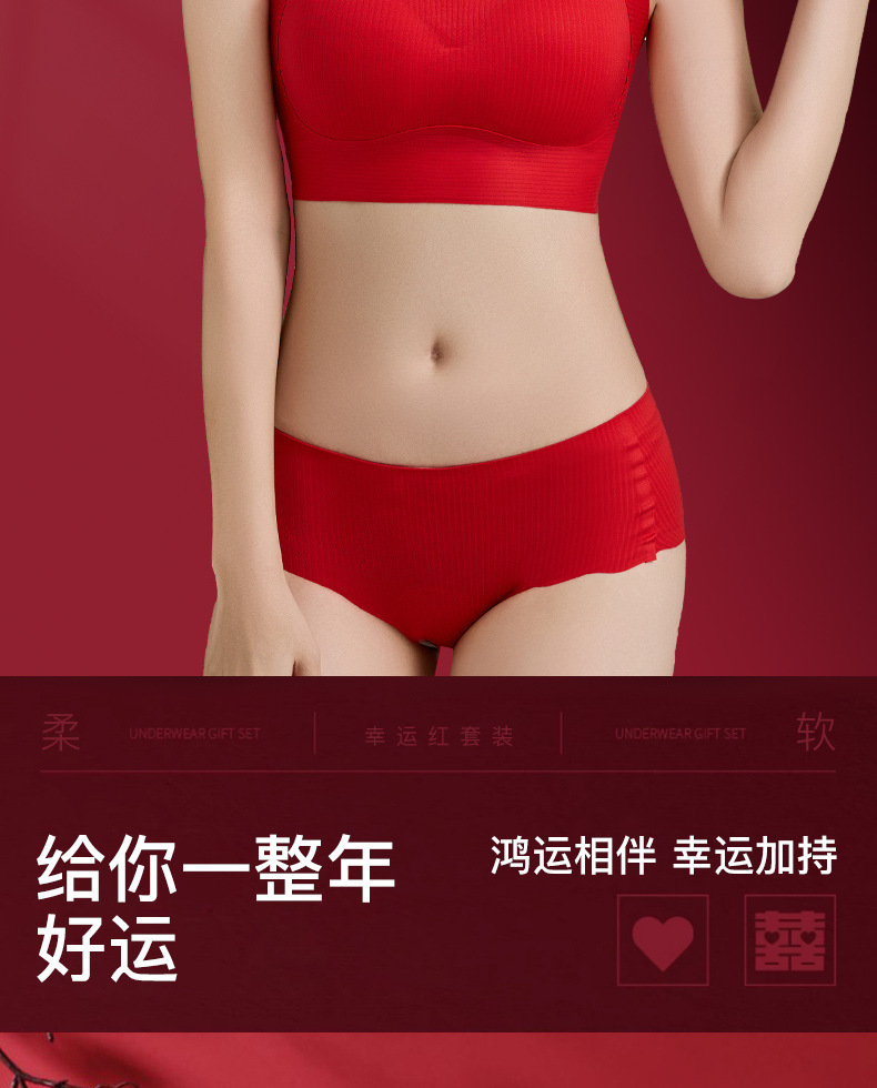 【“红”运当头❗红色内裤女文胸套装】新年转运「从“内”开始」无痕内裤新年结婚大红色,本命年文胸内裤套装女L