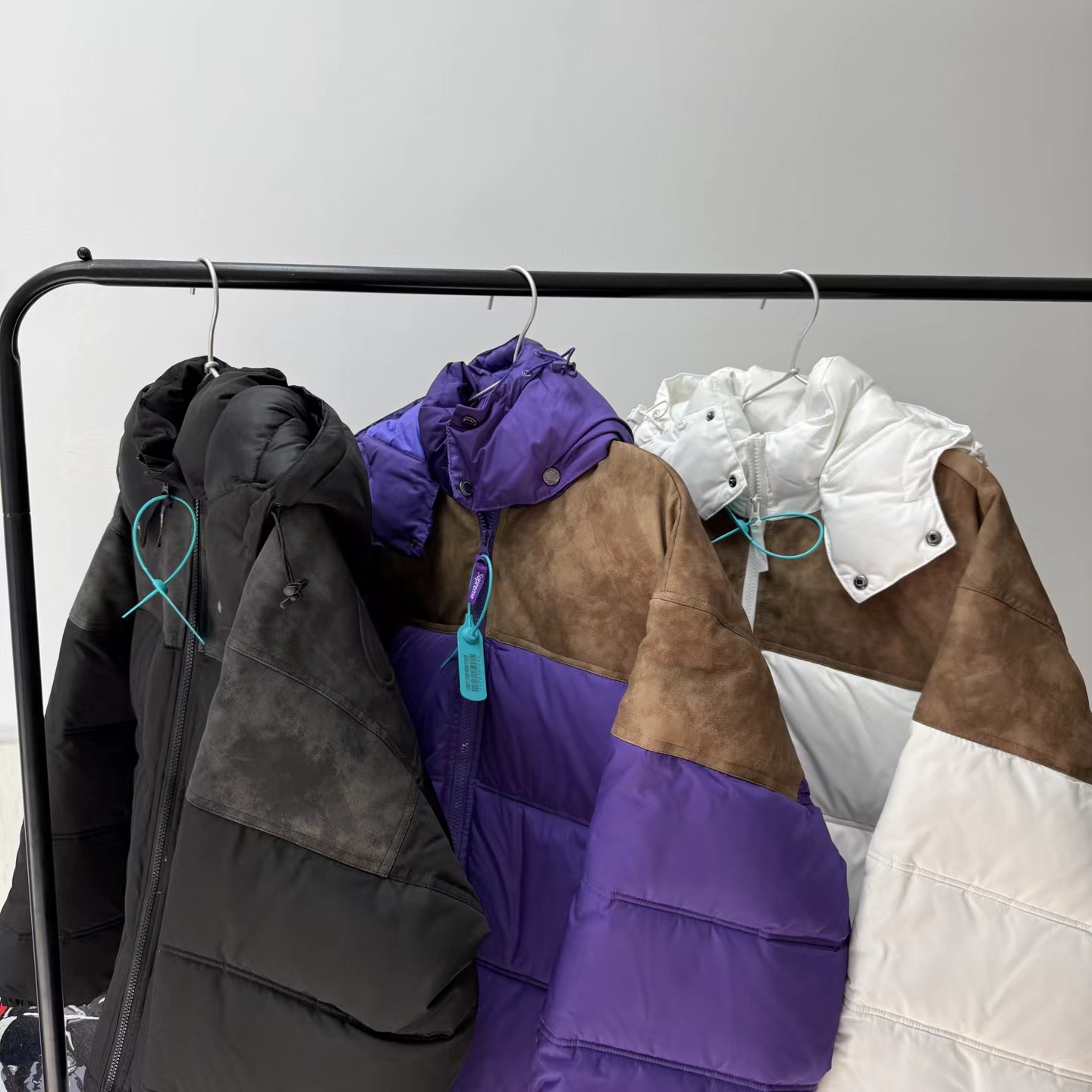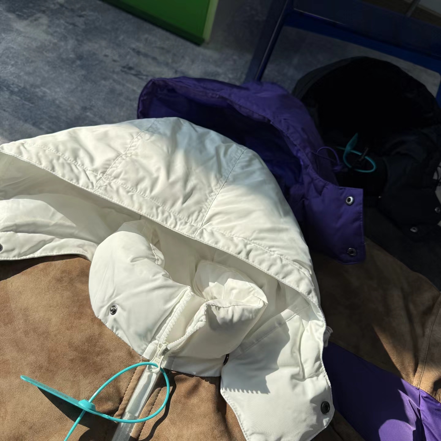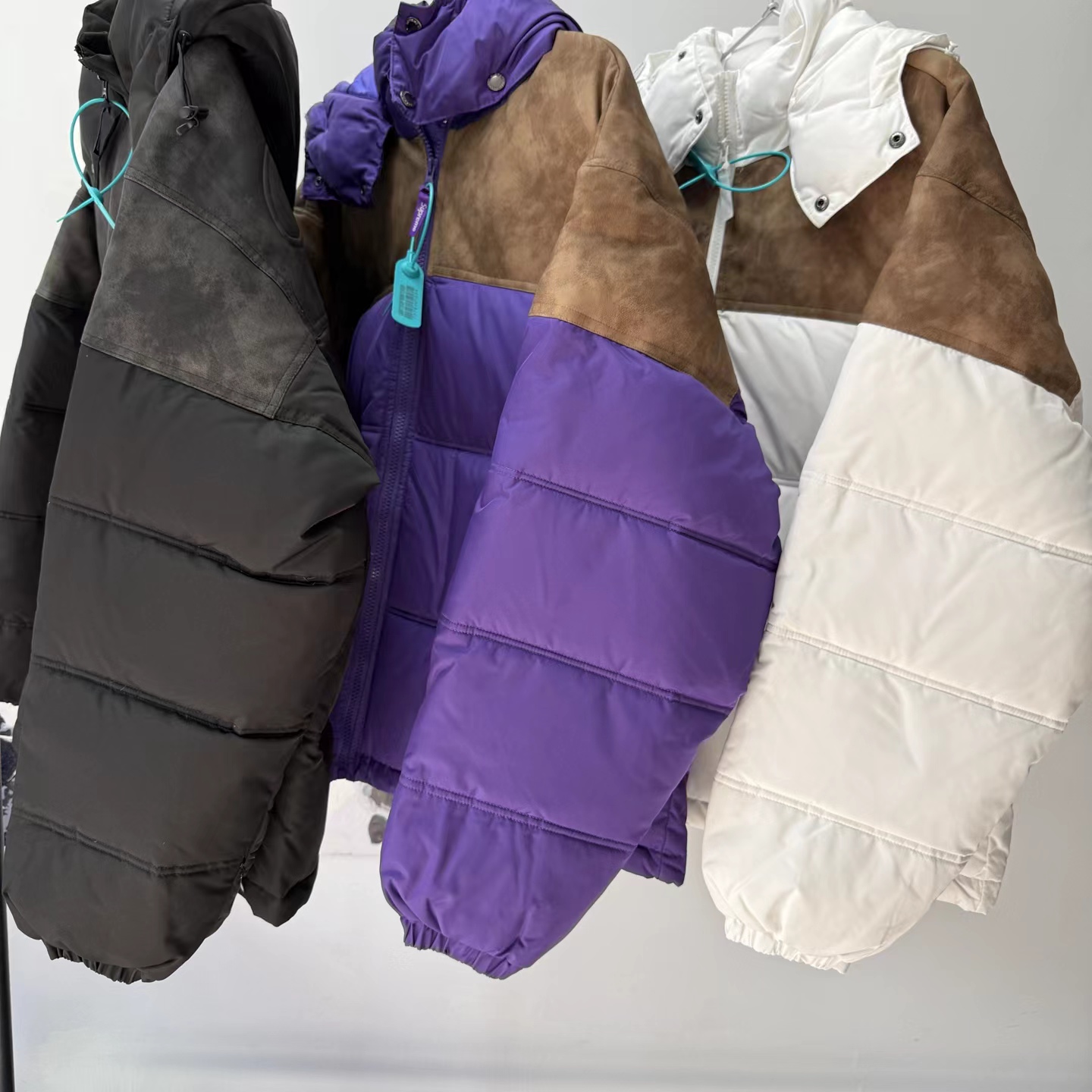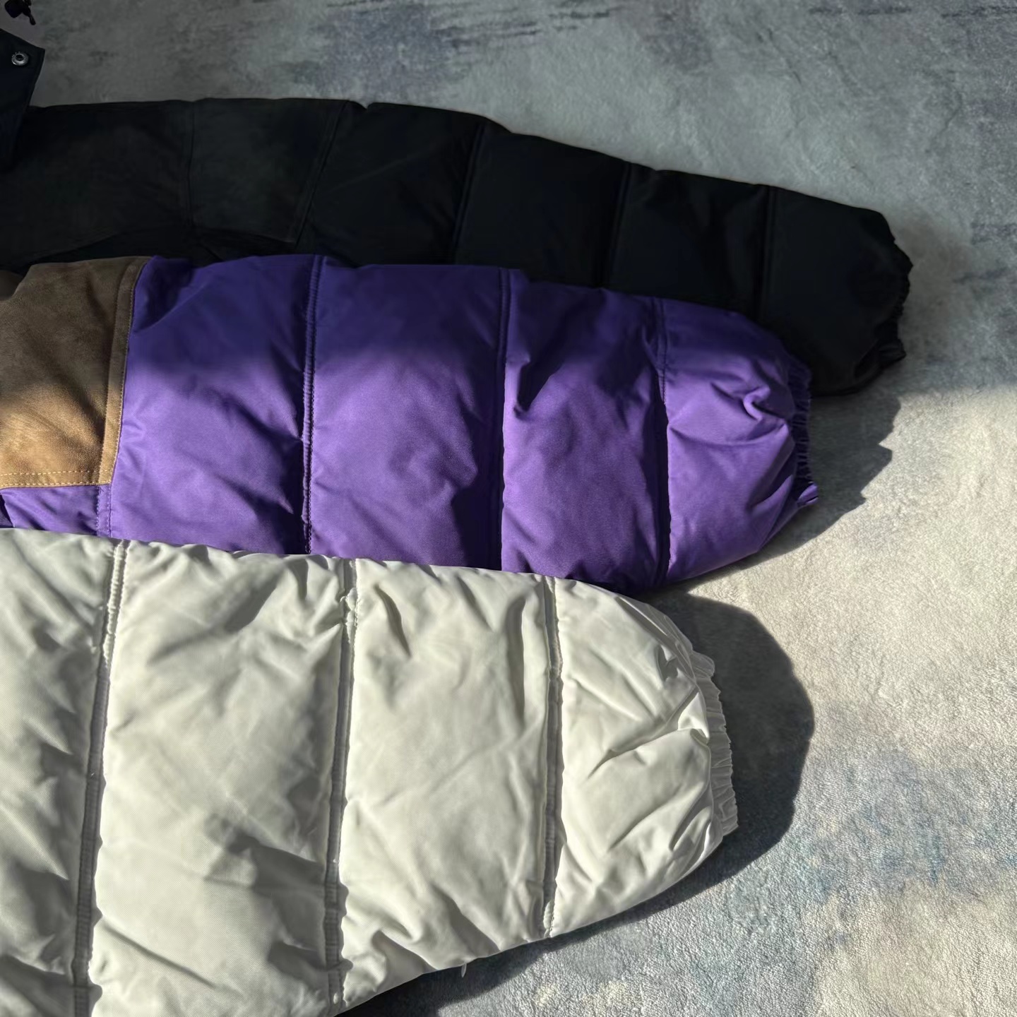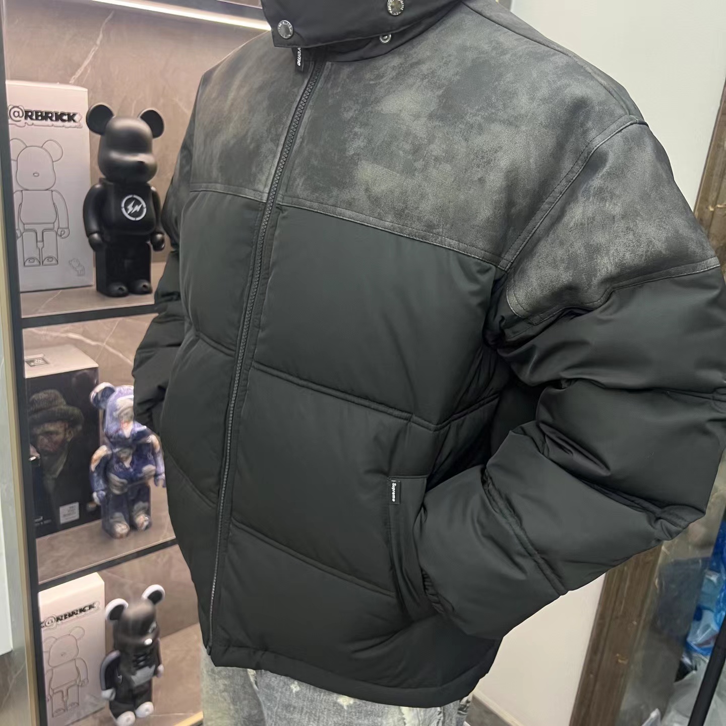 25FW LEATHER YOKE UFFER JACKET皮革拼接拉链羽绒面包服外套 宽松版型 原版定制开发 所有细节一一还原 肩部定制拼皮 凹凸压花工艺 90白鸭绒填充 充绒高达400多克精典版型 大气上档次 耐穿百搭!辅料扣具全部Ykk原装配件 白色售后请确保干净污渍
