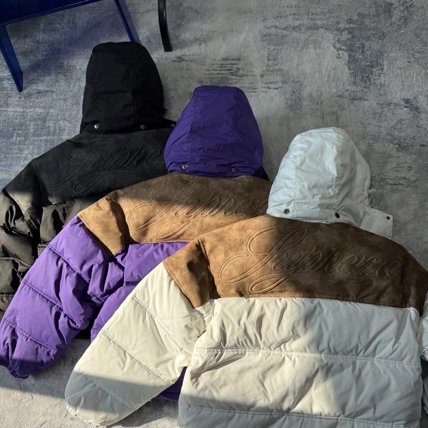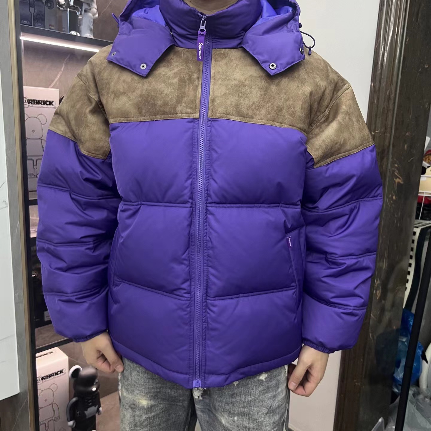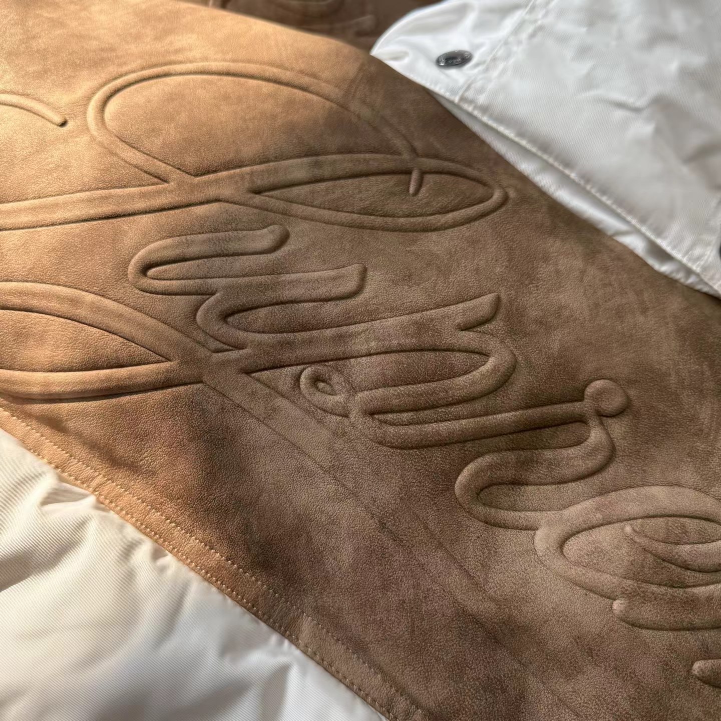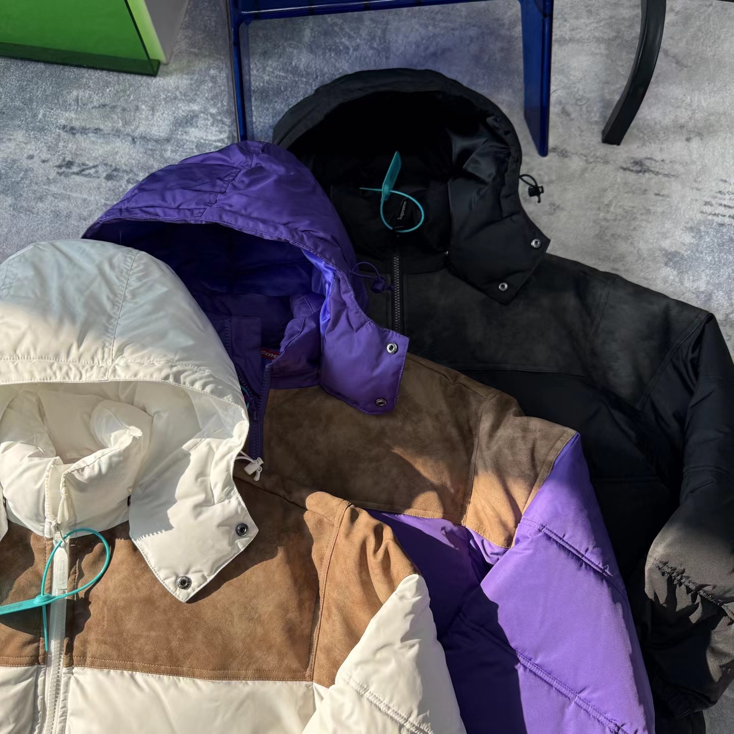 25FW LEATHER YOKE UFFER JACKET皮革拼接拉链羽绒面包服外套 宽松版型 原版定制开发 所有细节一一还原 肩部定制拼皮 凹凸压花工艺 90白鸭绒填充 充绒高达400多克精典版型 大气上档次 耐穿百搭!辅料扣具全部Ykk原装配件 白色售后请确保干净污渍