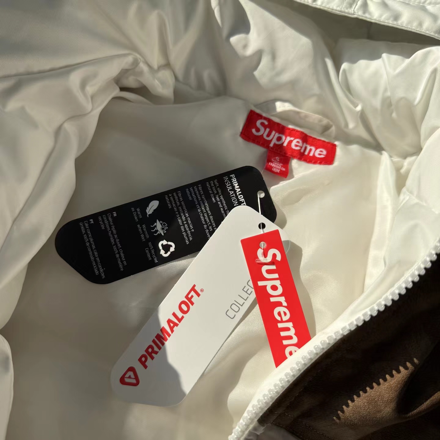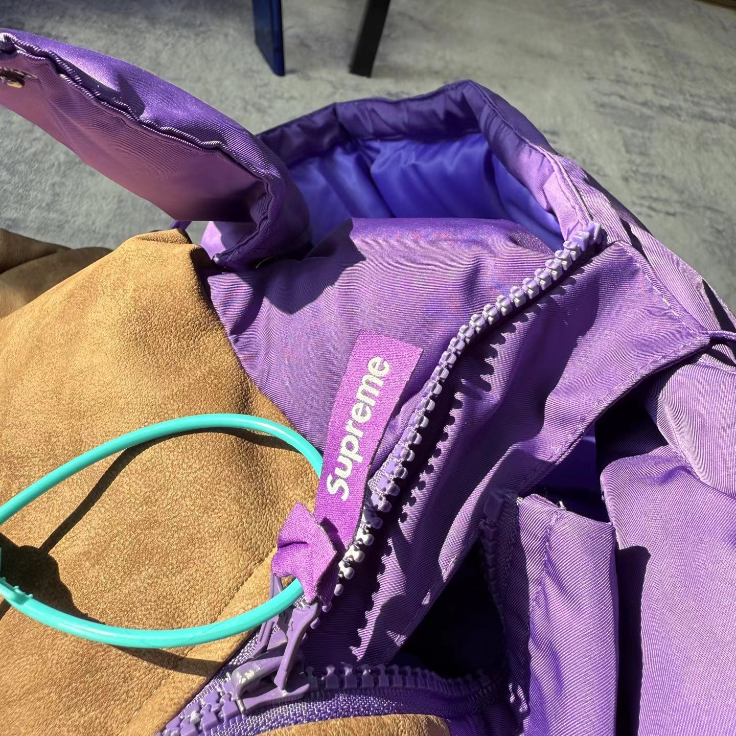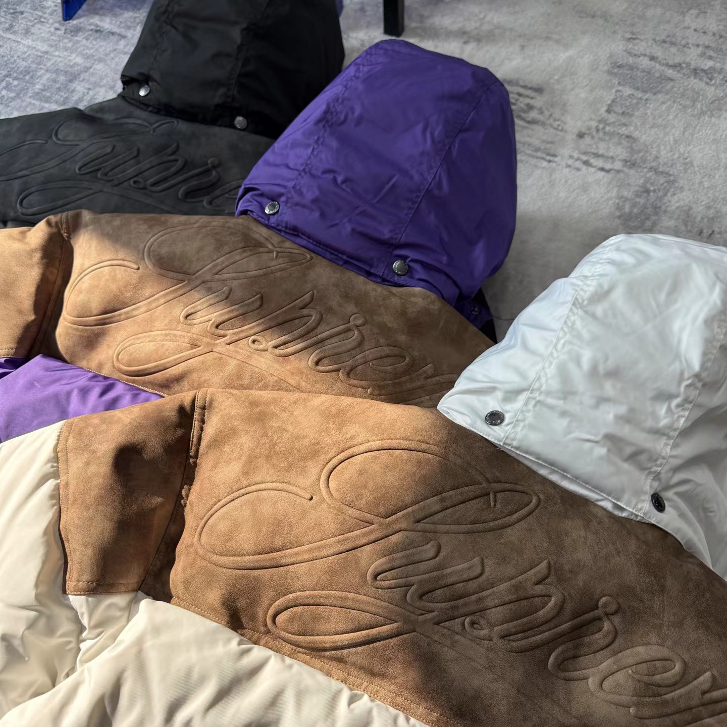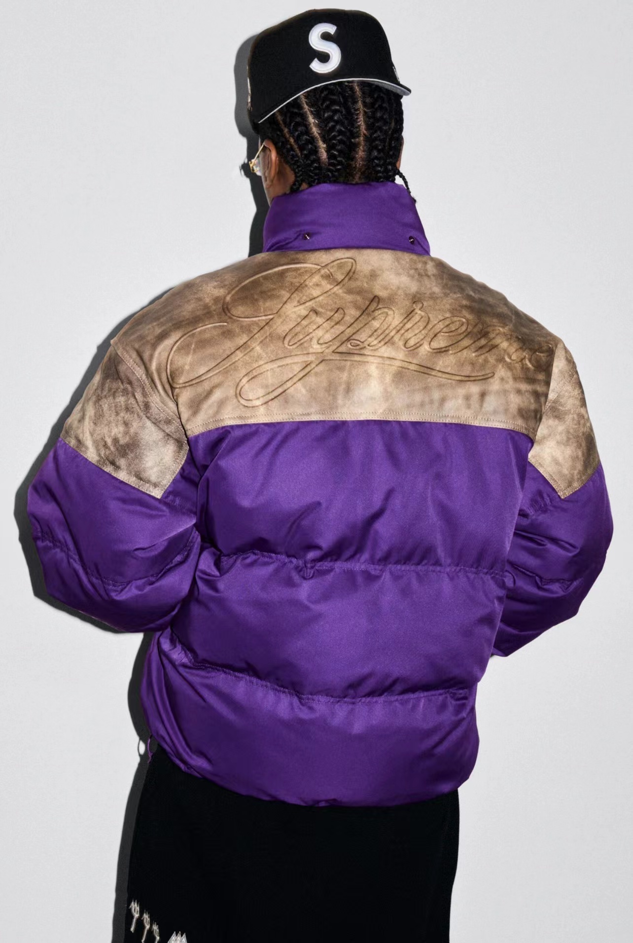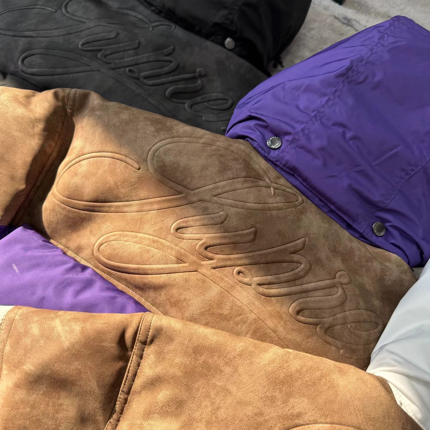 25FW LEATHER YOKE UFFER JACKET皮革拼接拉链羽绒面包服外套 宽松版型 原版定制开发 所有细节一一还原 肩部定制拼皮 凹凸压花工艺 90白鸭绒填充 充绒高达400多克精典版型 大气上档次 耐穿百搭!辅料扣具全部Ykk原装配件 白色售后请确保干净污渍