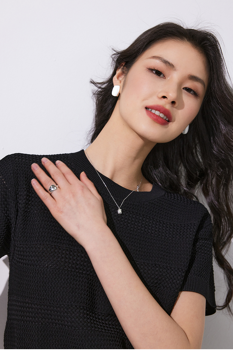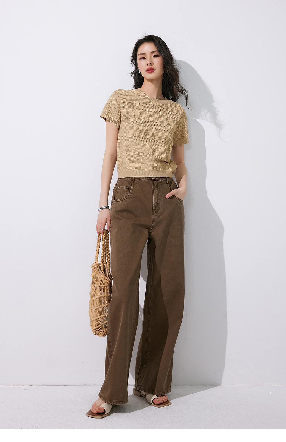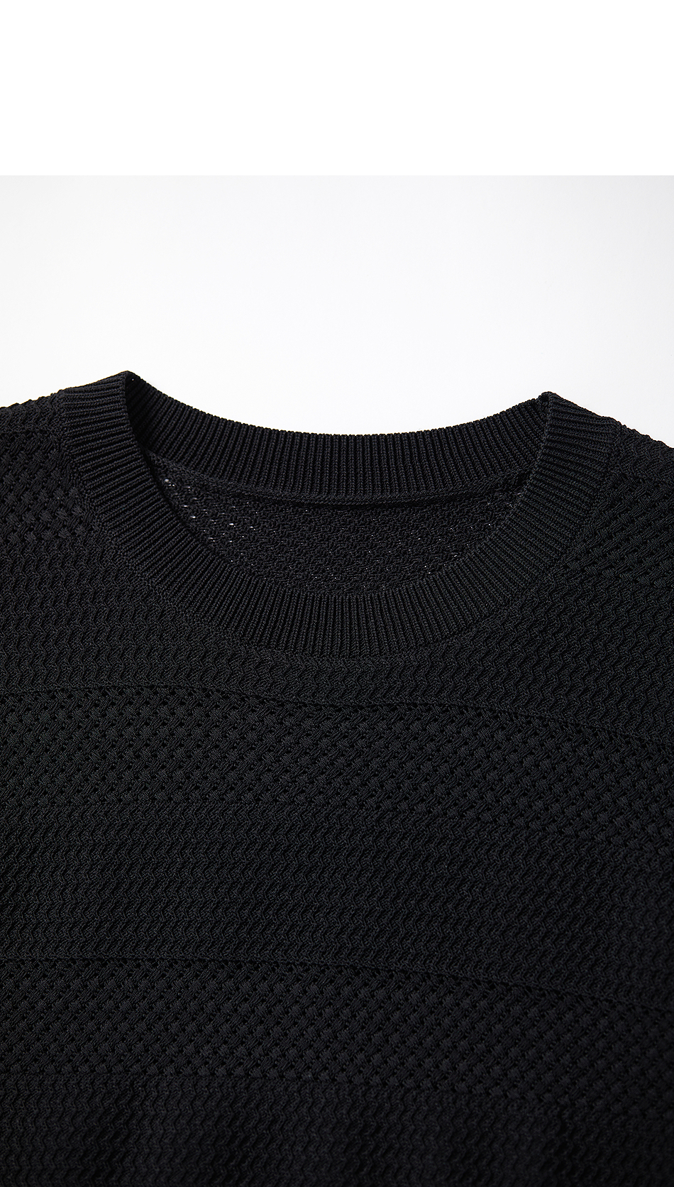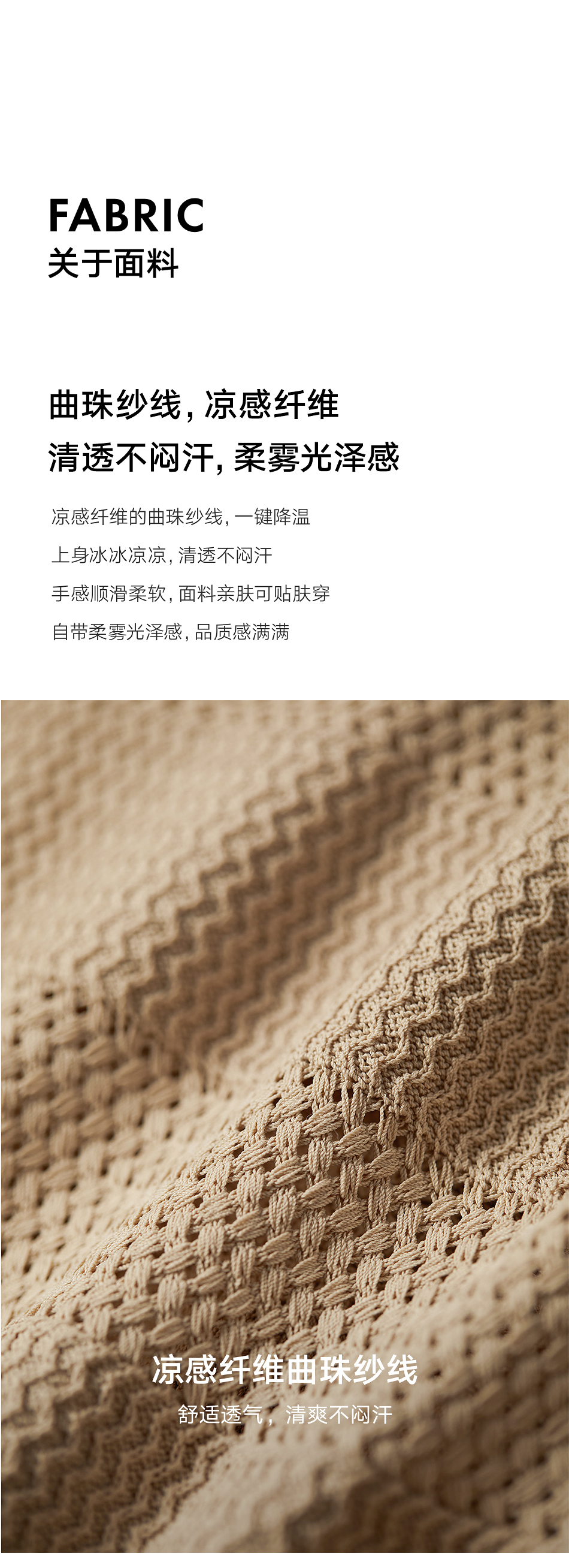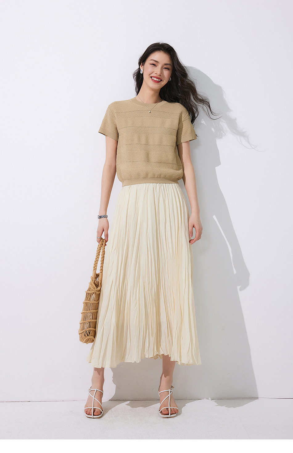棉仓353635013-曲珠凉感短袖针织衫女宽条肌理 24夏季镂空设计气质圆领小衫
