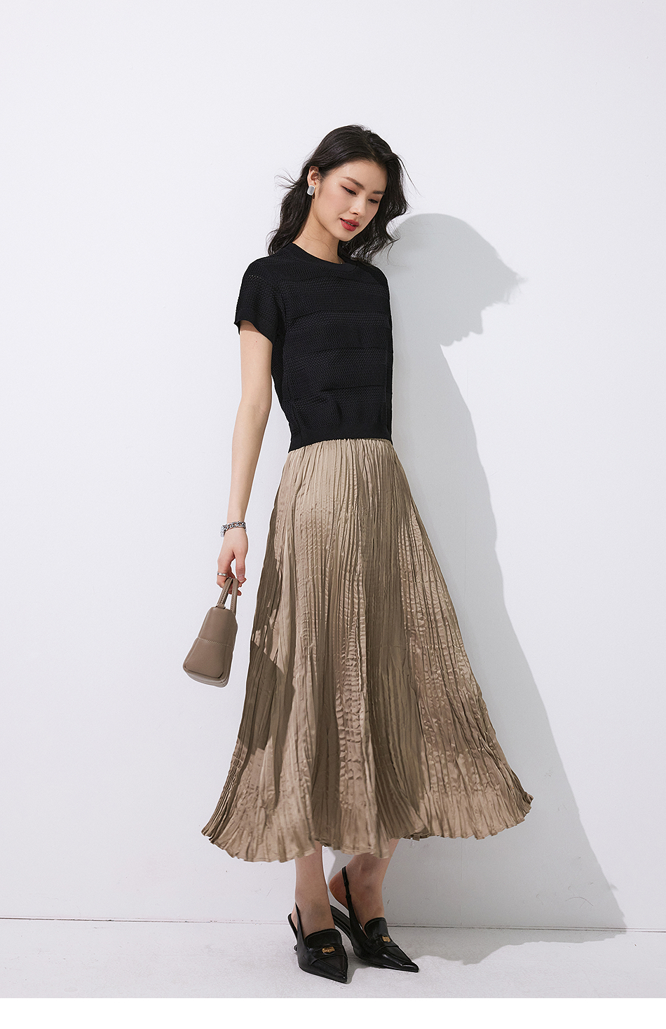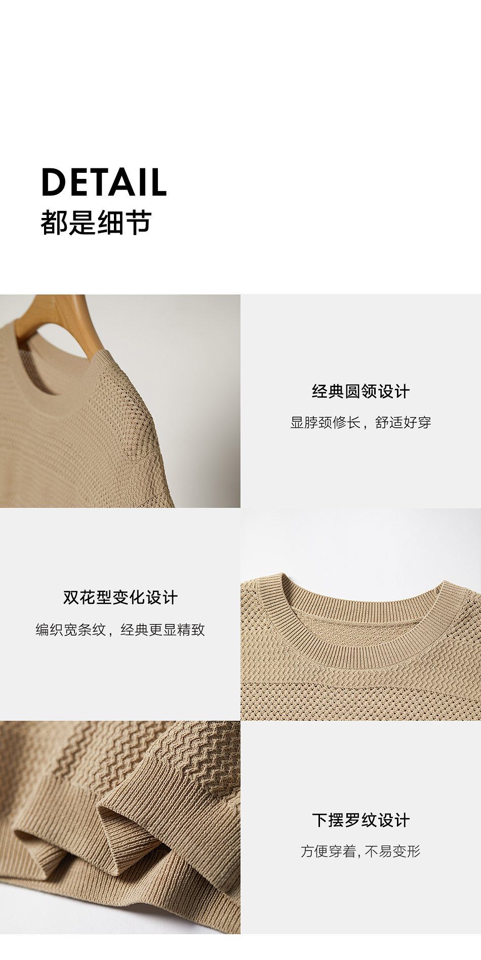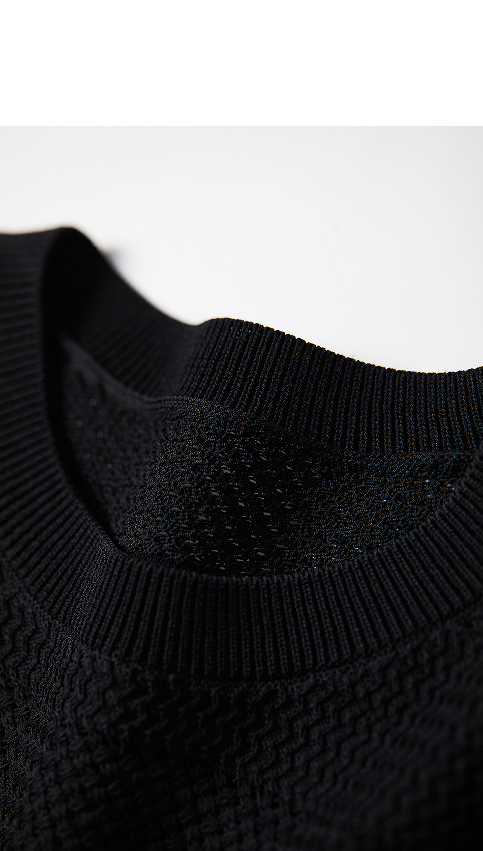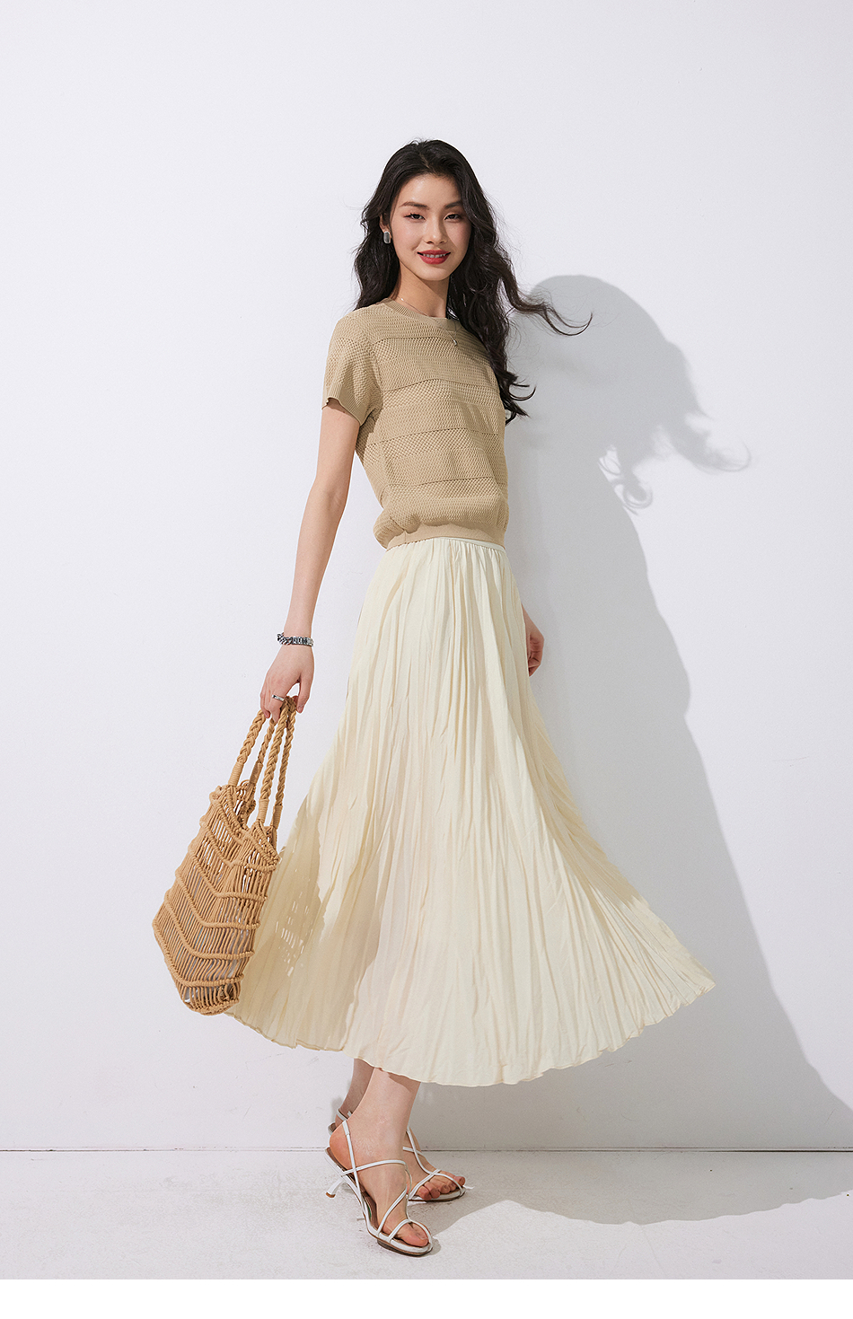 棉仓353635013-曲珠凉感短袖针织衫女宽条肌理 24夏季镂空设计气质圆领小衫