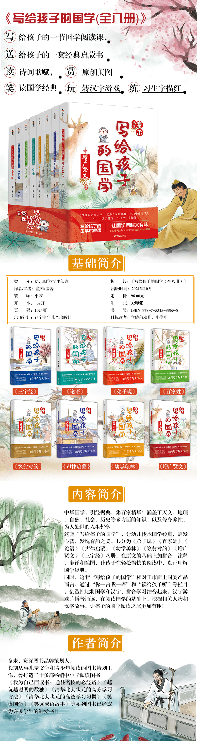 《写给孩子的国学》(全8册)配音频, 弟子规 三字经 百家姓 论语 声律启蒙 笠翁对韵 增广贤文 幼学琼林