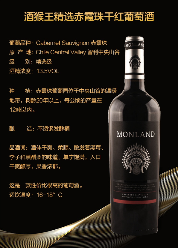 智利酒猴王赤霞珠干红葡萄酒 13.5%VOL