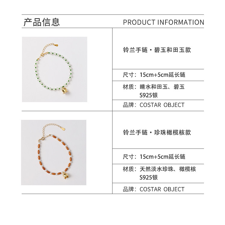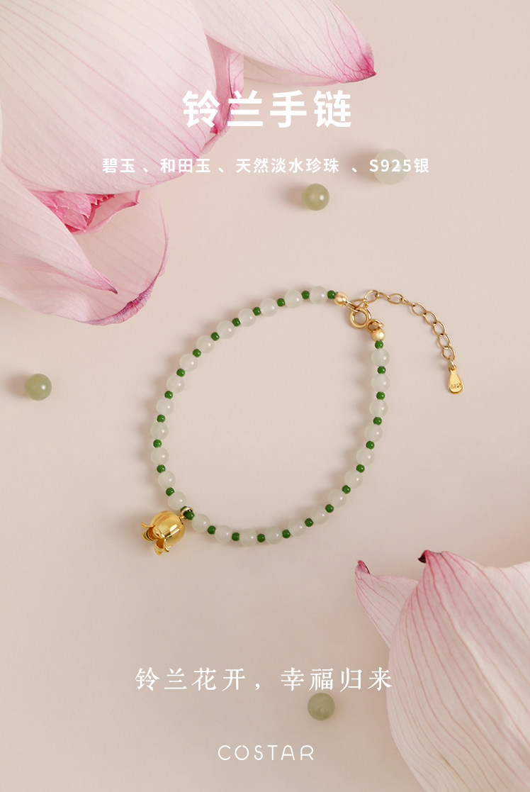 COSTAR铃兰手链|天然和田玉碧玉纯银925银情人节生日闺蜜礼物