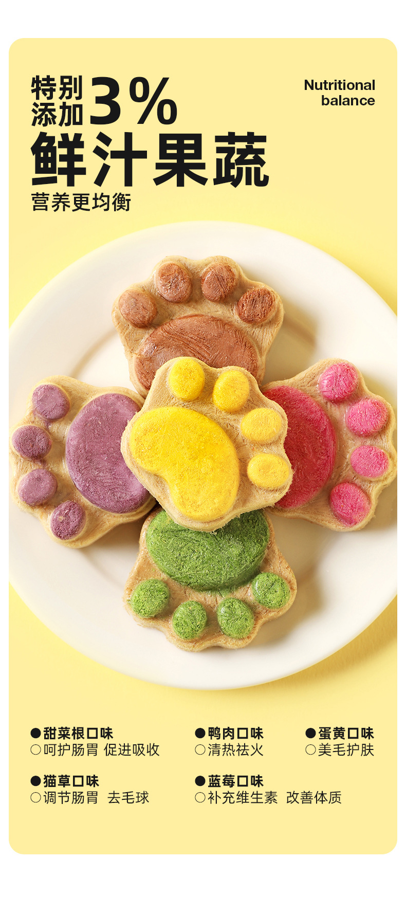 严选【高蛋白多营养冻干喵爪饼】yee猫咪零食生骨肉猫薄荷冻干宠物猫狗零食混合口味10个/盒