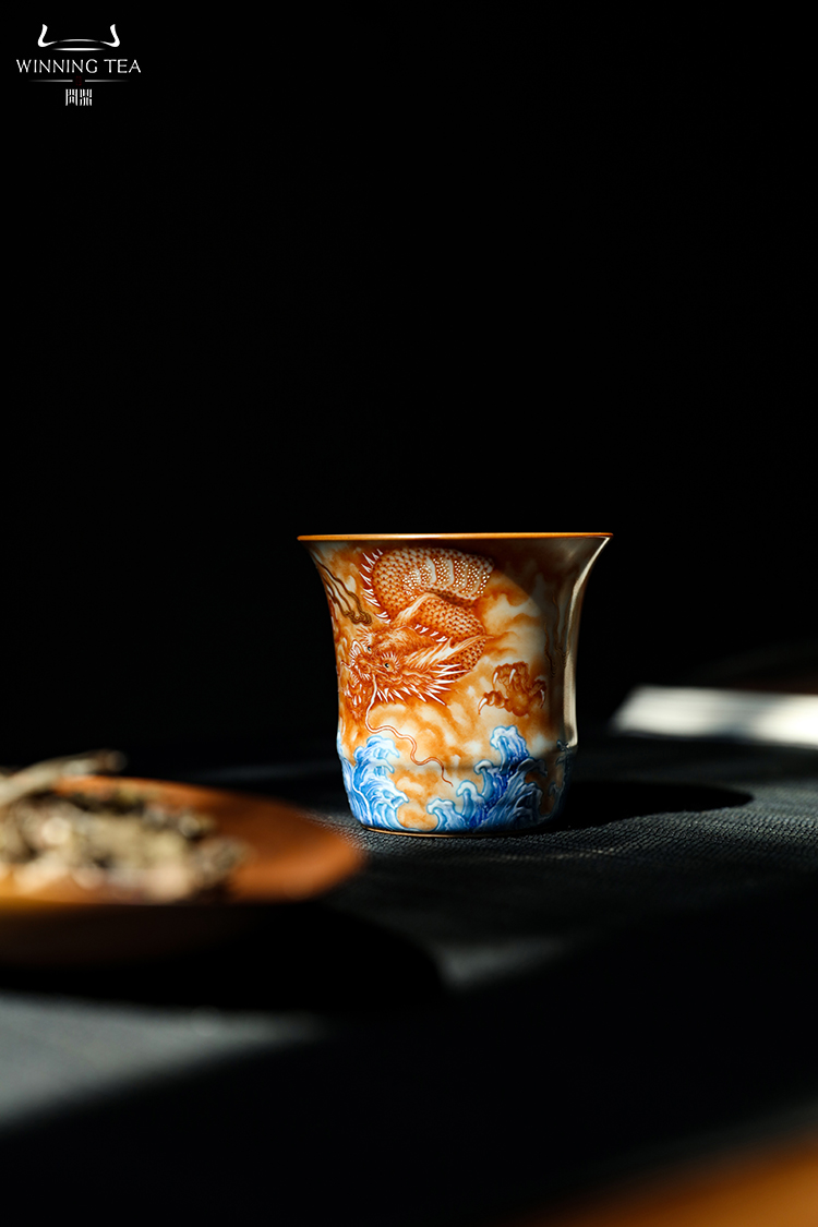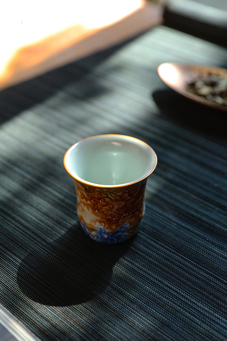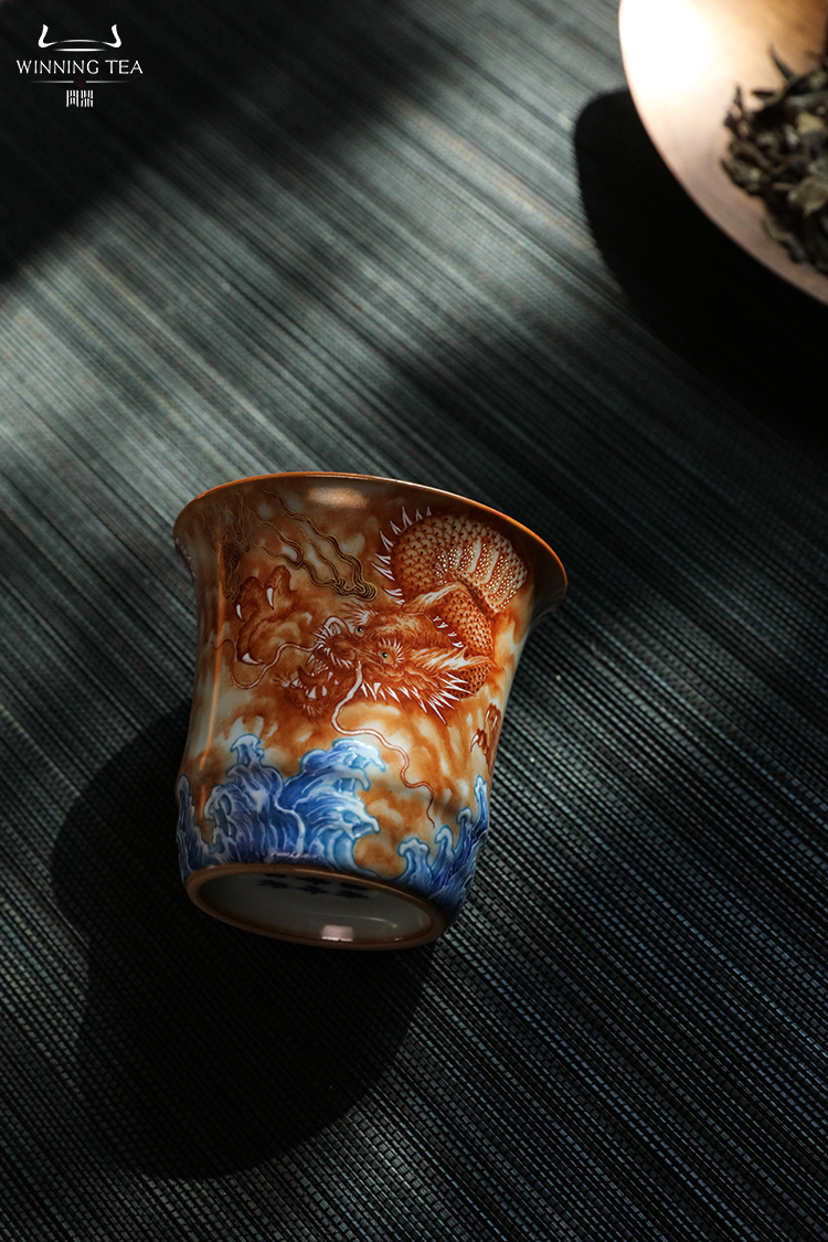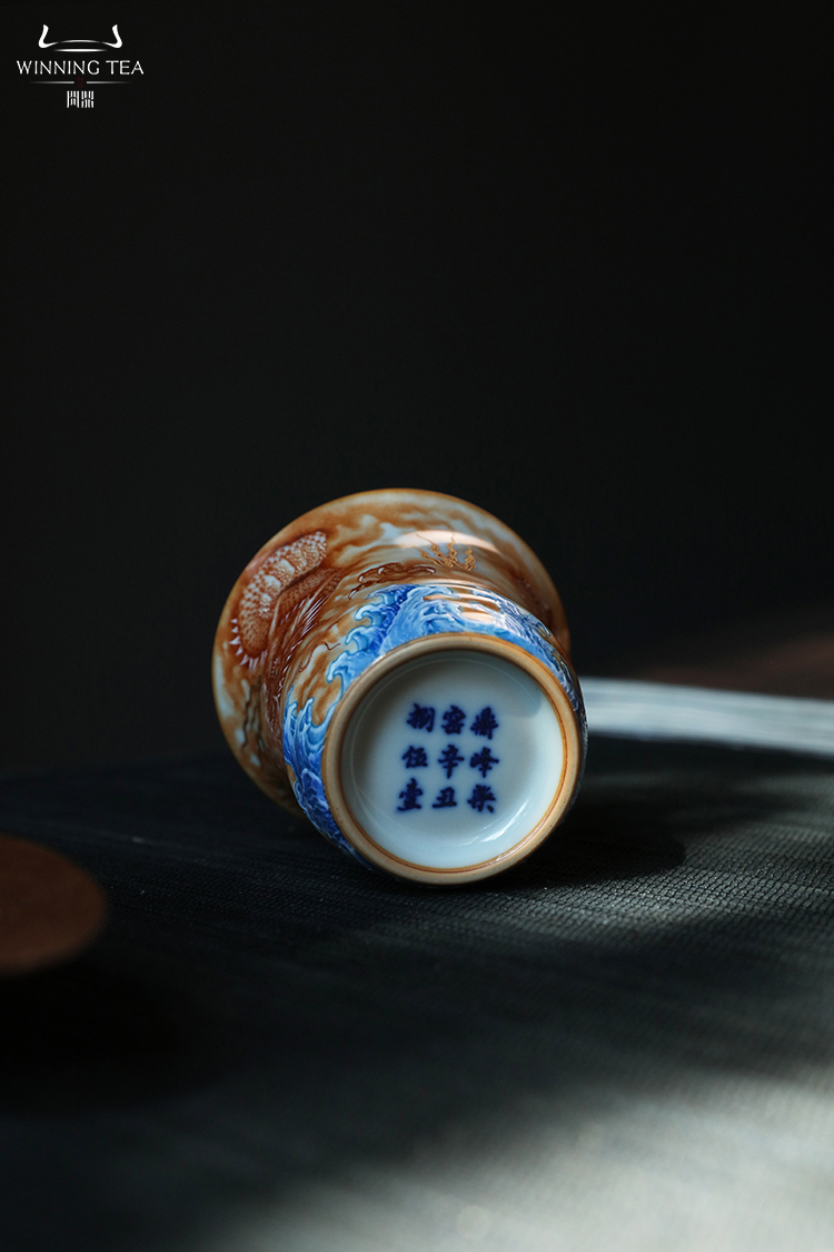 问鼎汝瓷鼎峰柴窑天青竹节杯(龙行四海)