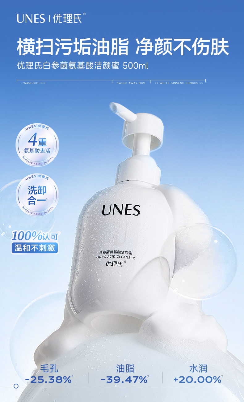 【温和清洁】白参菌氨基酸洁颜蜜深层清洁油痘肌控油洗面奶500ml