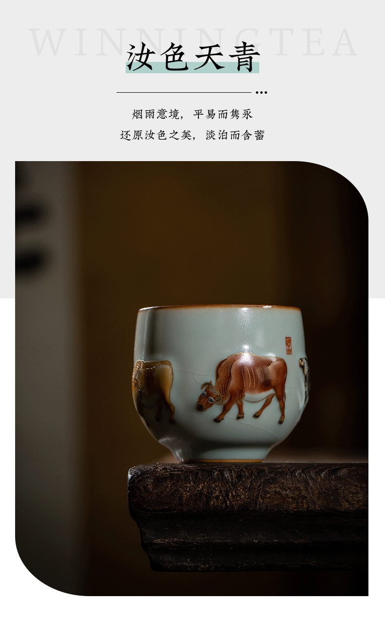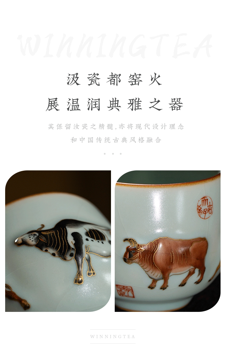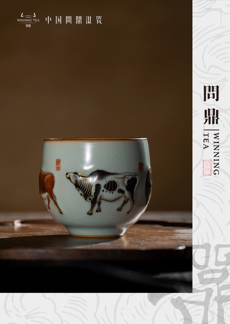 问鼎汝瓷鼎峰系列天青五彩牛图(缺货)