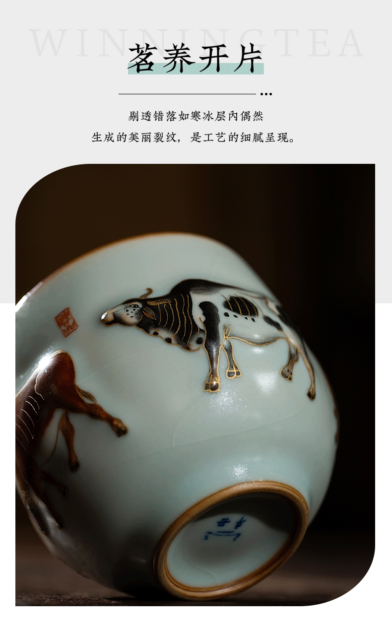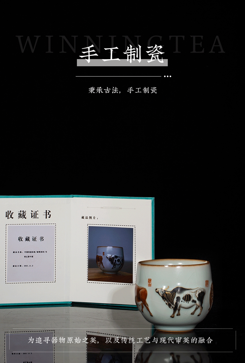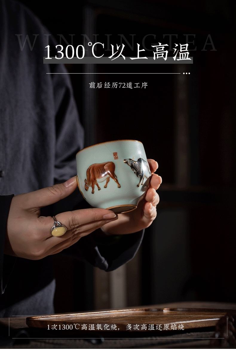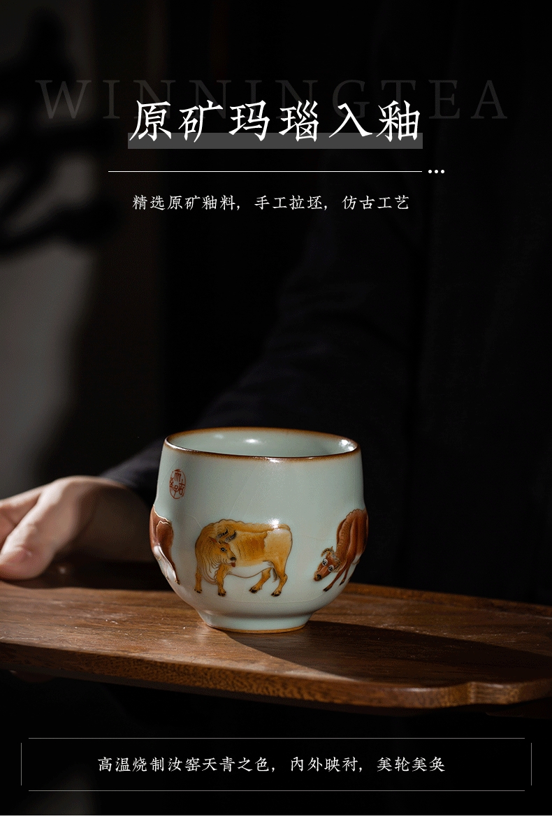 问鼎汝瓷鼎峰系列天青五彩牛图(缺货)