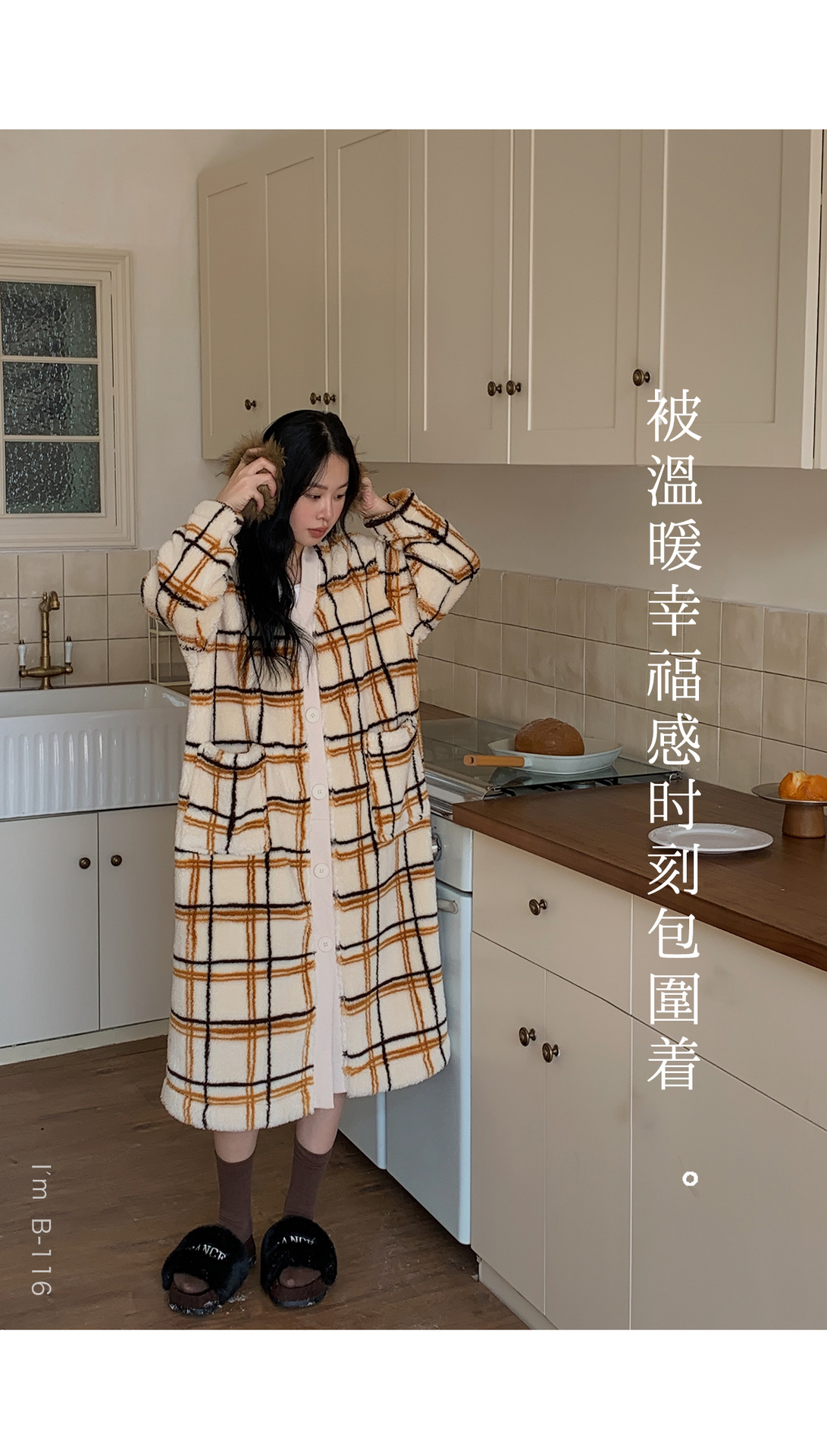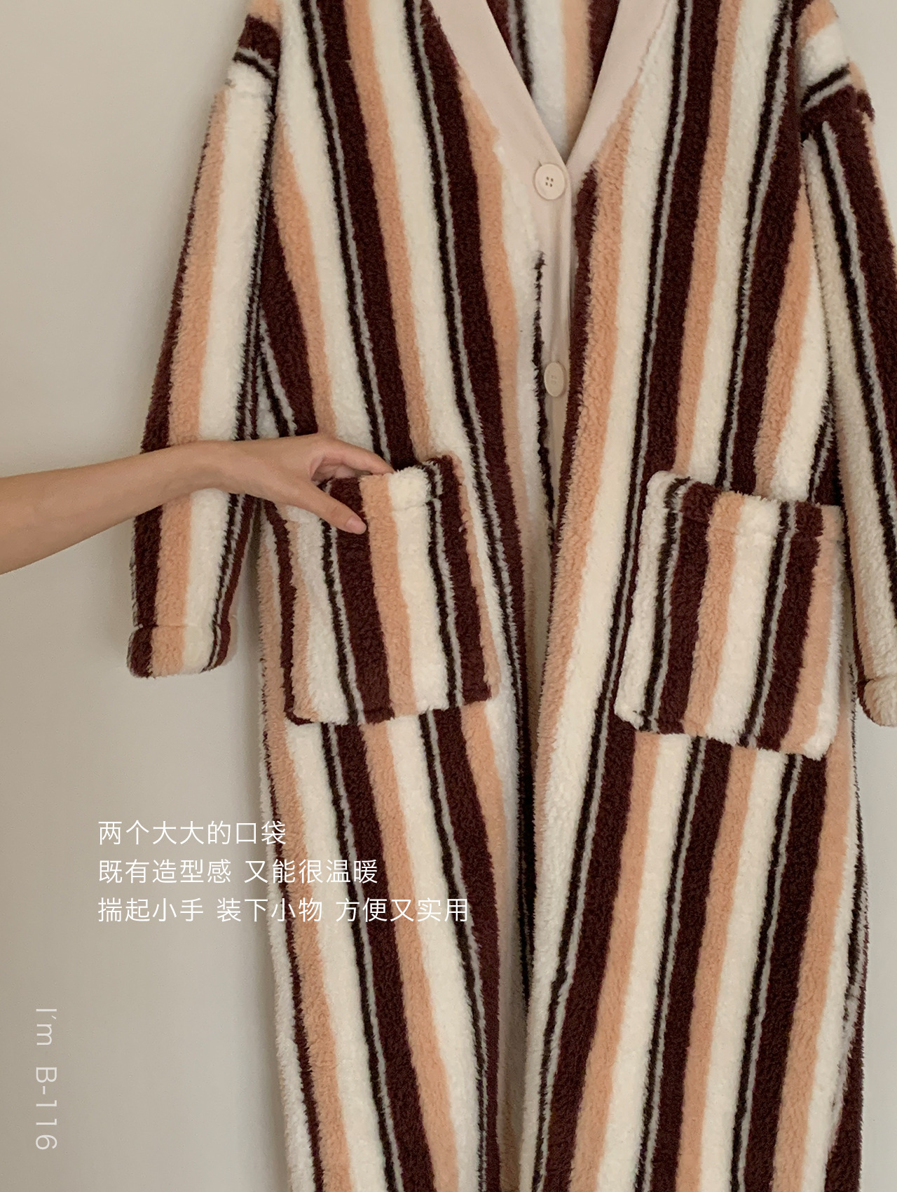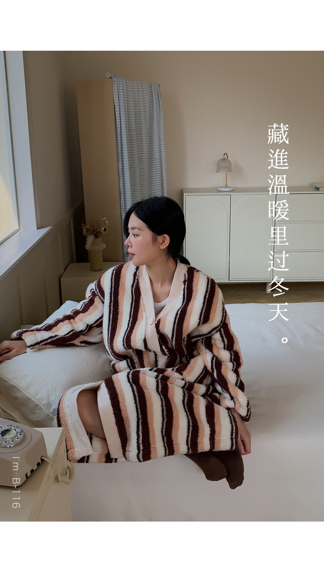 杜小宅秋冬新款睡袍女小熊环游记线条艺术家。被窝暖暖袍慵懒外套