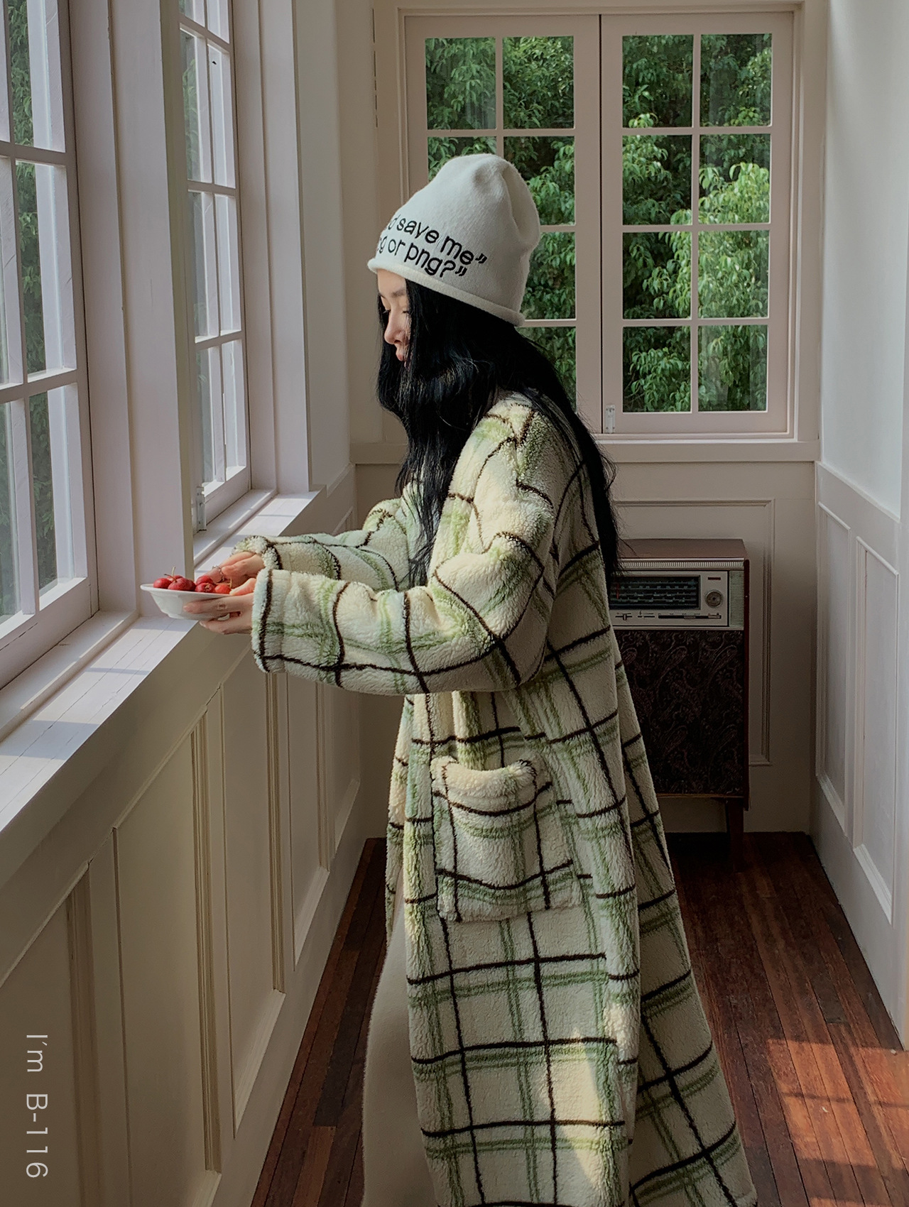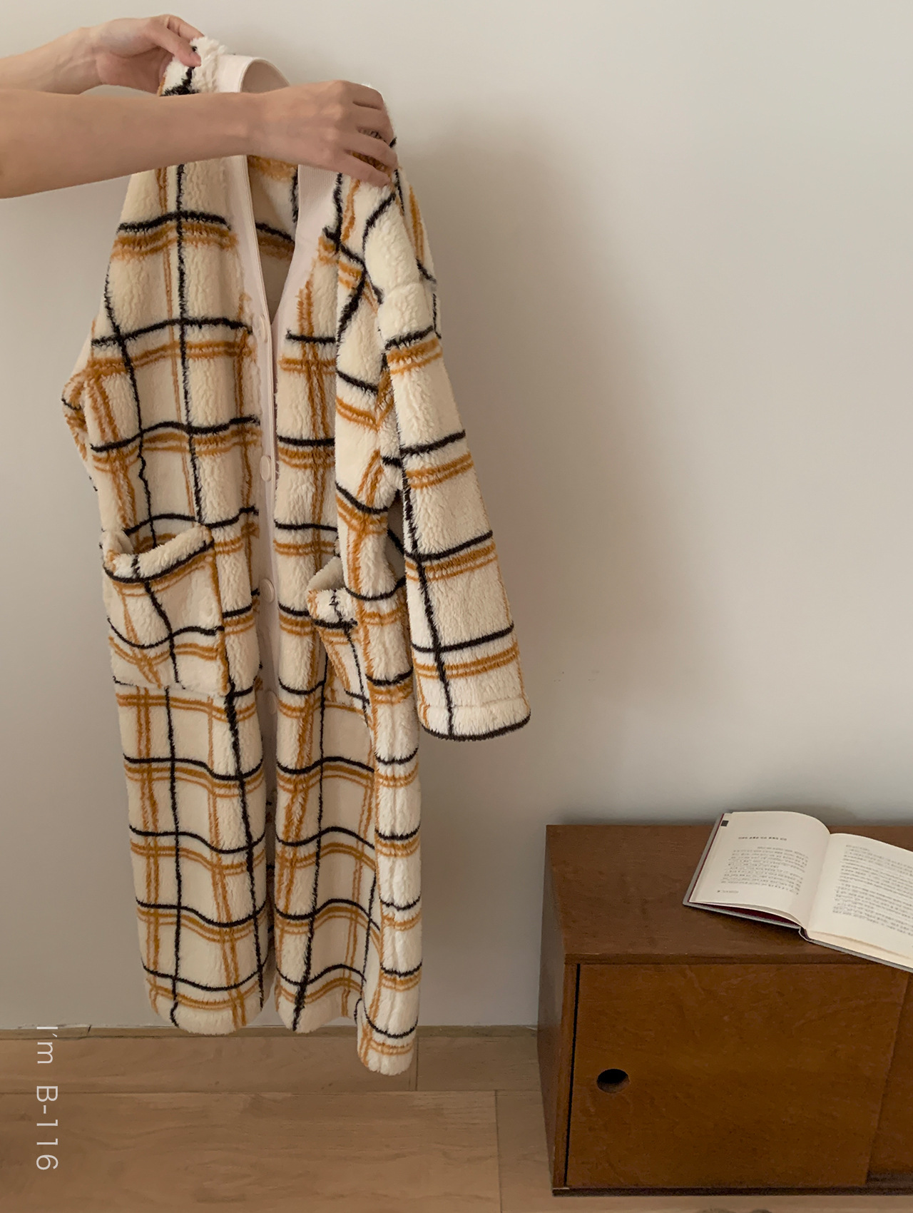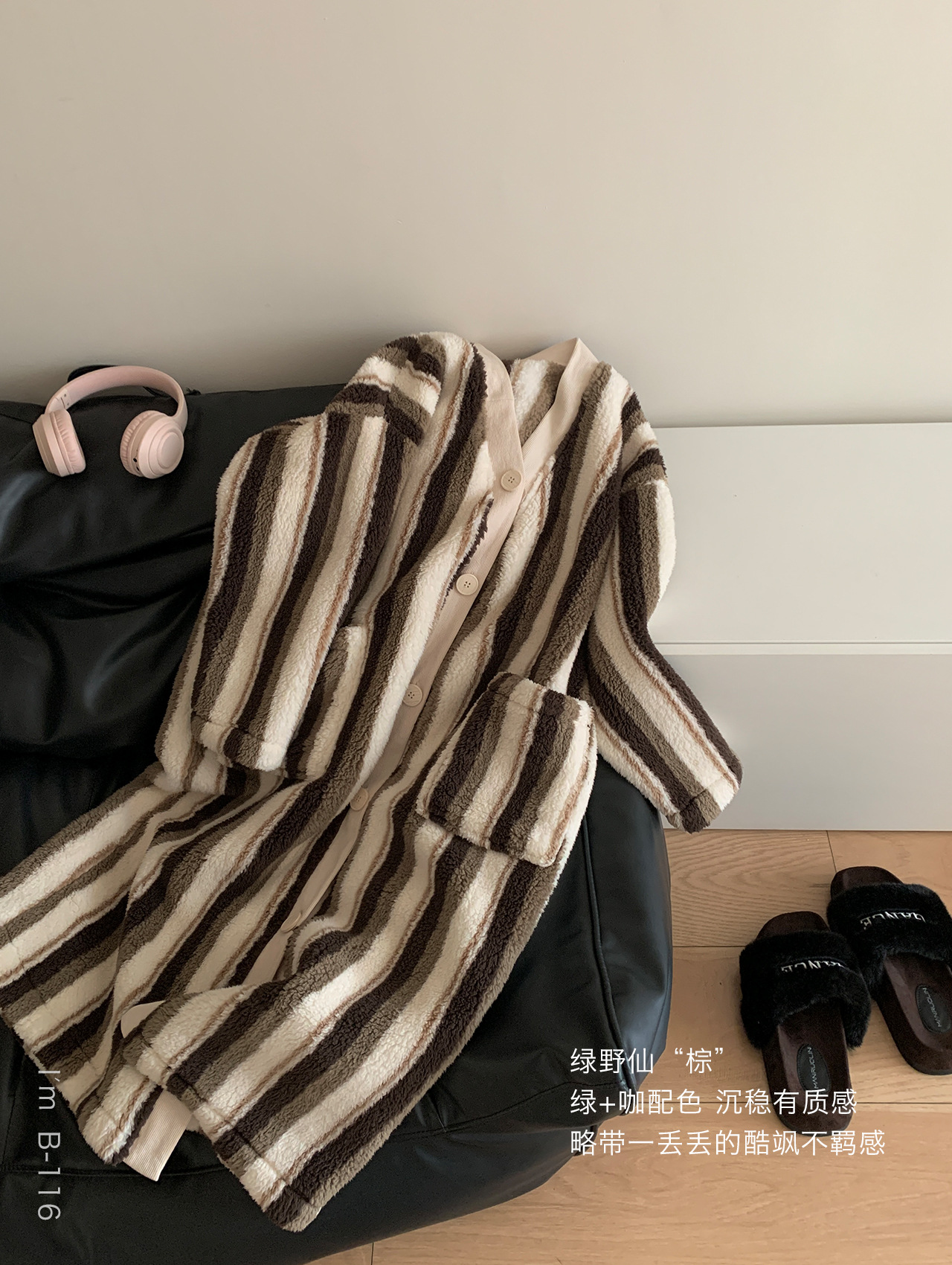 杜小宅秋冬新款睡袍女小熊环游记线条艺术家。被窝暖暖袍慵懒外套