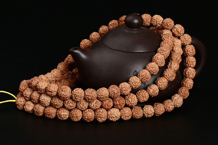 六鑫珠宝 印尼盘龙纹满肉五瓣小金刚菩提手串 姜黄皮 108颗9/10mm