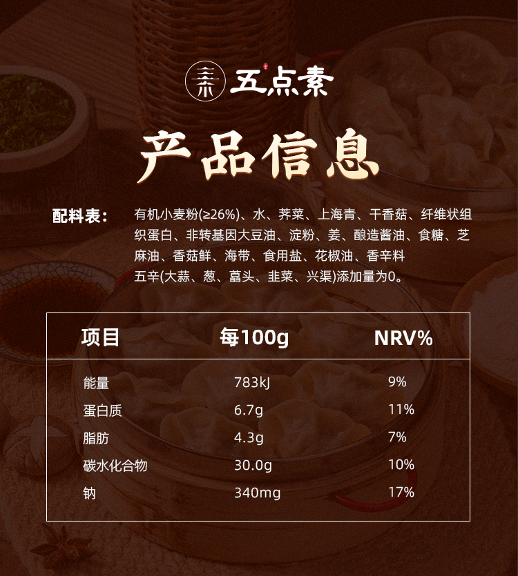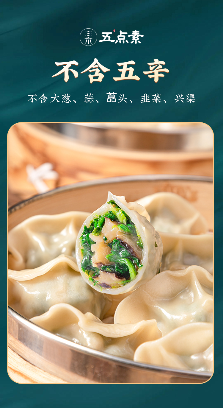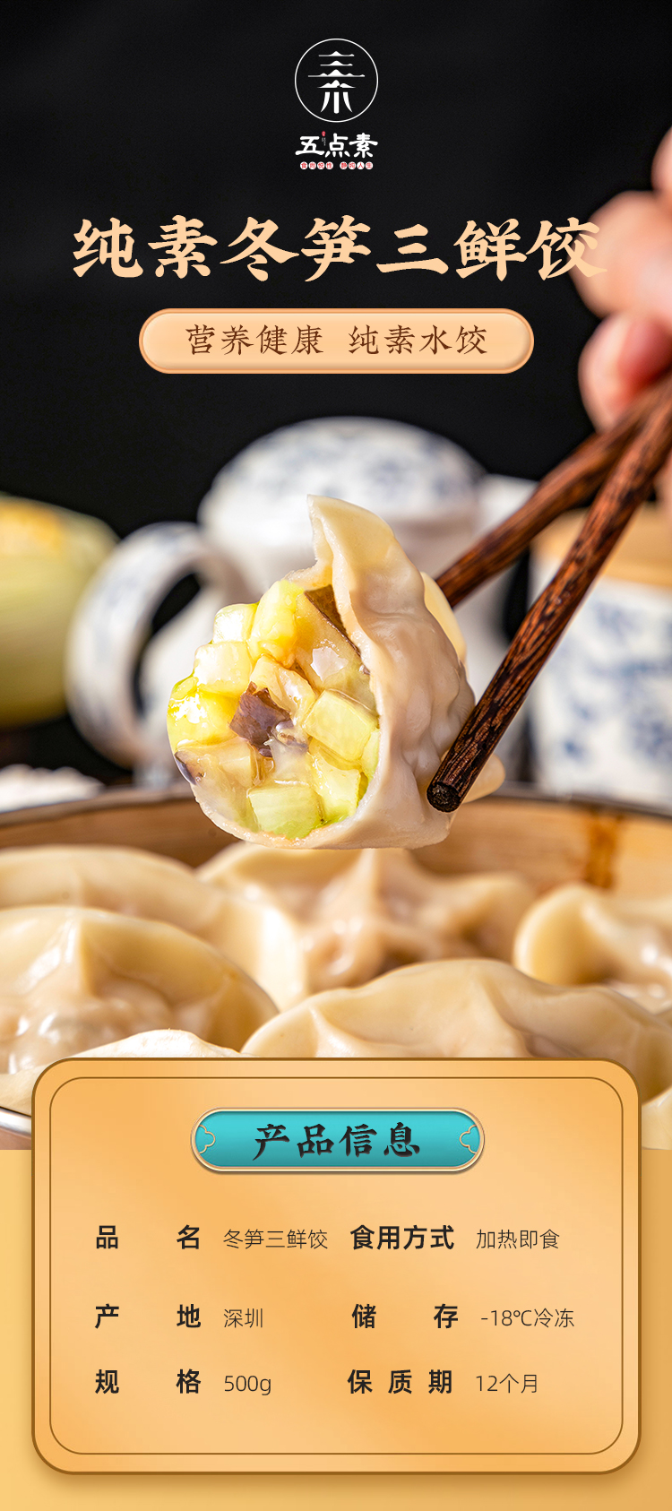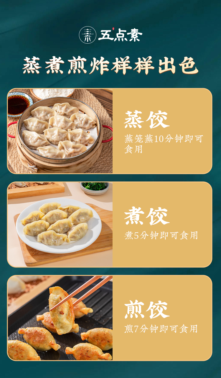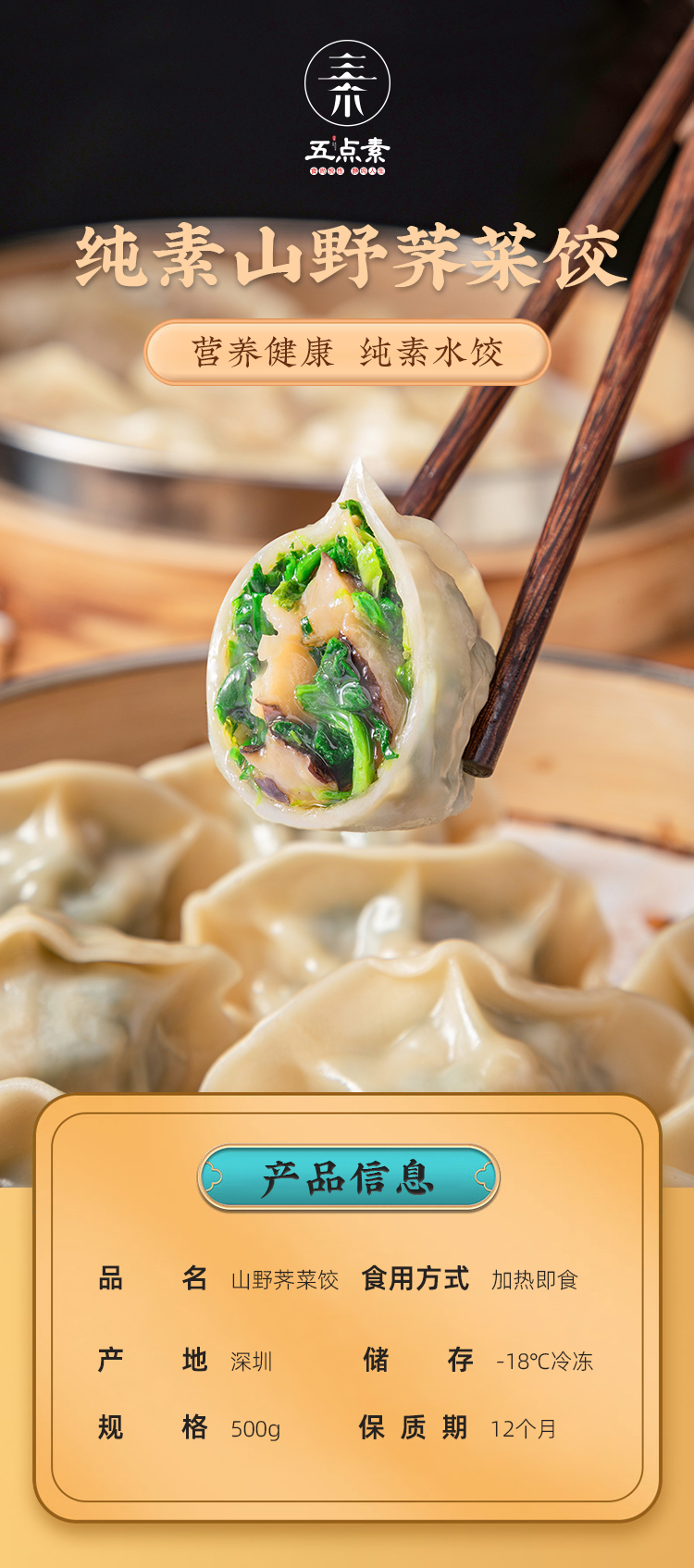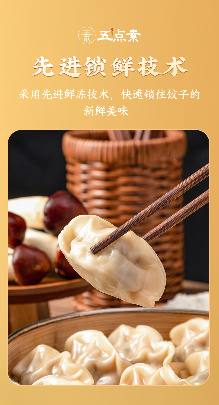 五点素 水饺饺子 翡翠时蔬/山野荠菜/山珍松茸/玉米马蹄/冬笋三鲜 500g/袋【24个/袋】