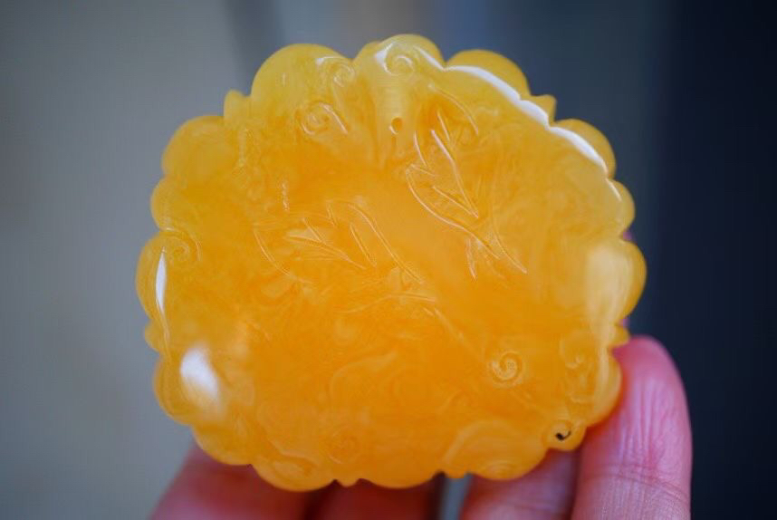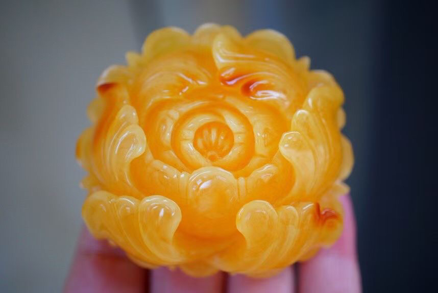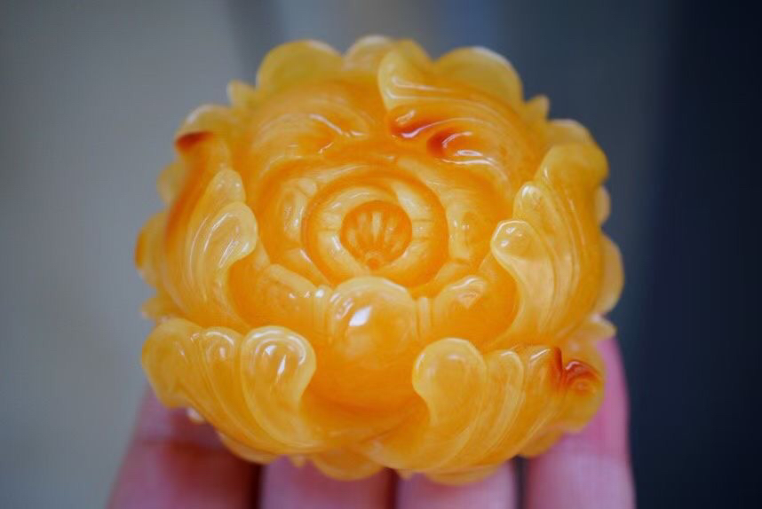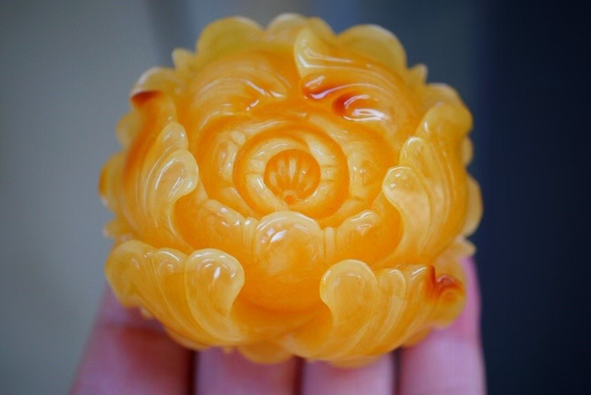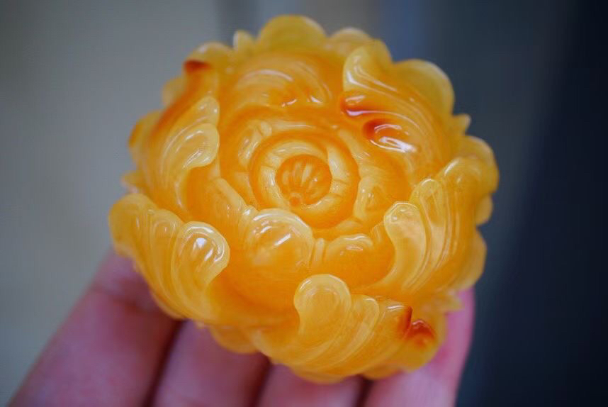 【青山特惠】精品原矿俄料焦皮料立体精工牡丹花蜜蜡吊坠,尺寸57.5-53.2-25.5mm 41.6克,m310