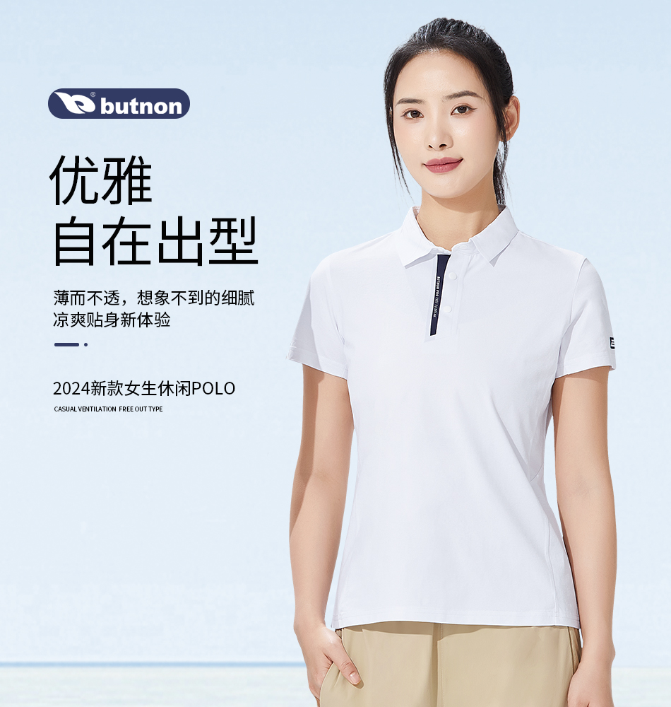 特9106巴特侬 butnon 新品女子运动t恤速干短袖有领翻领polo衫针织体恤时尚休闲运动服