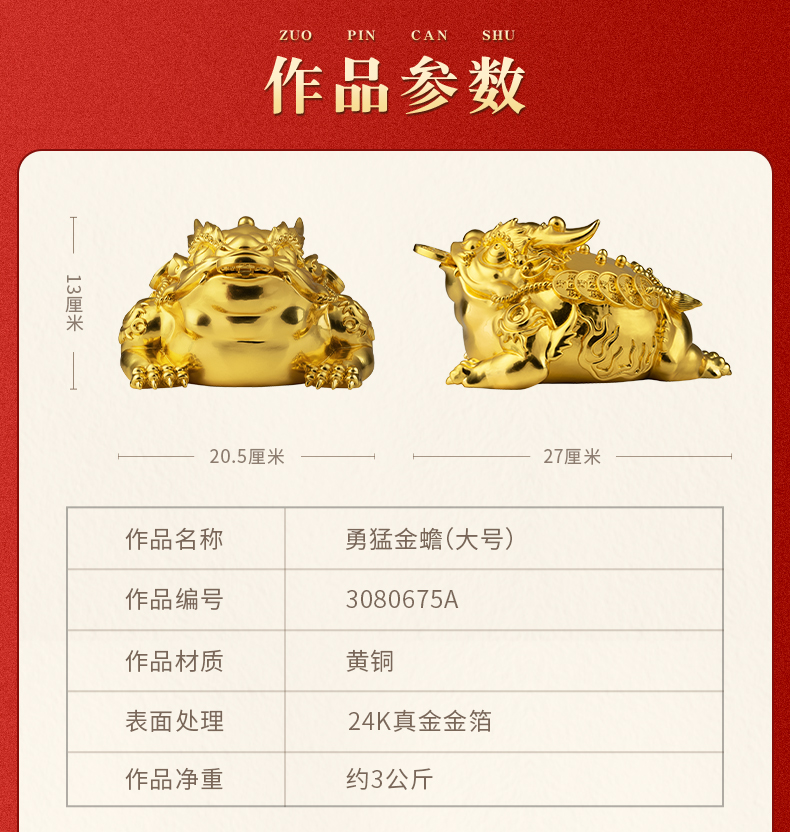 铜师傅 铜摆件《勇猛金蟾》客厅桌面玄关办公桌家居装饰品礼物