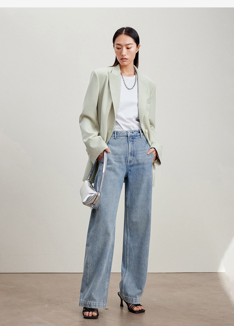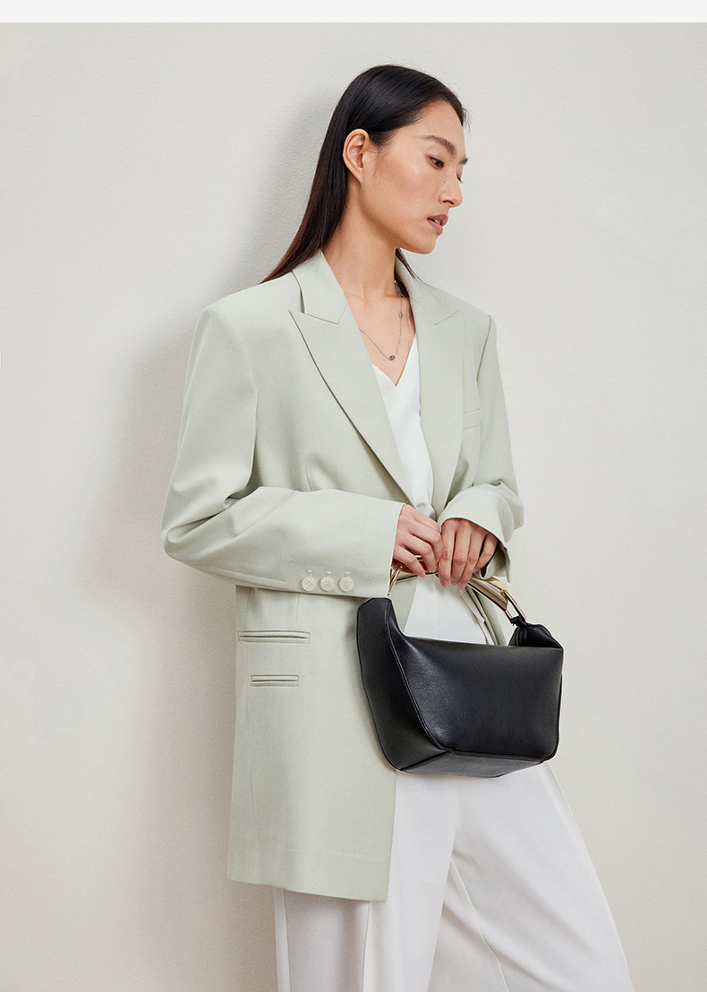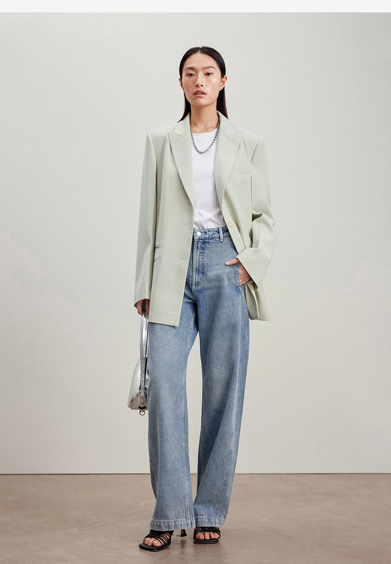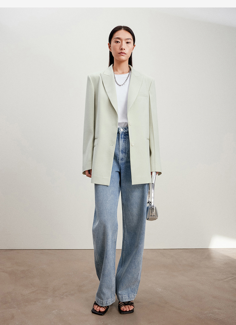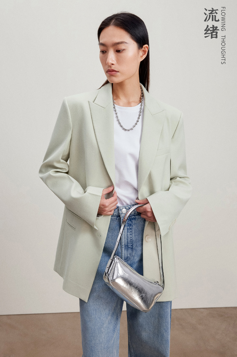 西嘉C+IMPRESS/西嘉静奢风西装外套女薄荷绿精纺羊毛设计感活页袖西服WT2401049