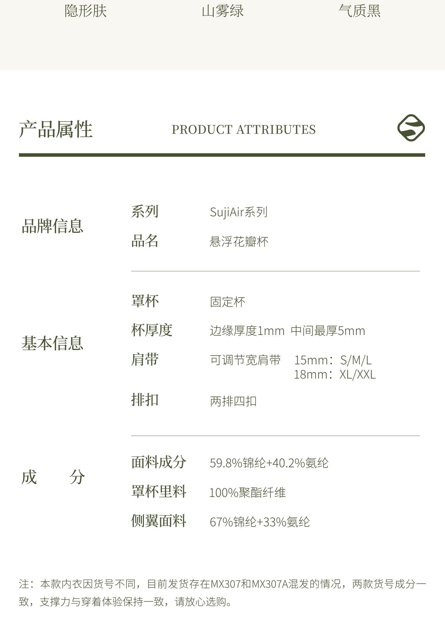 退换货规则:1.7天无理由退换货规则:品牌产品为贴身私密性衣物,务必保证所退产品吊牌水洗标齐全,无人为因素导致的破损、污渍、异味等影响二次销售的状况,否则,品牌有权不予退货退款,退货请将赠品一同寄回。内裤不支持7天无理由退换。换货差价将遵循多退少补的原则。