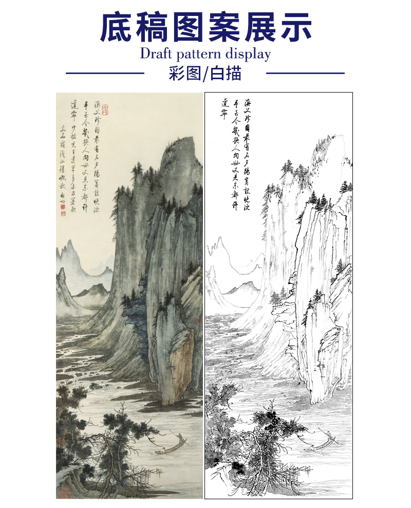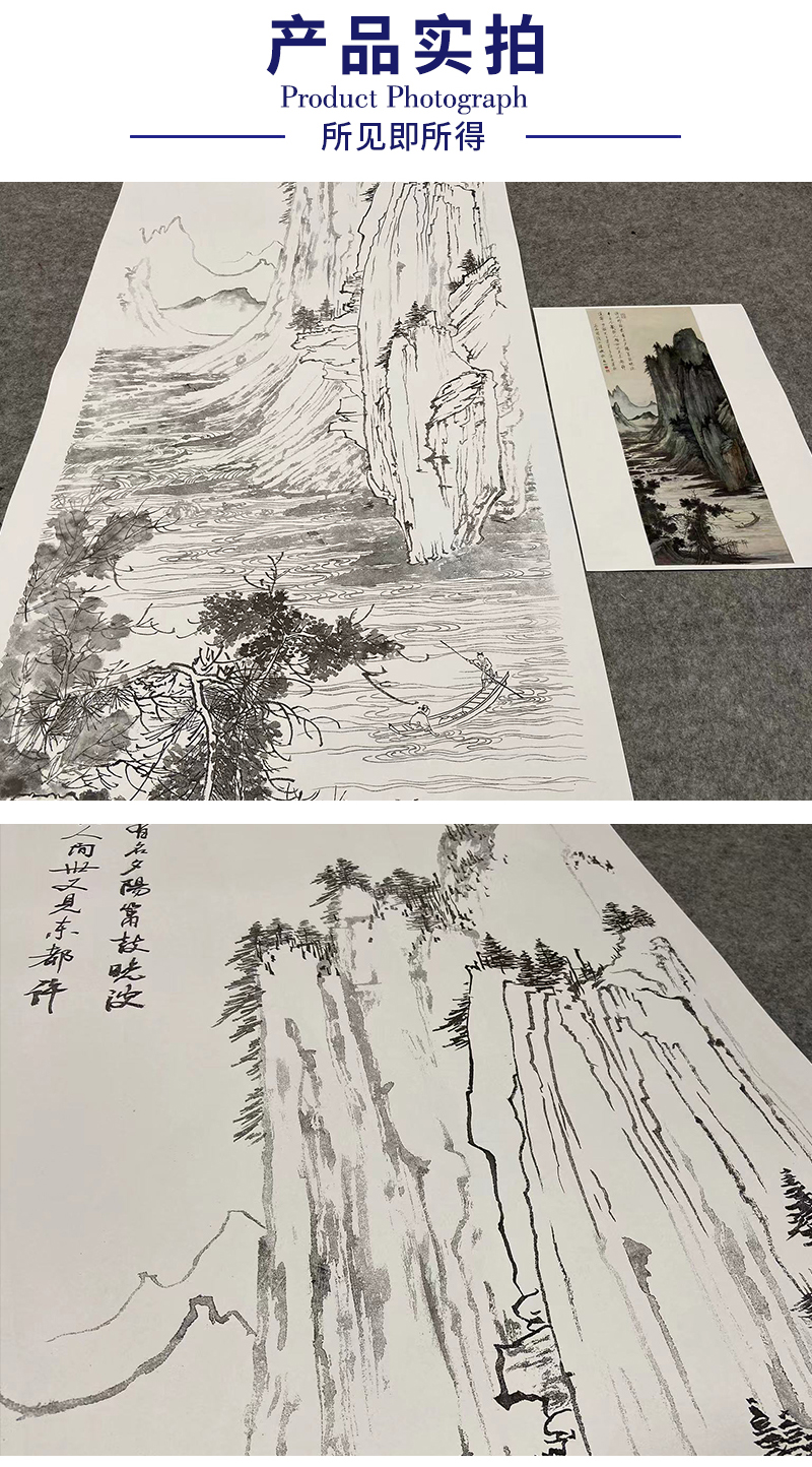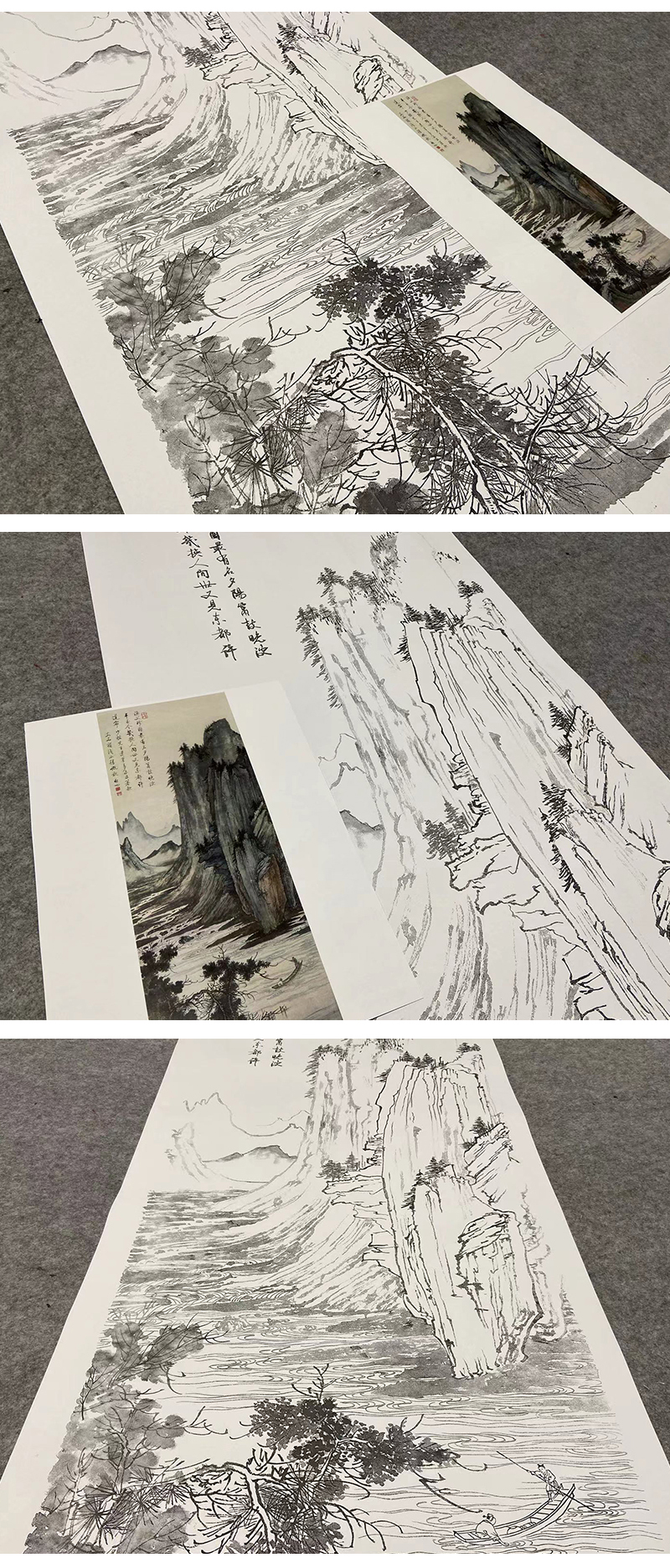陈少梅竖幅工笔山水白描底稿-《溪山舟渡》-多种白描尺寸可选-CR37