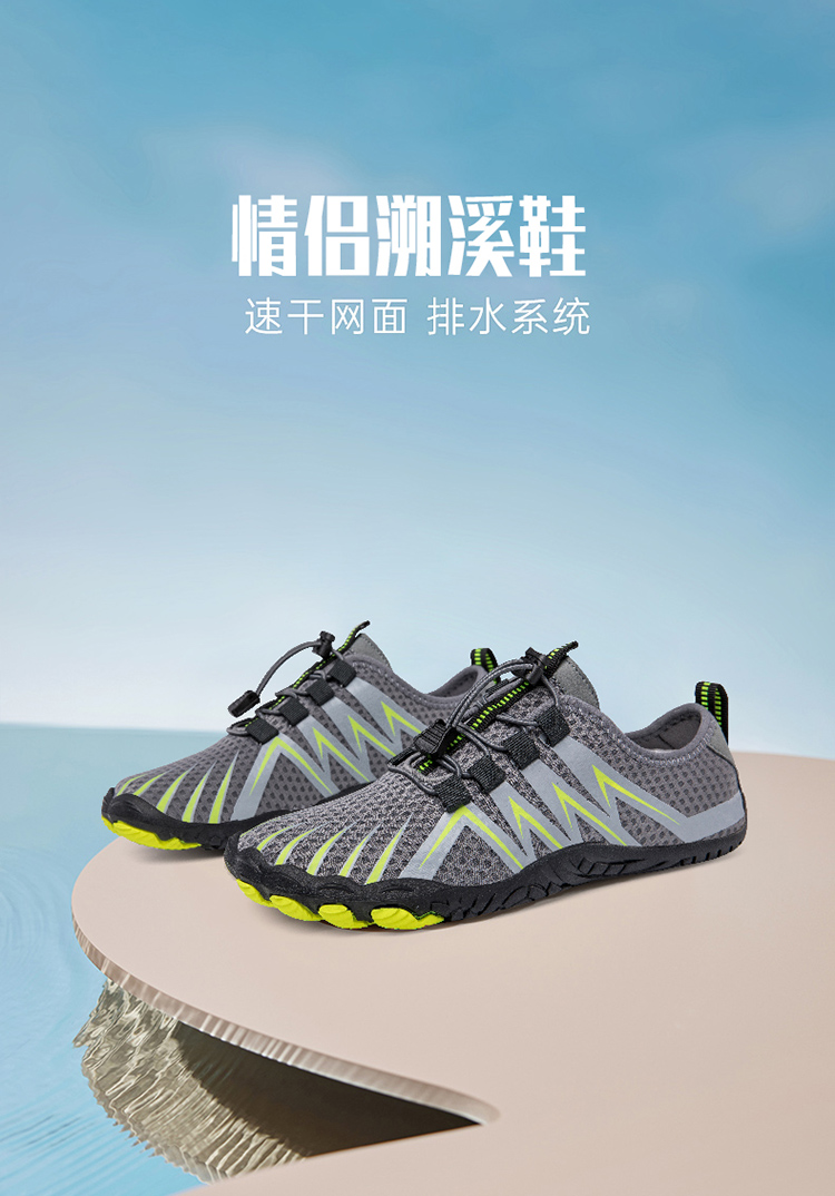 【轻便透气 柔软舒适】顺驰户外情侣款溯溪鞋 橡胶鞋底 排水孔设计 便携式抽绳系带 柔软易弯曲 优选