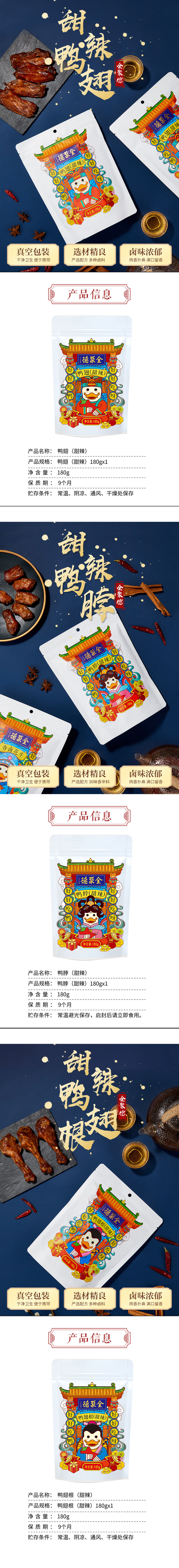 【全聚德甜辣鸭零食组合】4种产品组合装(鸭锁骨*1 鸭脖*1 鸭翅根*1 鸭翅*1)