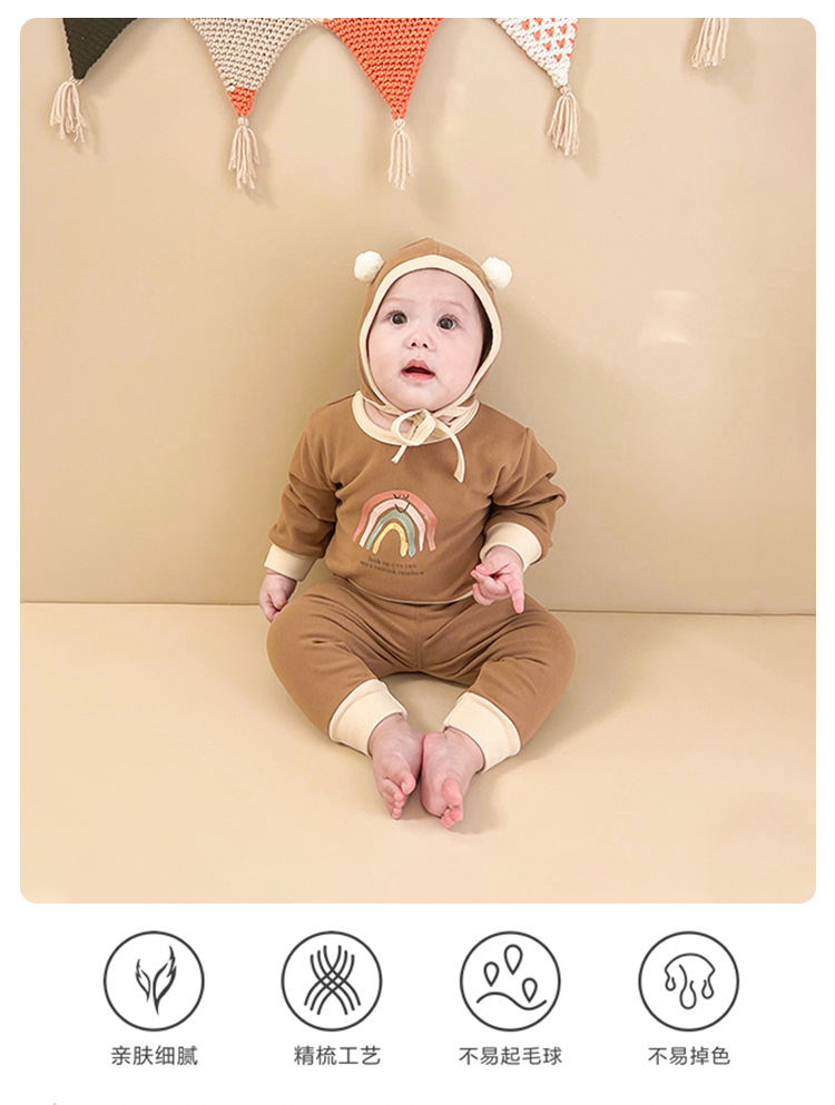 【德绒保暖套装!细腻舒适】婴儿秋冬两件套男女宝宝,冬款秋衣打底包屁衣套装,面料舒适保暖性好,穿着不闷热lm