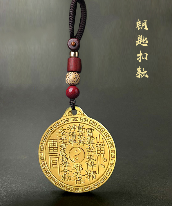 太清黄铜山鬼八卦九字真言吊坠