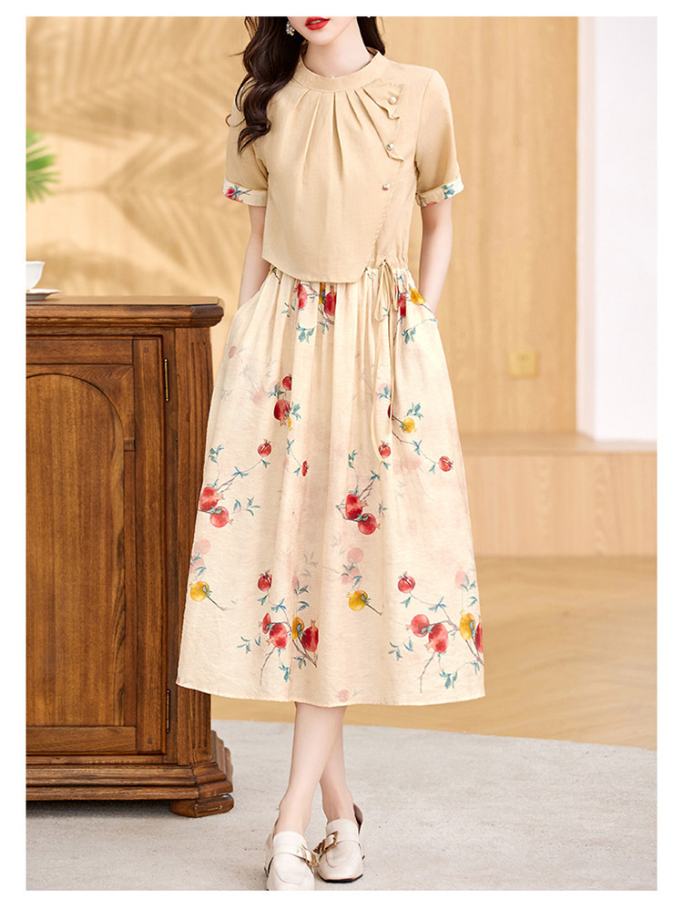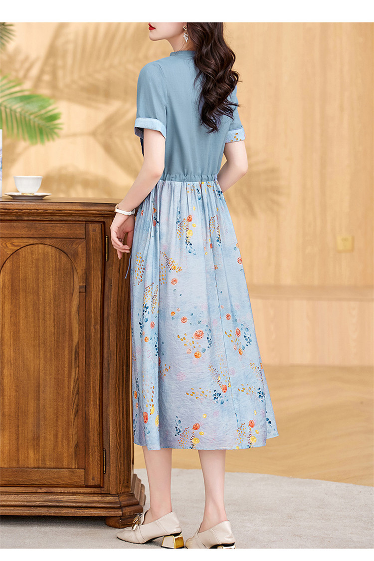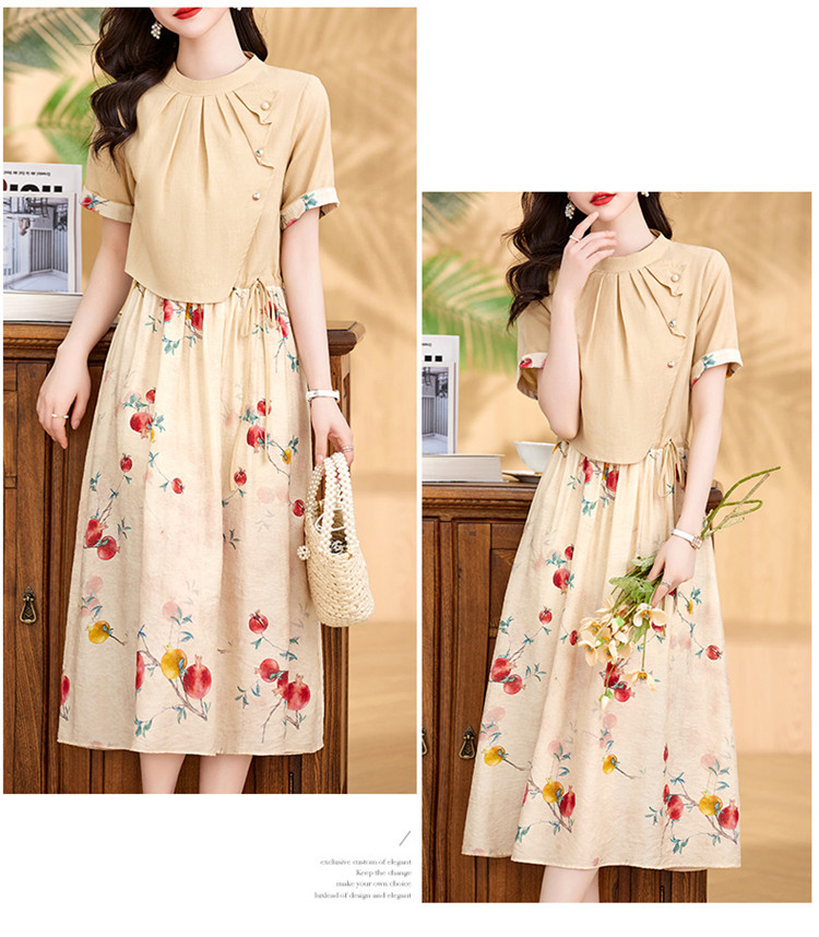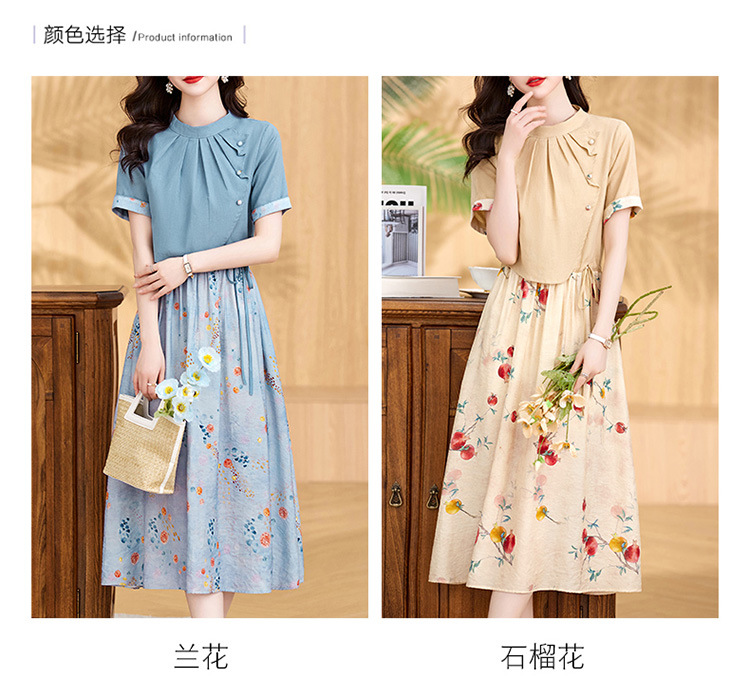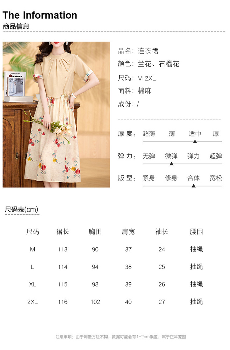 气质温柔风连衣裙,夏新款抽绳收腰显瘦女神范时尚棉麻裙子HR-WX208-19