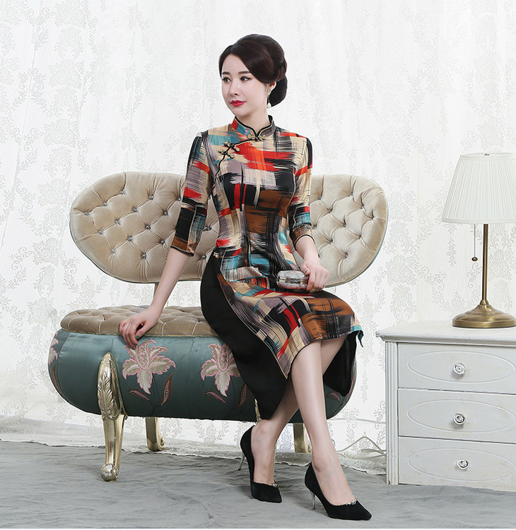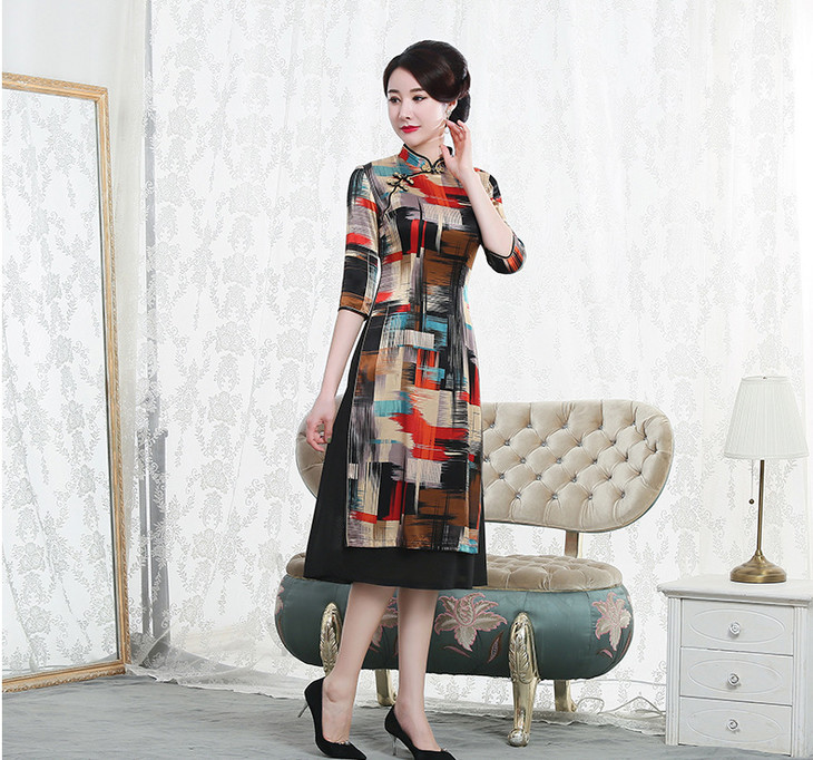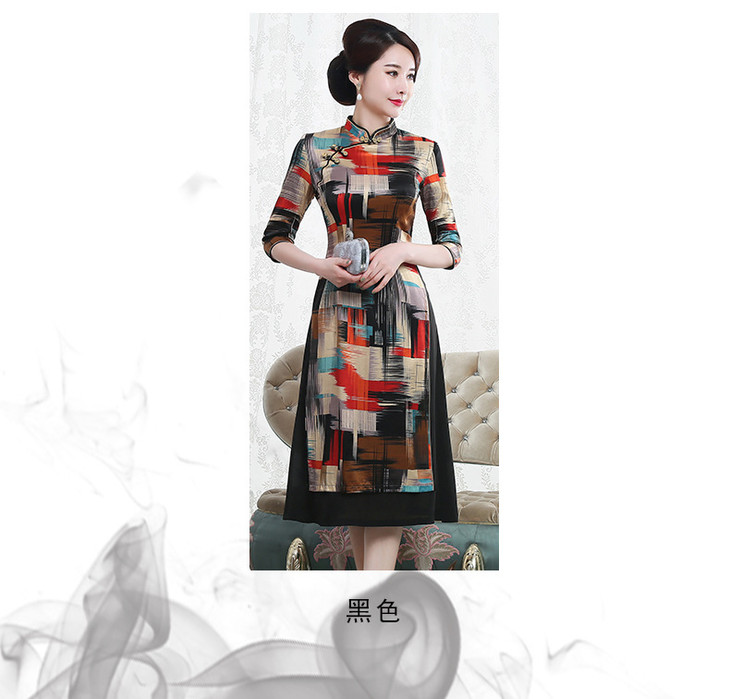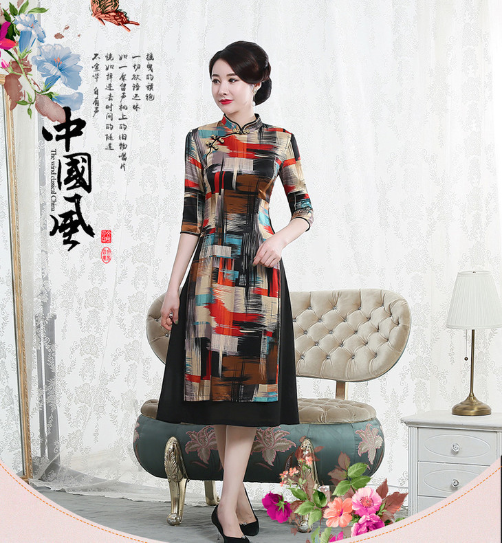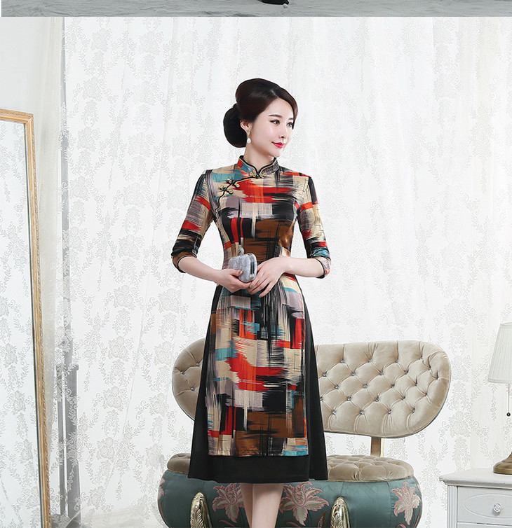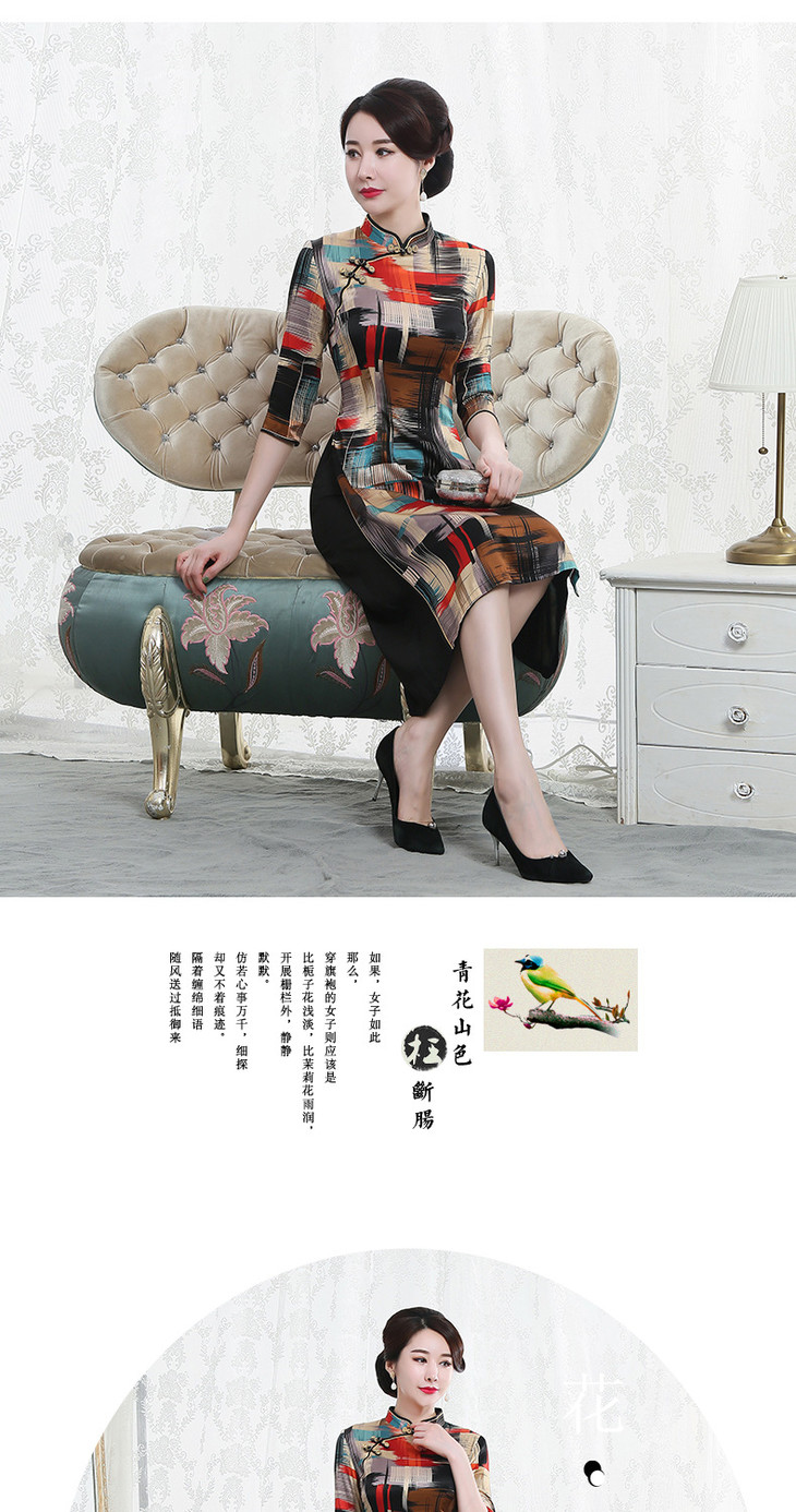 HYX-6366时尚修身改良复古风奥黛真丝旗袍