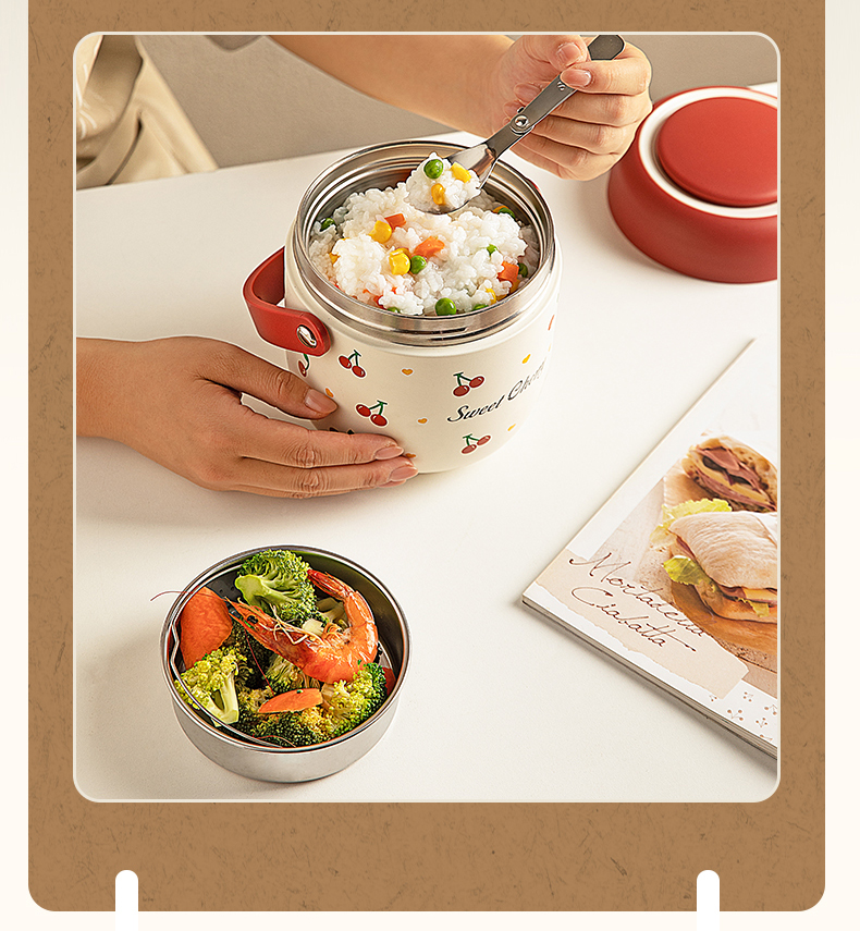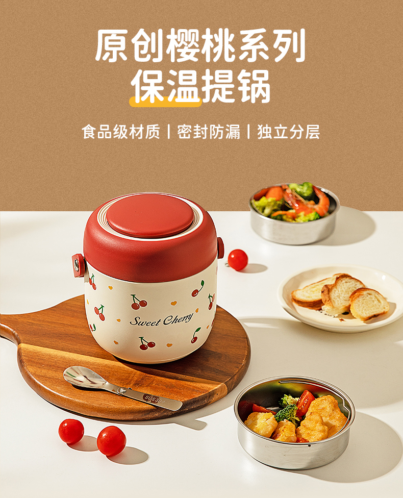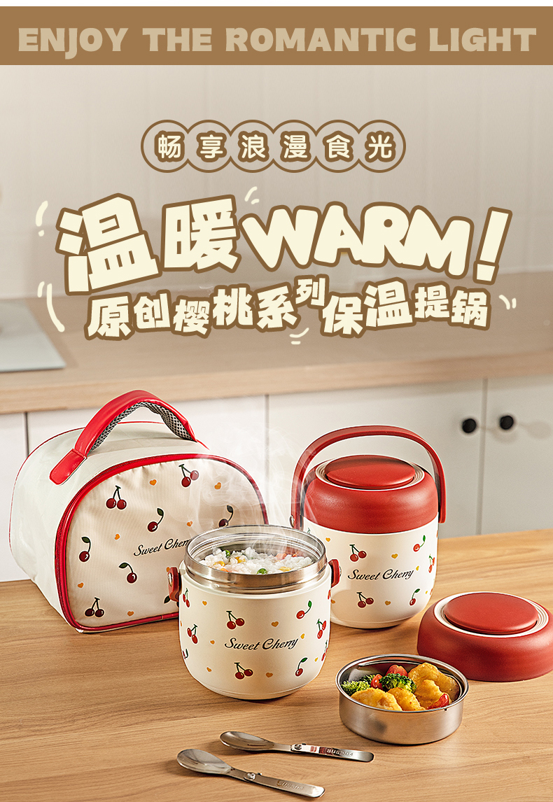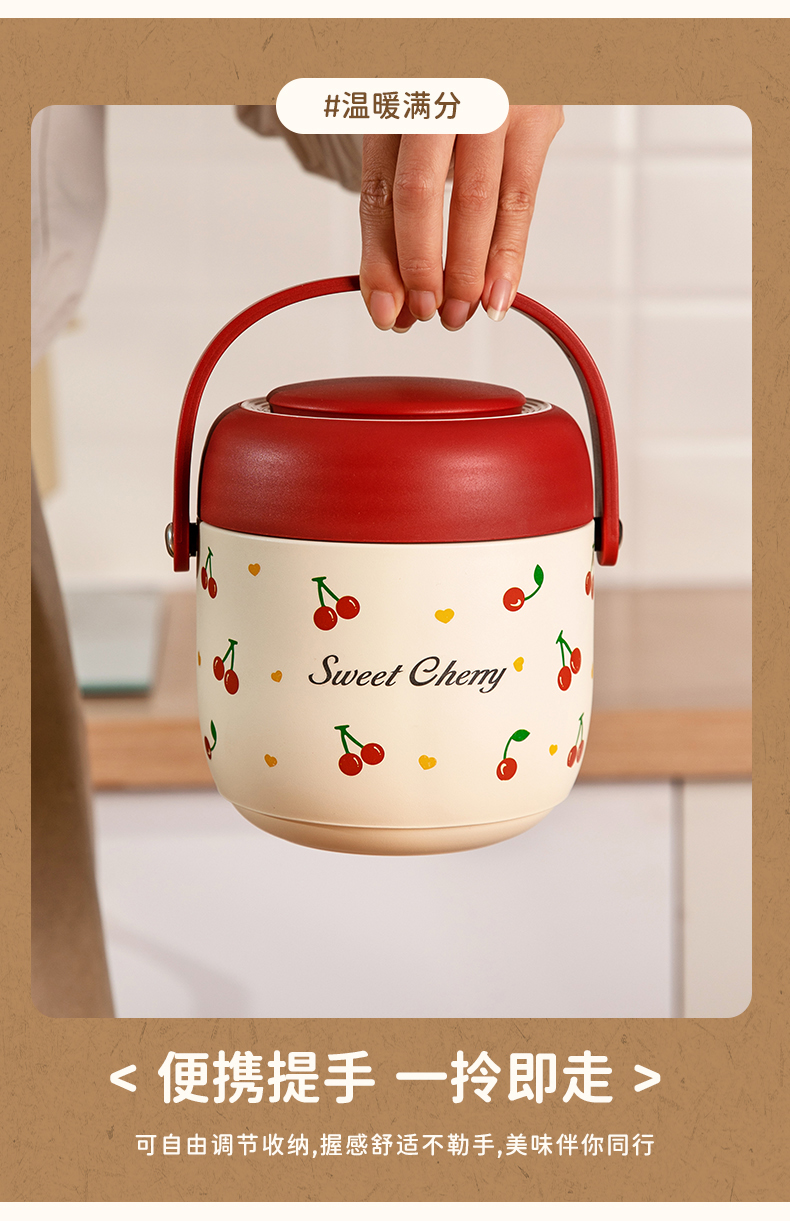 摩登主妇24小时不锈钢保温饭盒冬季便携学生上学专用樱桃保温桶