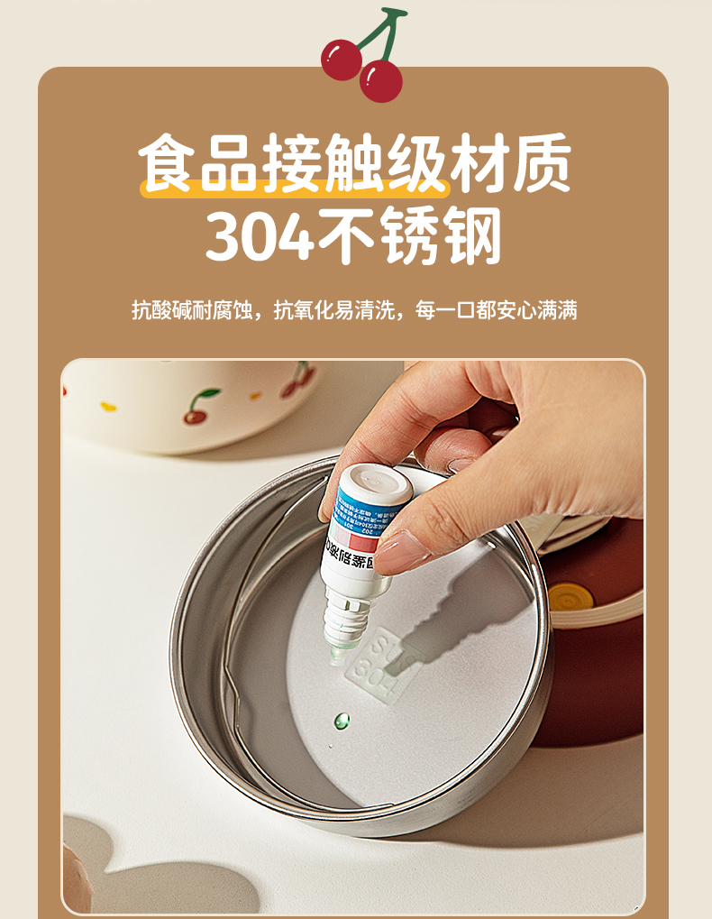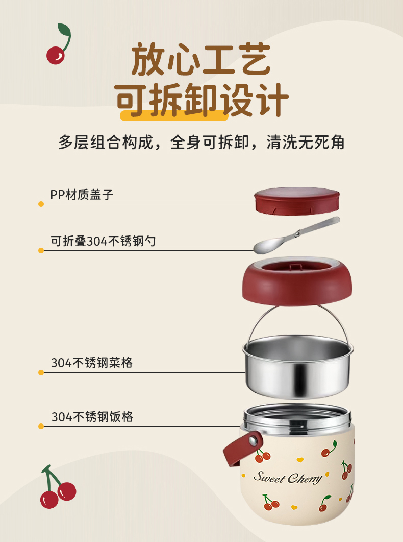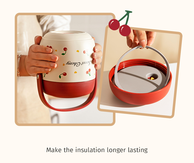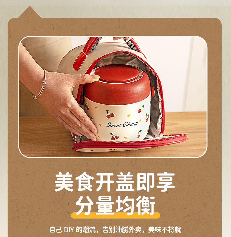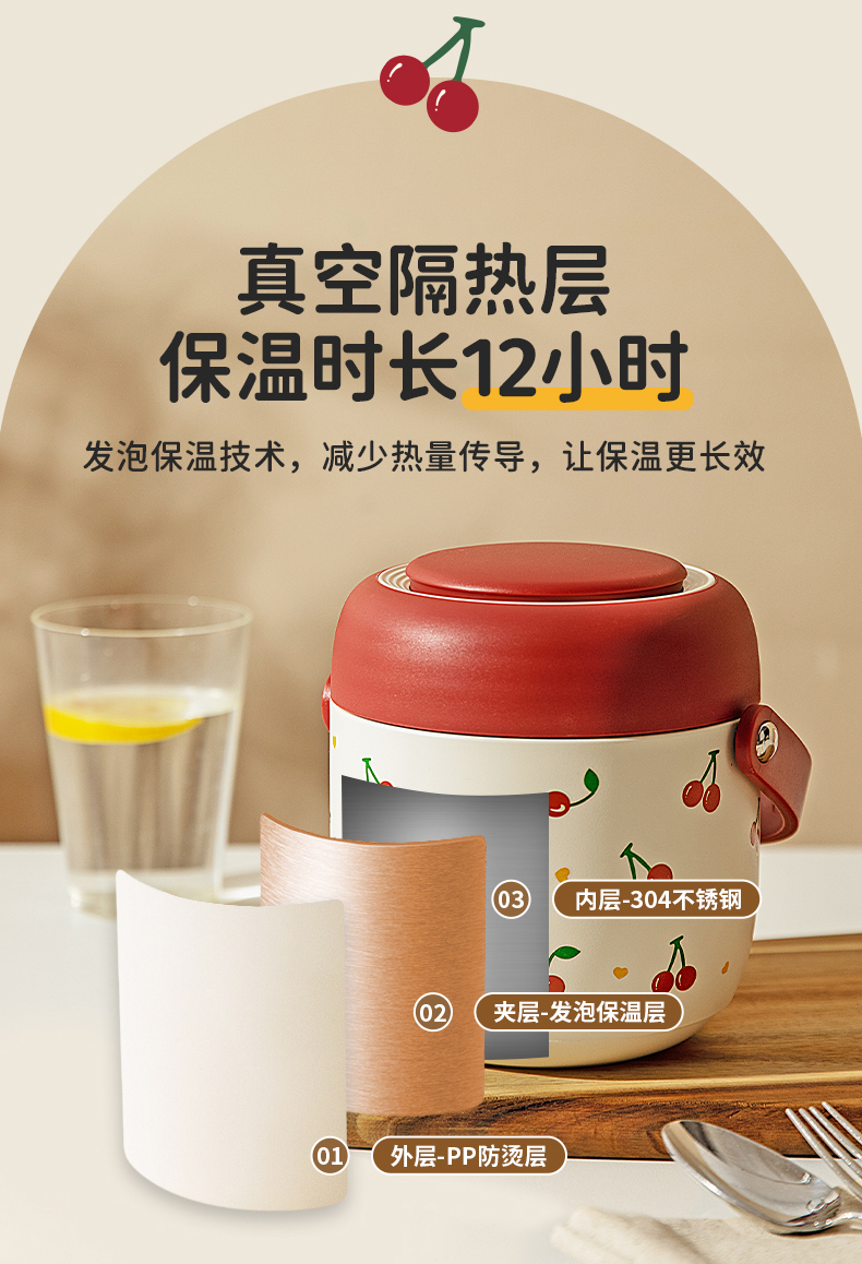 摩登主妇24小时不锈钢保温饭盒冬季便携学生上学专用樱桃保温桶