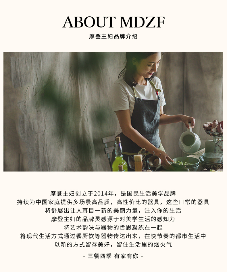 - 摩登主妇的创始人娜娜,是一个普通的80后妈妈,因为一个简单而执着的想法,要让“中国制造”的优质商品走进国内主妇们的生活,摩登主妇的品牌页由此而来。