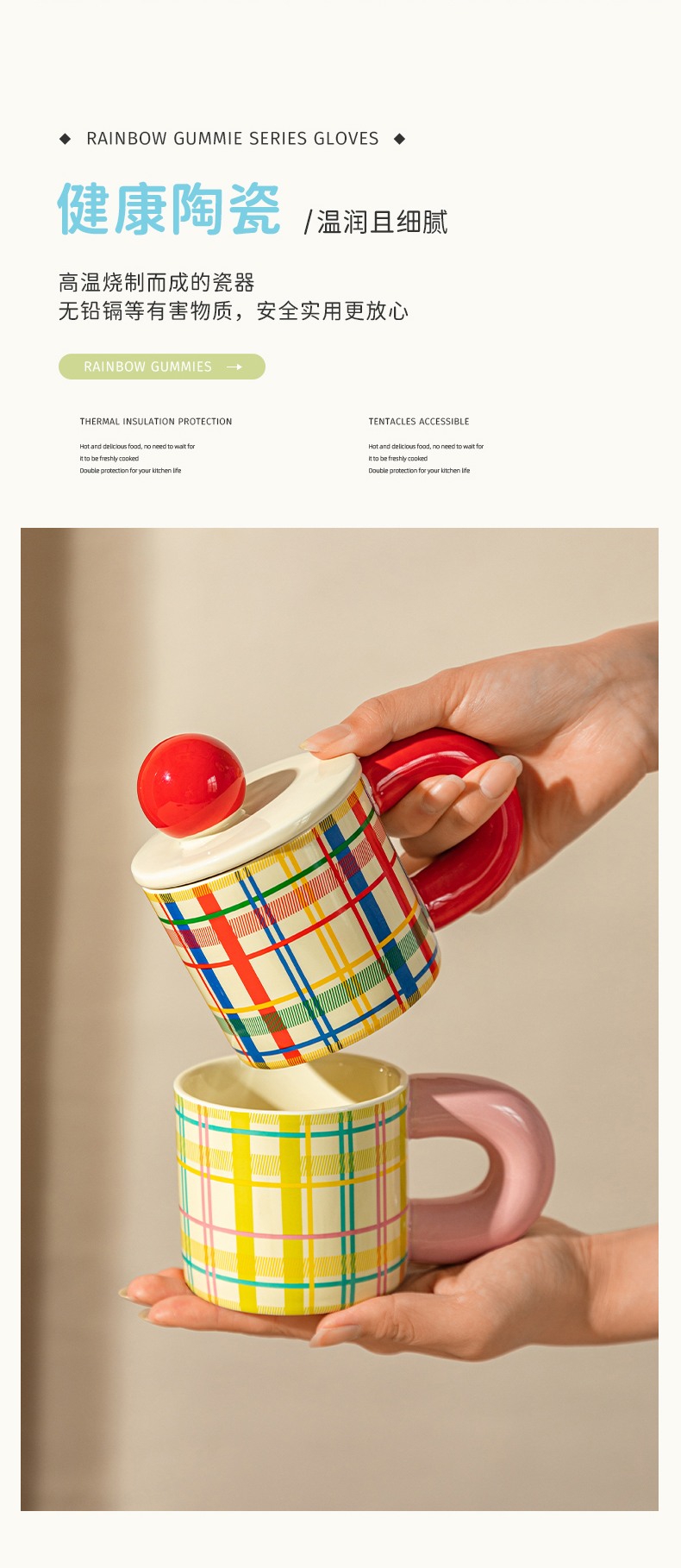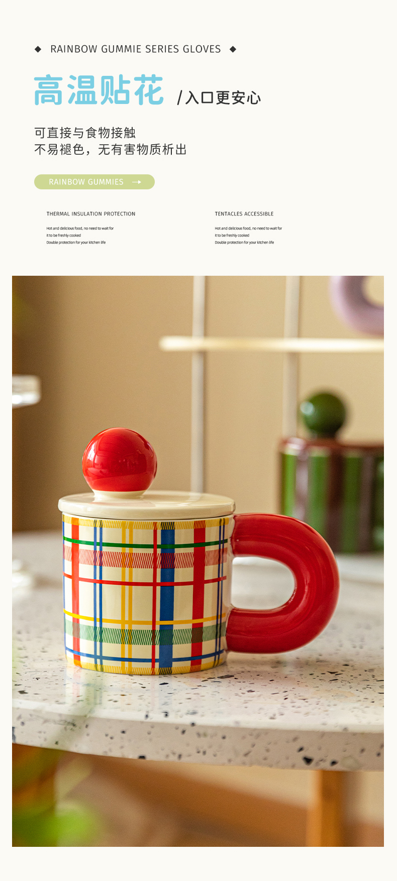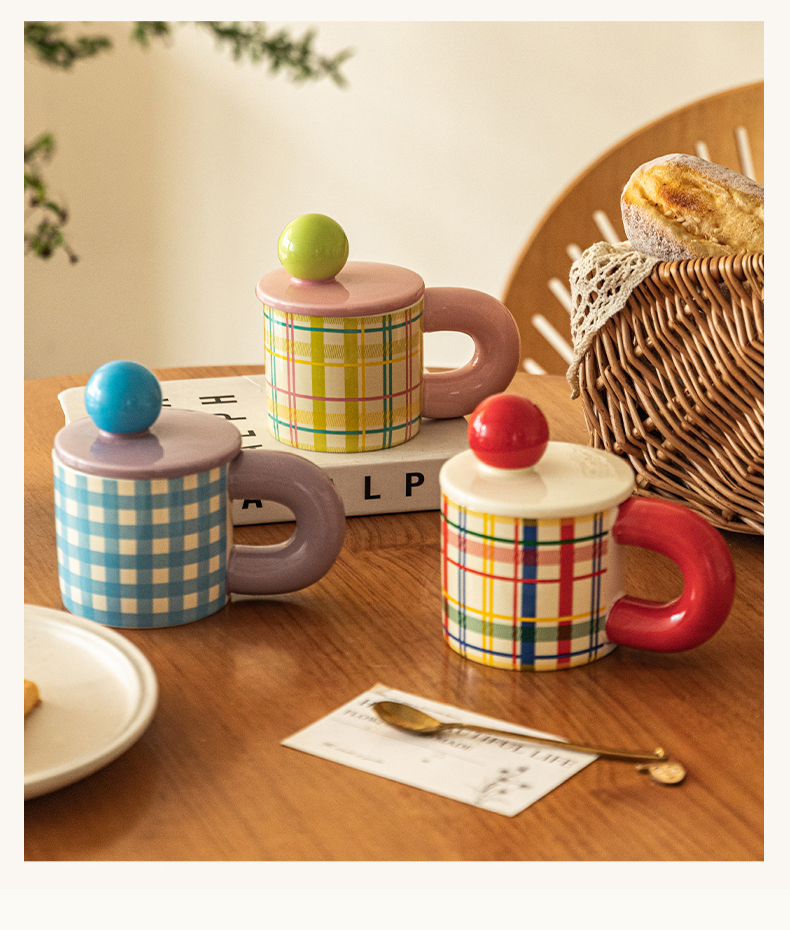 摩登主妇格纹马克杯带盖杯子陶瓷杯家用喝水杯办公室早餐杯冲泡杯