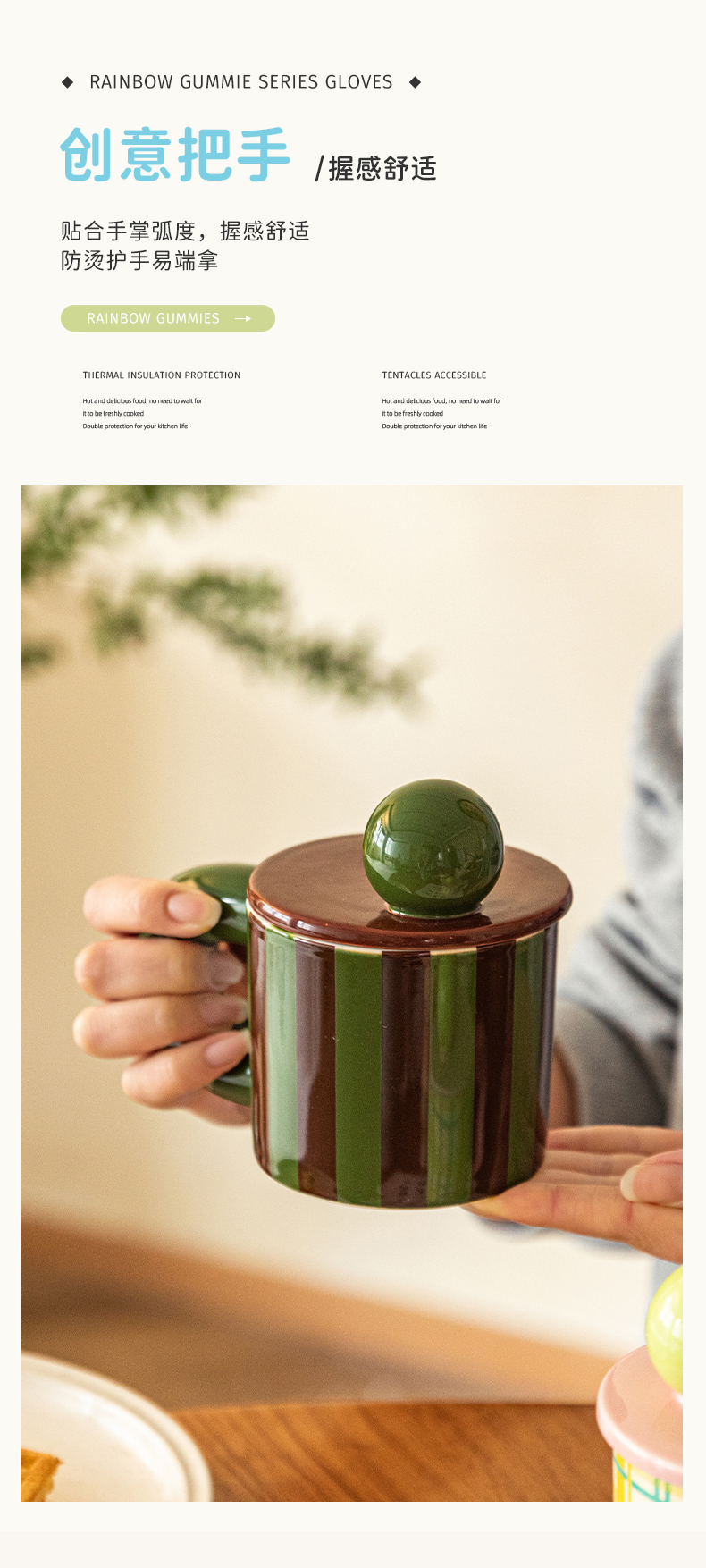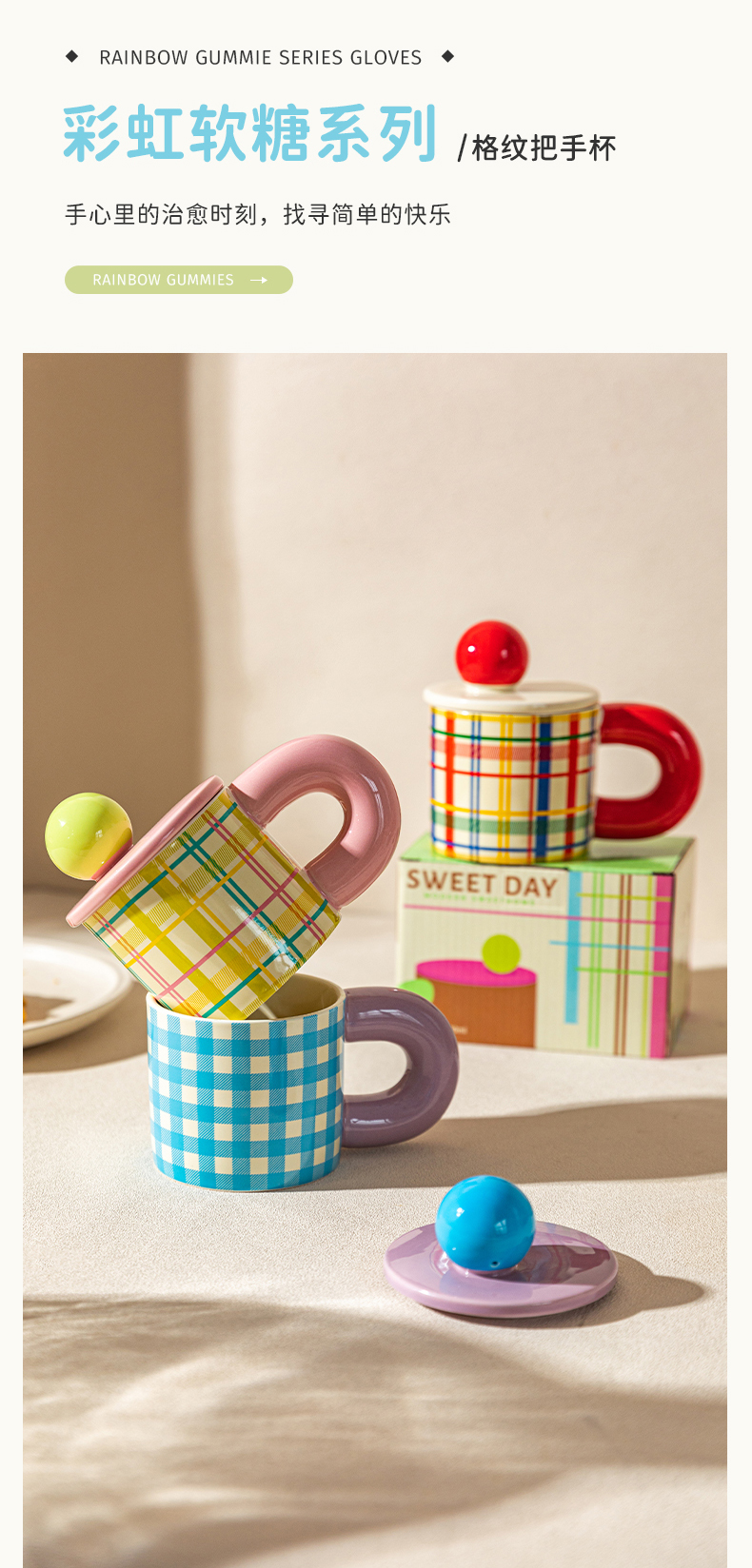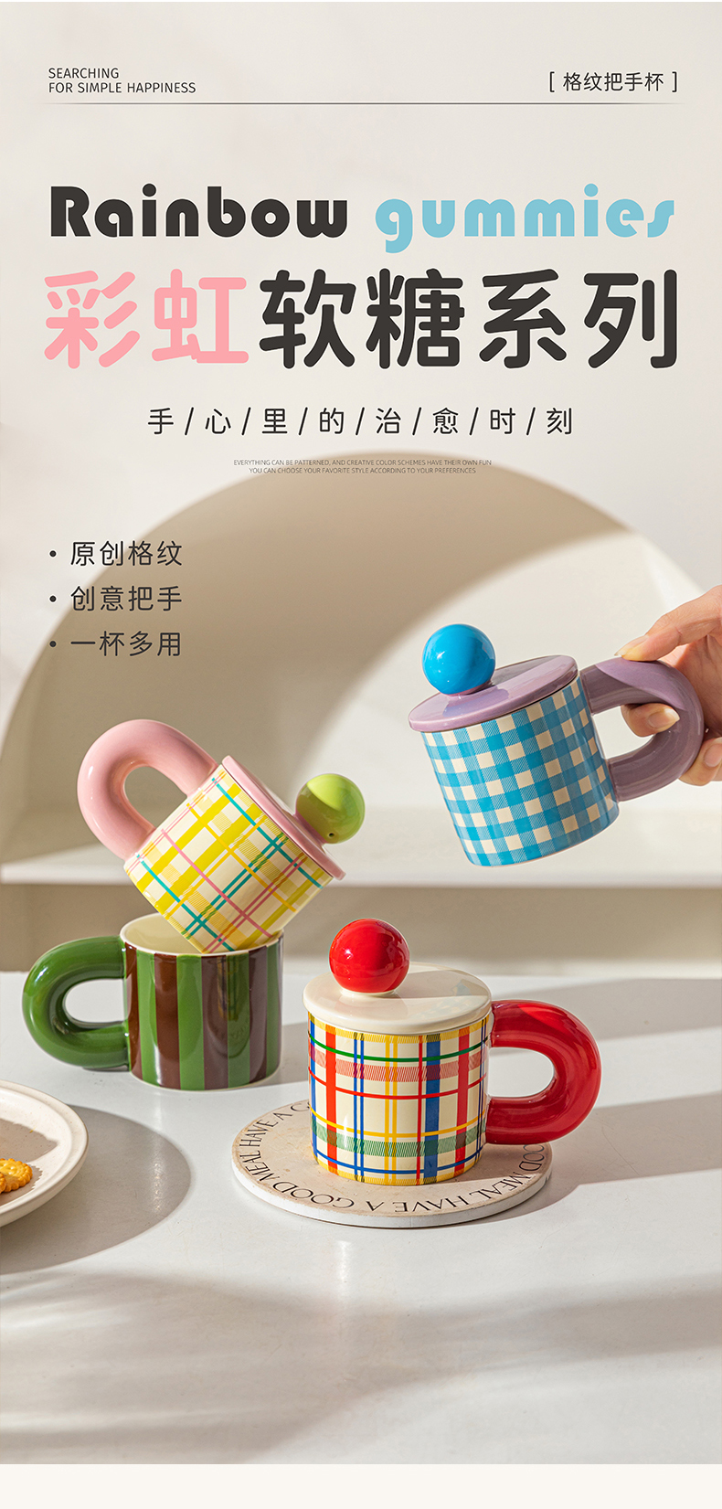 摩登主妇格纹马克杯带盖杯子陶瓷杯家用喝水杯办公室早餐杯冲泡杯
