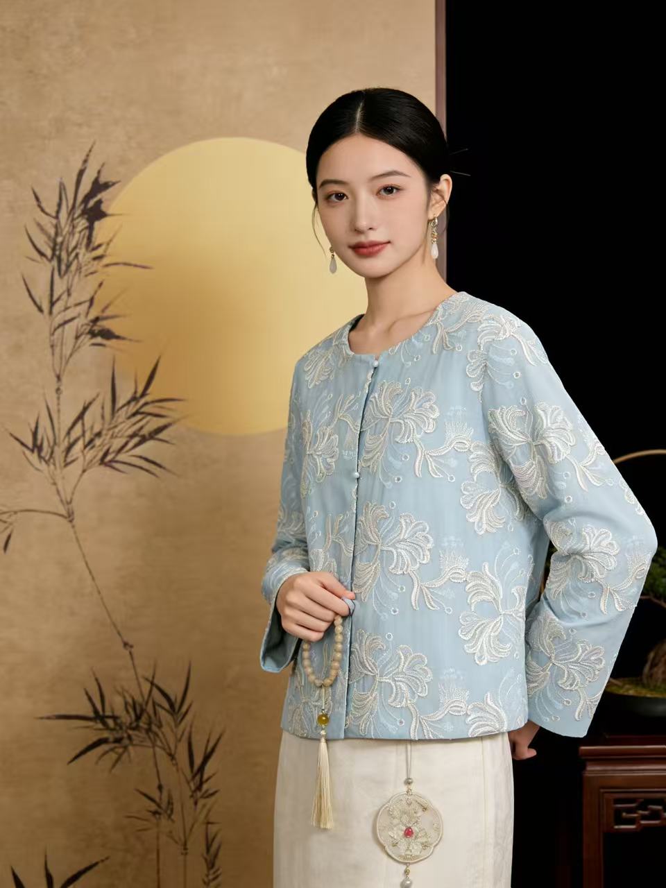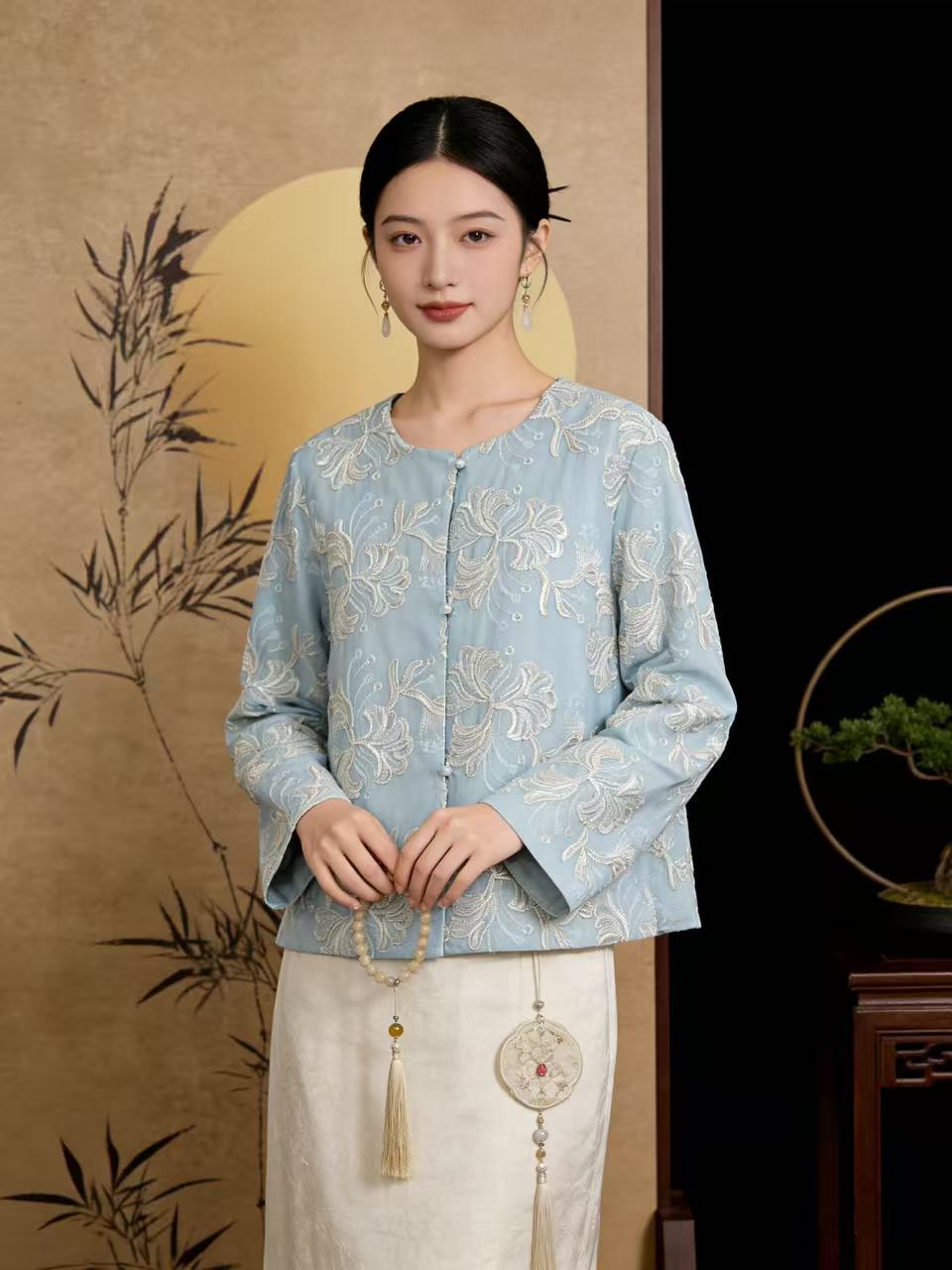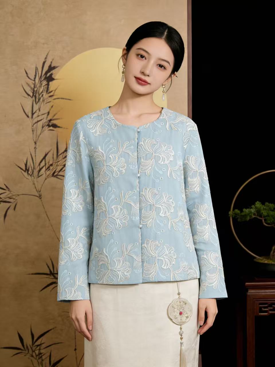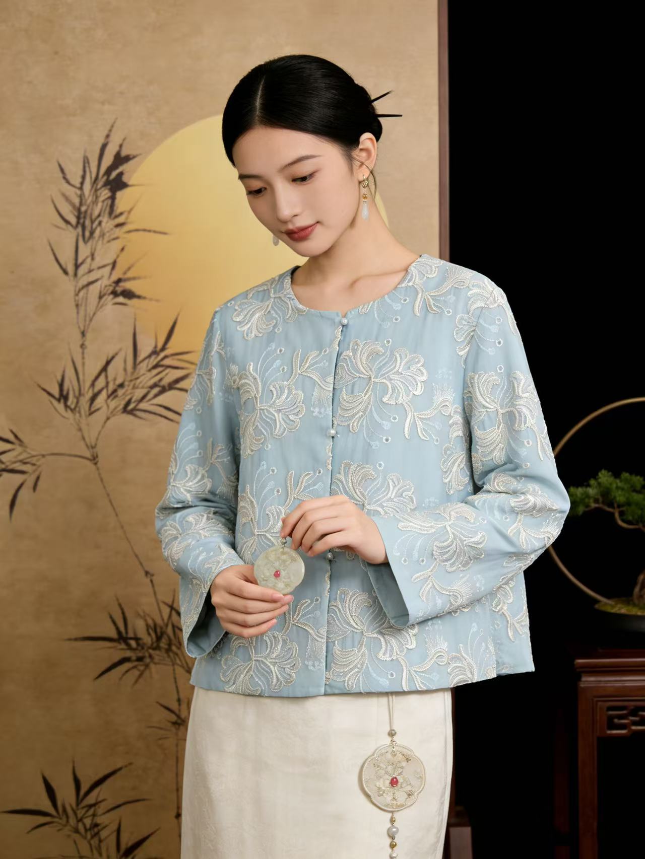 418良粉节|2026 重工亮片刺绣【自营】新中式5556清新外套上衣-喜出