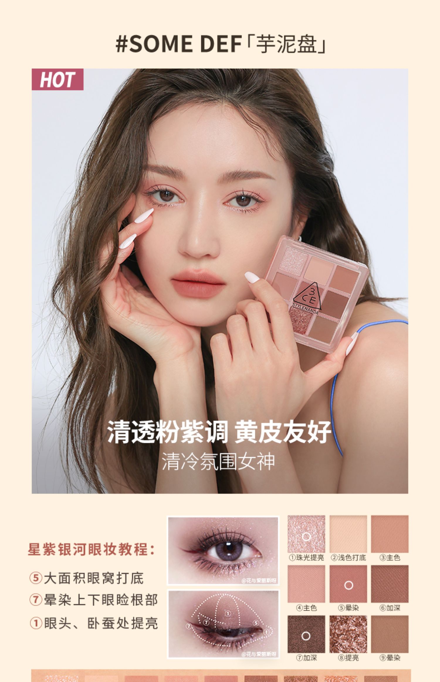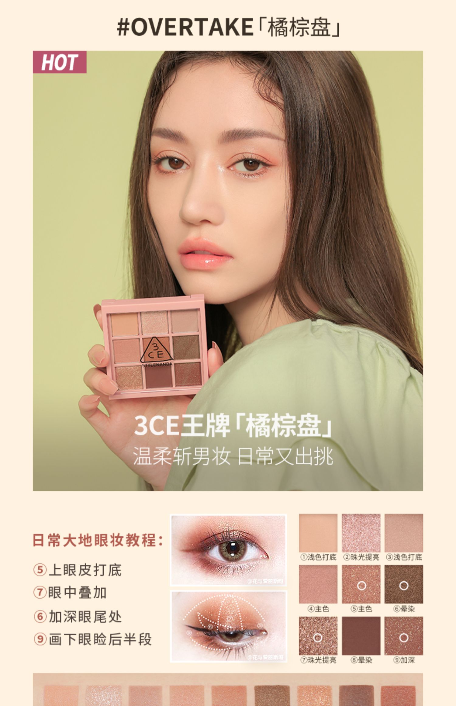 3CE三熹玉九宫格哑光眼影盘深棕哑光盘SMOOTHER/芋泥盘SOMEDEF/奶茶盘DEARNUDE/干枯玫瑰DRYBOUQUET/橘棕盘OVERTAKE【保税直发】