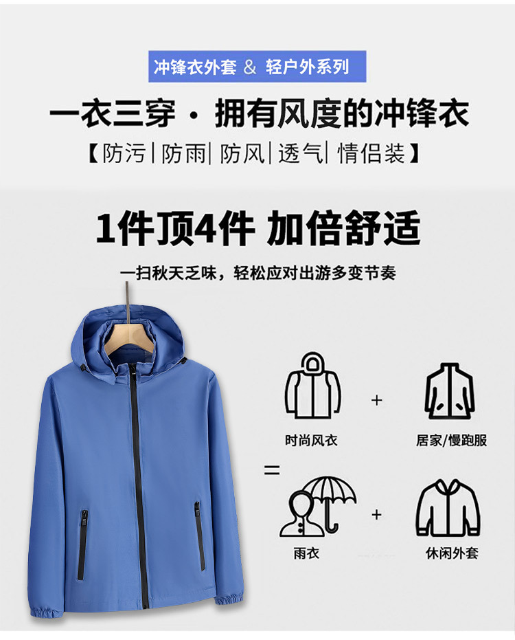 跃牌【跃LEAP-ACTIVE】系列 冲锋衣男女运动夹克纯色连帽外套672