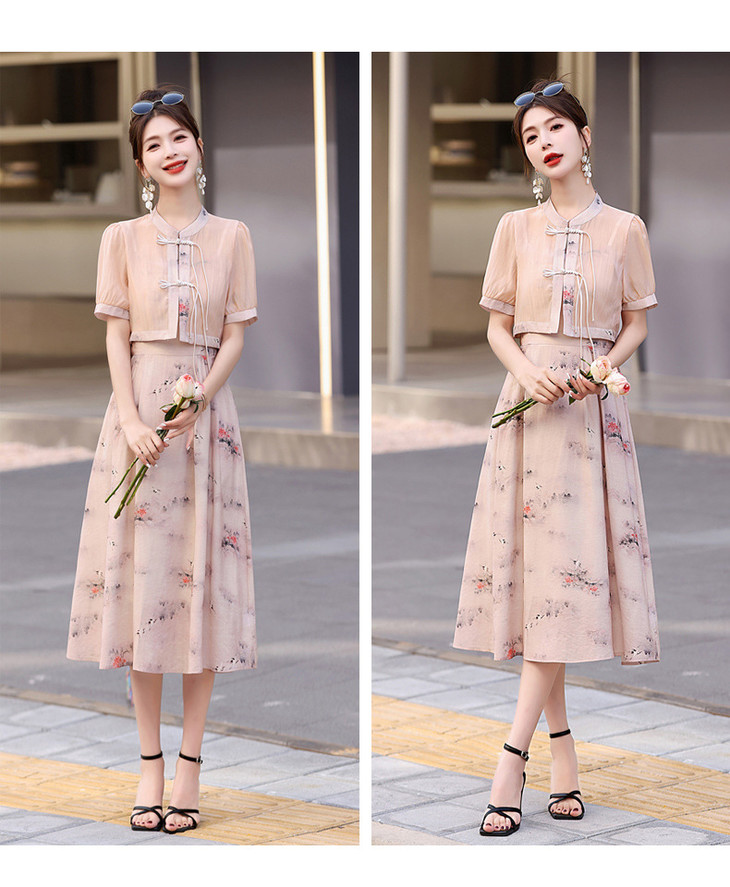 2024夏季女装新品韩版时尚短外套印花吊带裙两件套连衣裙 YF9606 商品图0