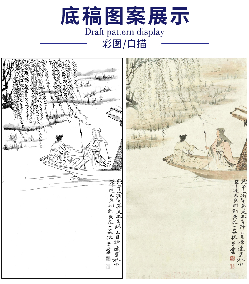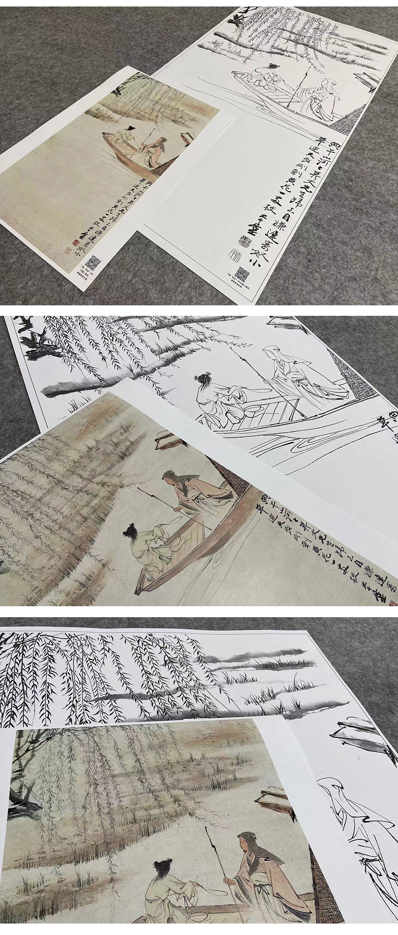 宋画花鸟小品白描底稿-佚名《白头丛竹图》-多种白描尺寸可选-GH35