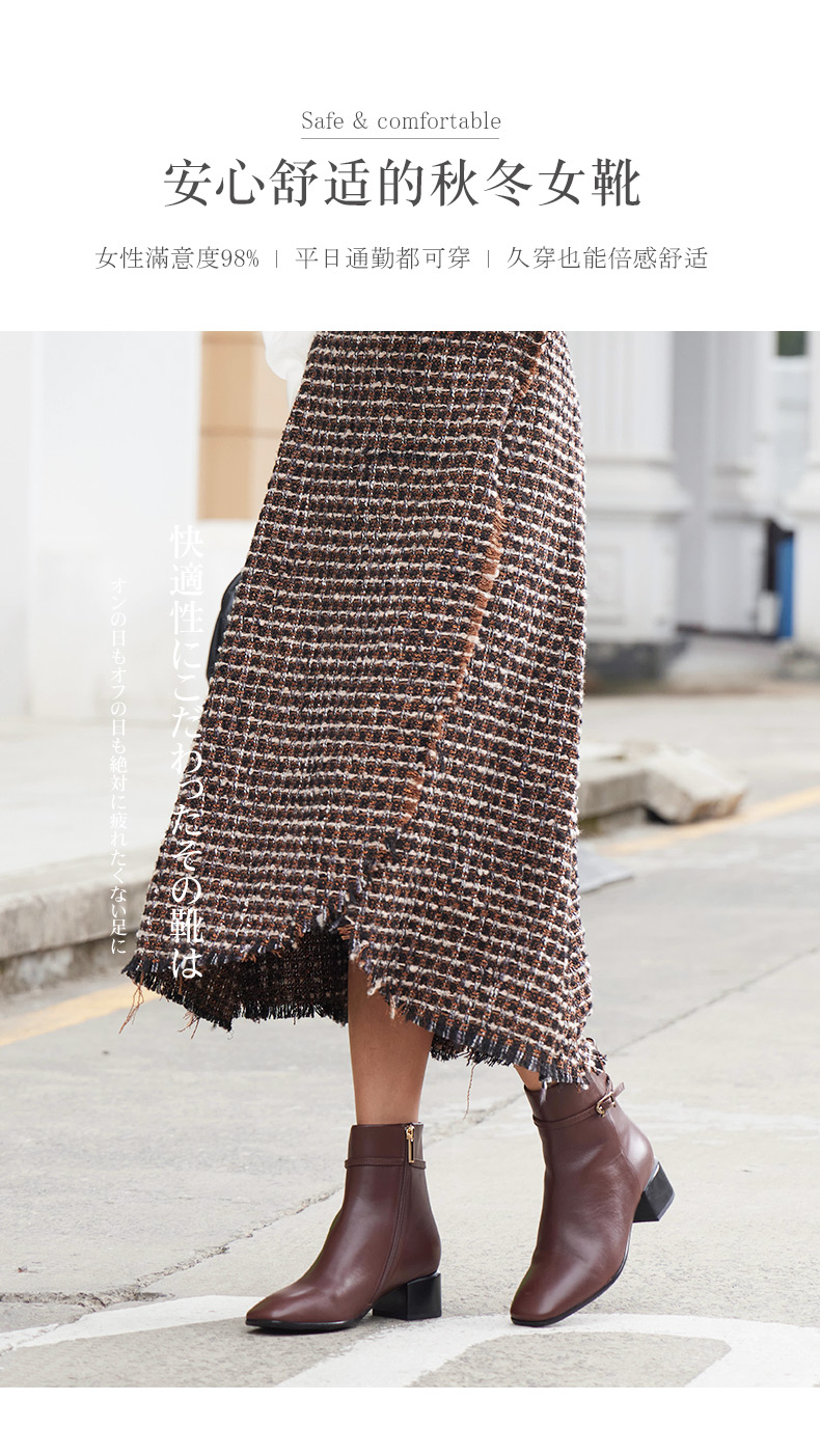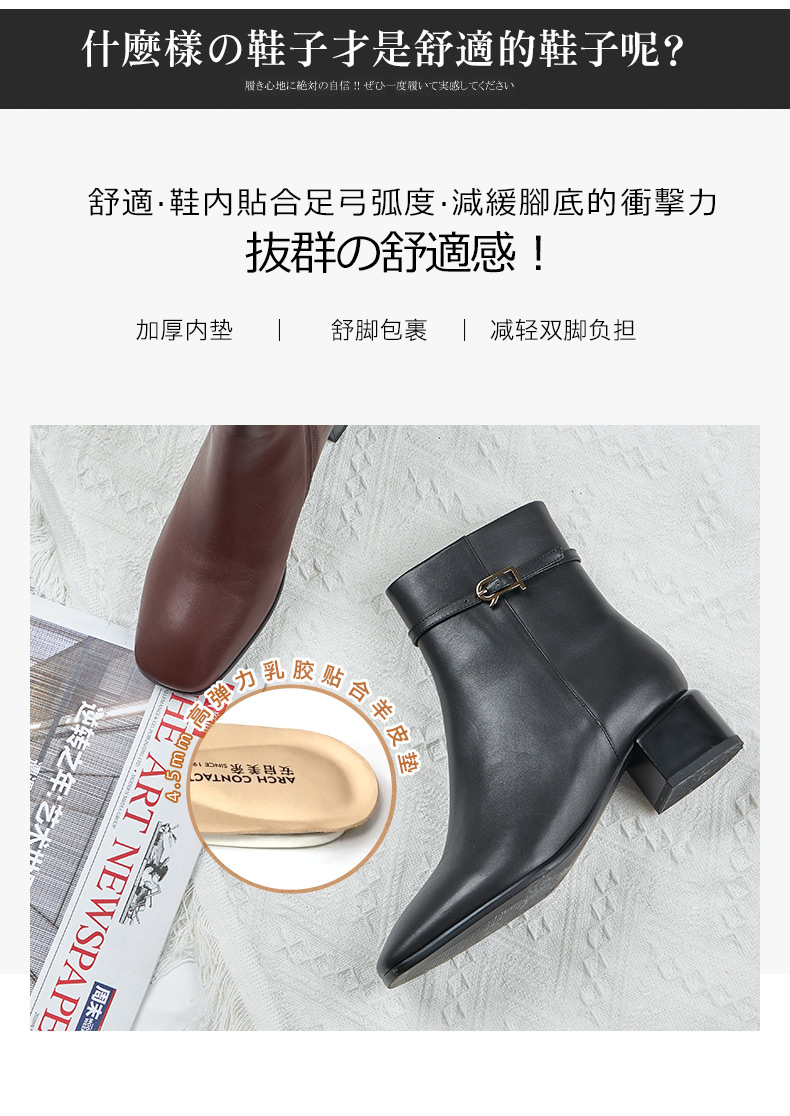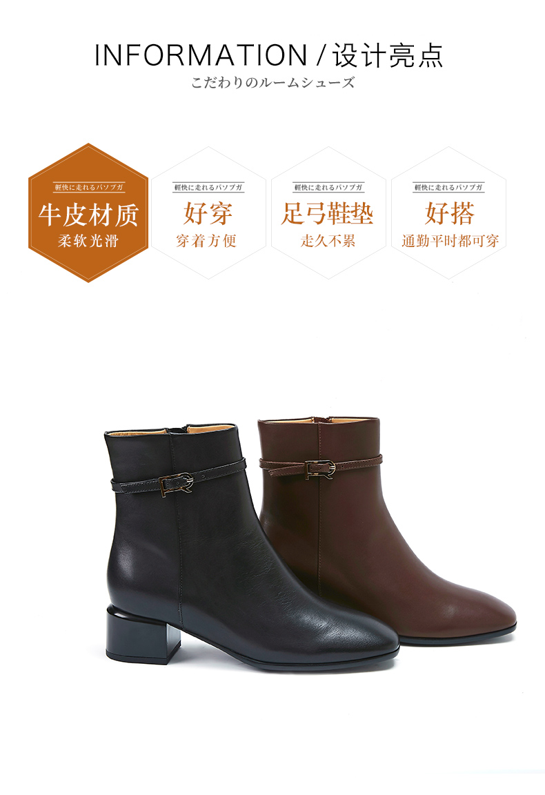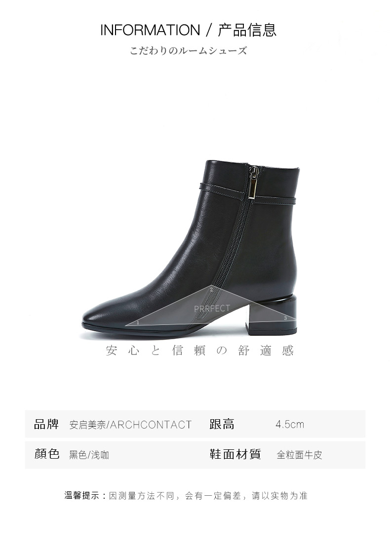 【活动价】ARCHCONTACT安启美奈英伦风方头中跟百搭女靴52170