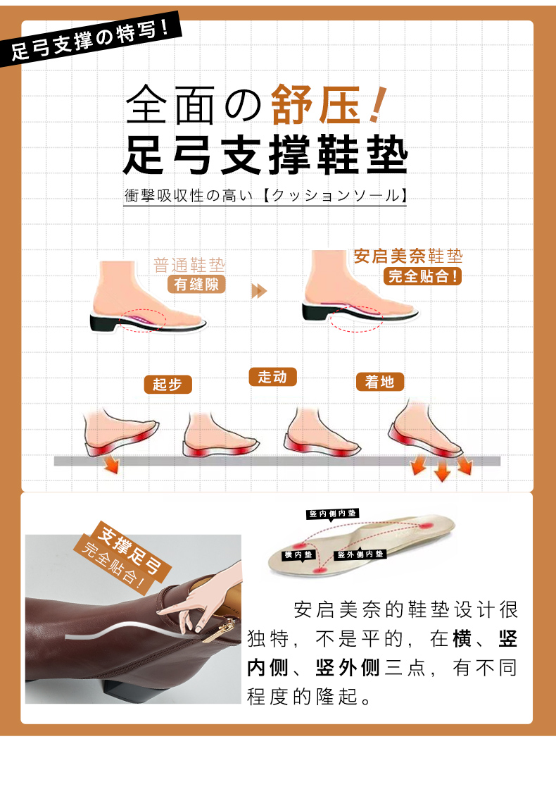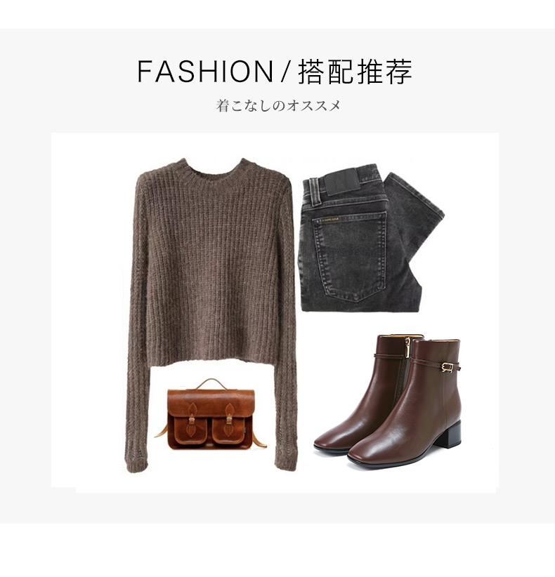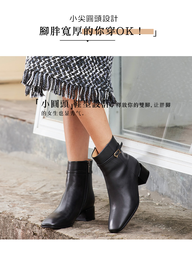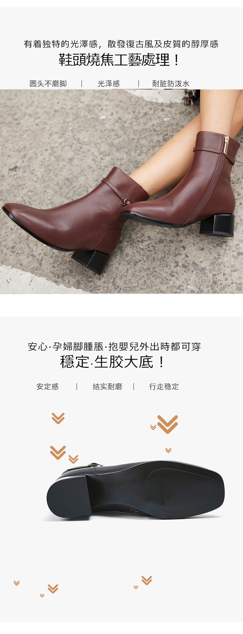 【活动价】ARCHCONTACT安启美奈英伦风方头中跟百搭女靴52170