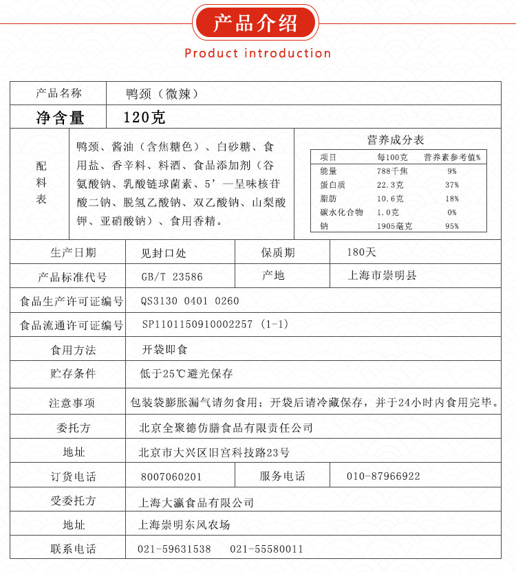 【鸭颈】120g 微辣 真空包装 美食零食 鸭脖